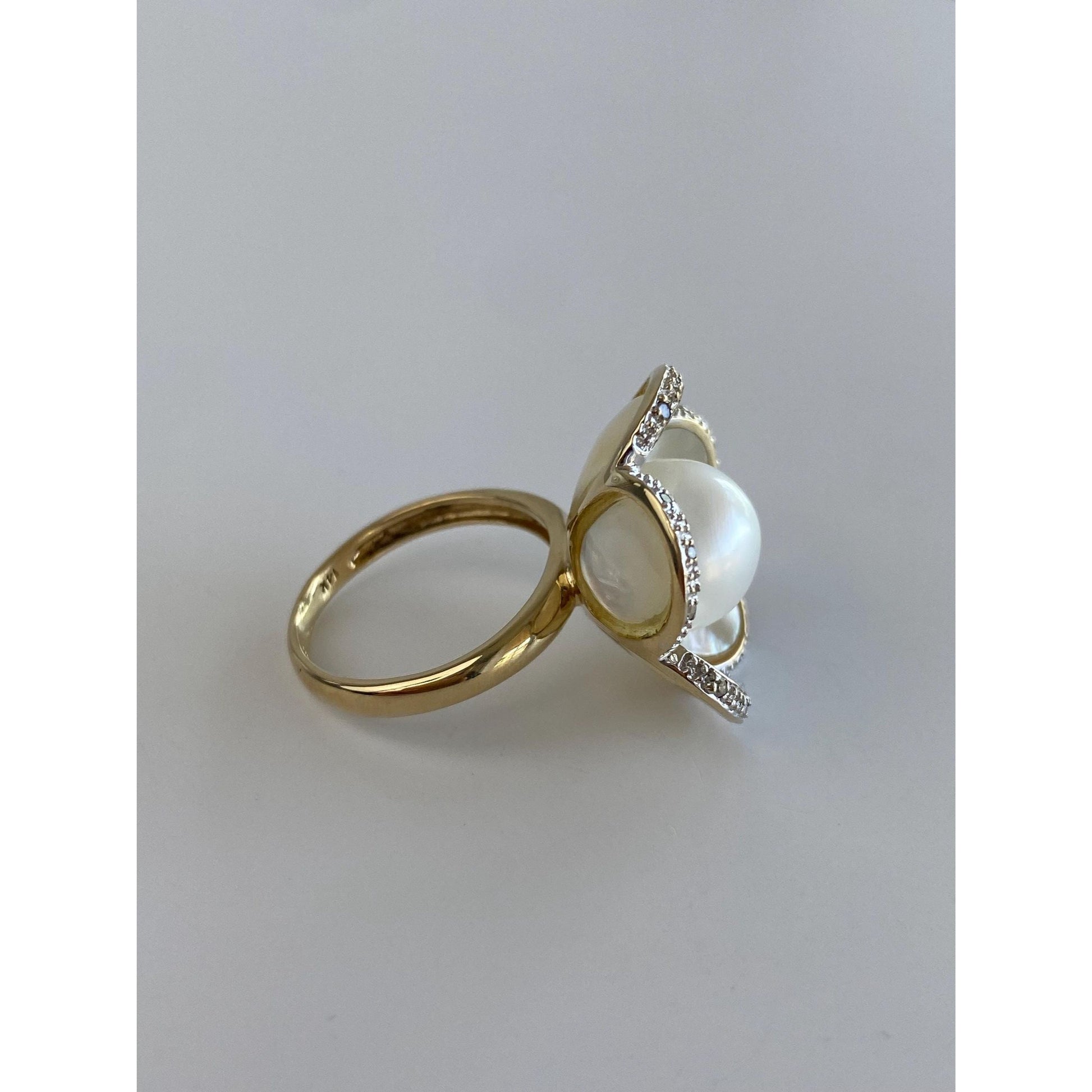 Solid 14k Yellow Gold Diamond Mother of Pearl Pearl Flower Ring - Size 5.5