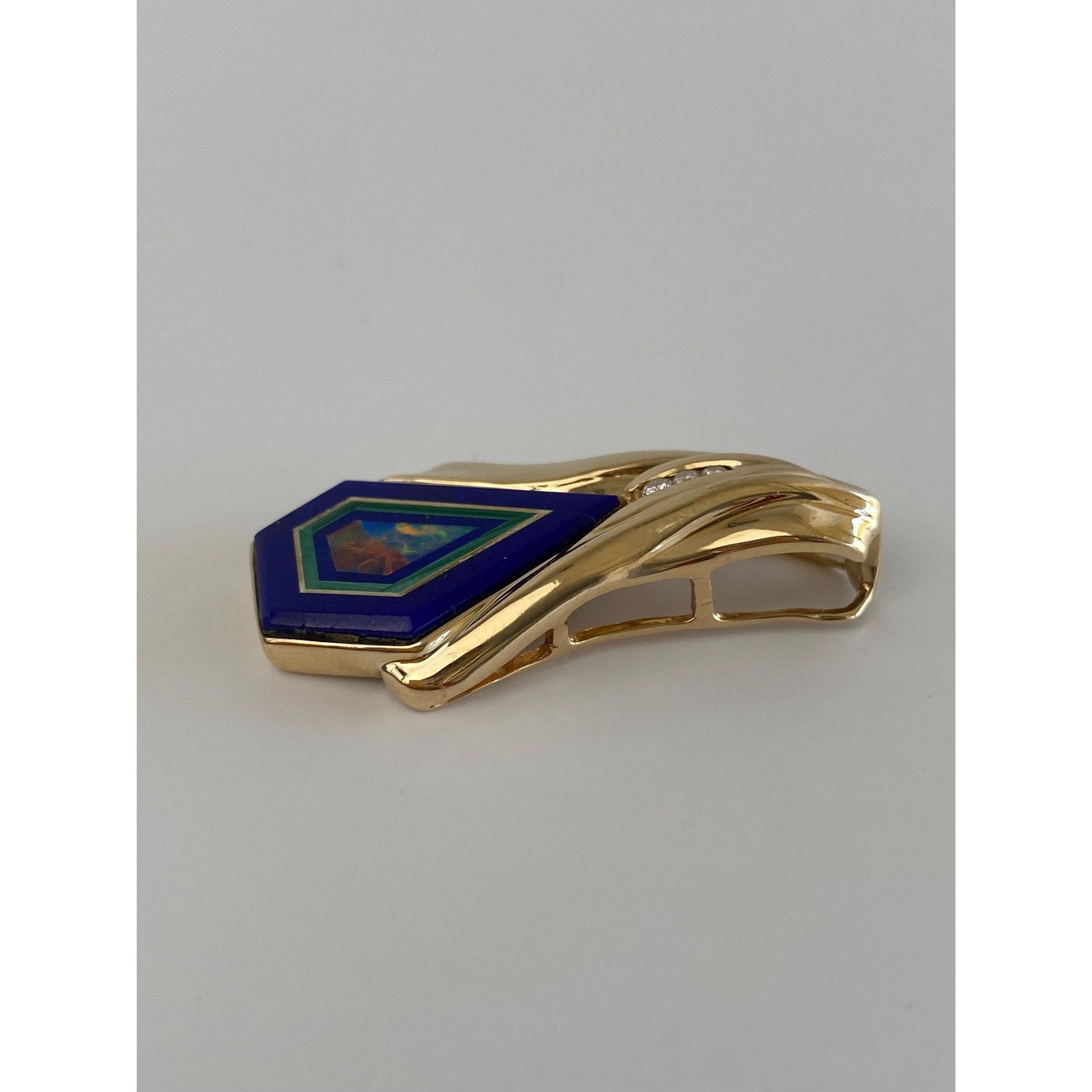 Solid 14k Yellow Gold Diamond Opal Lapis Inlay Slide Charm