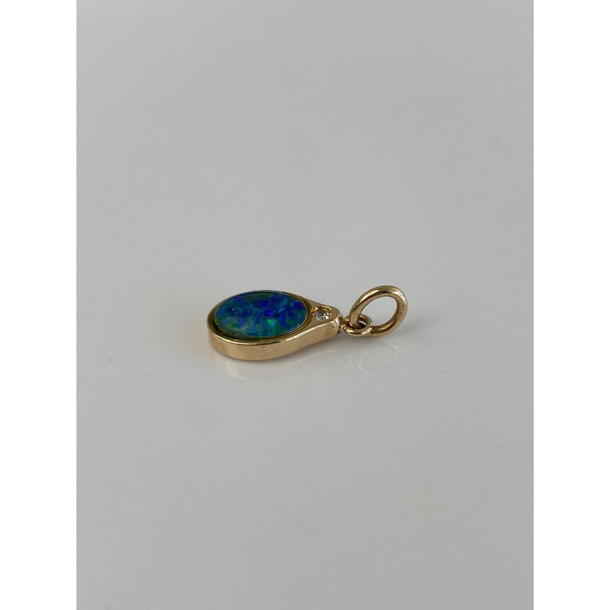Solid 14k Yellow Gold Diamond Opal Triplet Charm