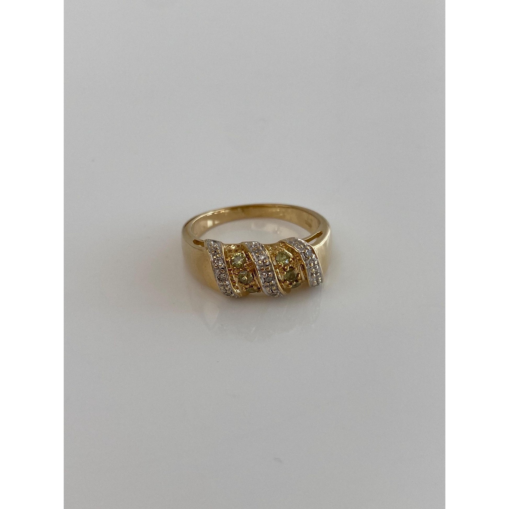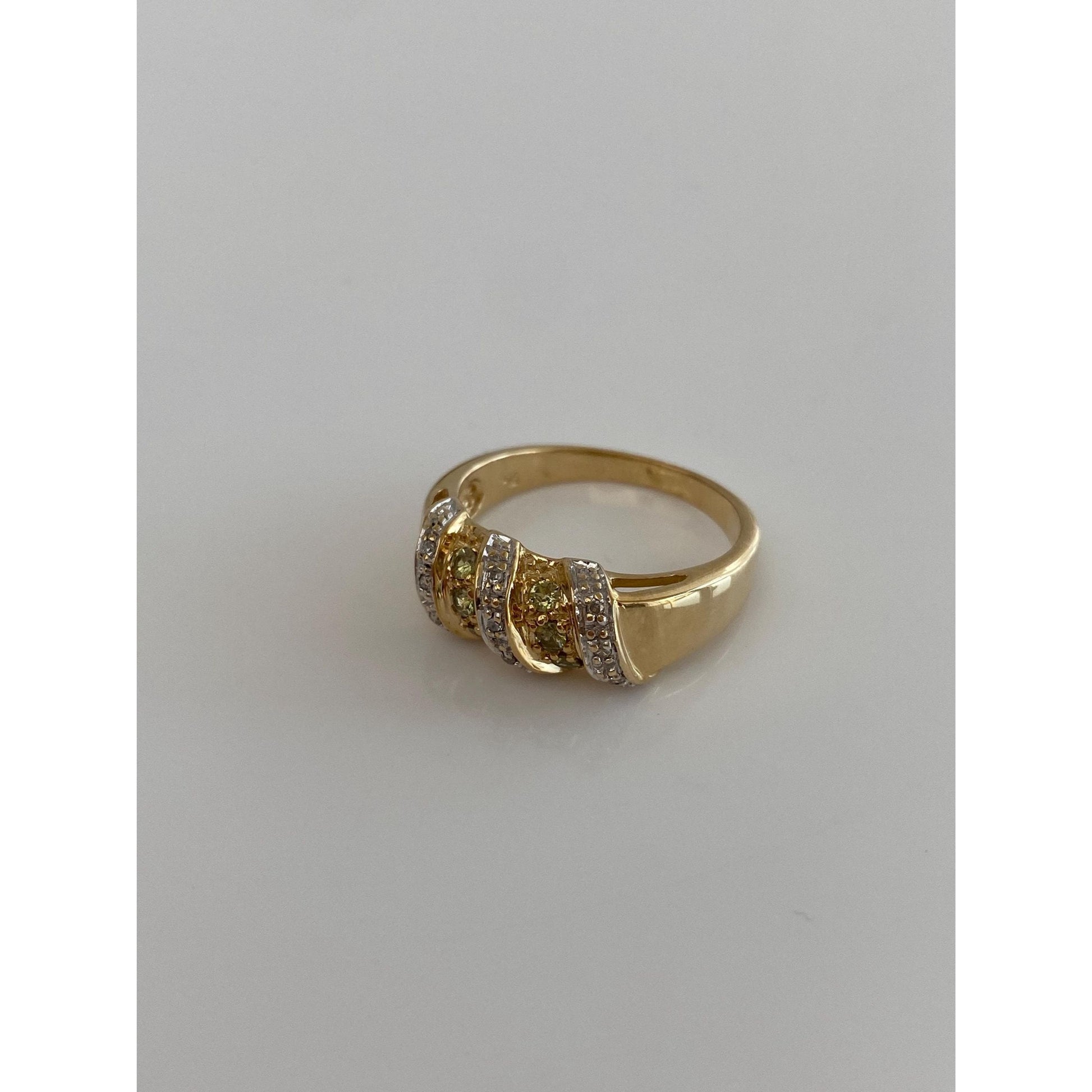 Solid 14k Yellow Gold Diamond & Peridot Ring Band - Size 6.75