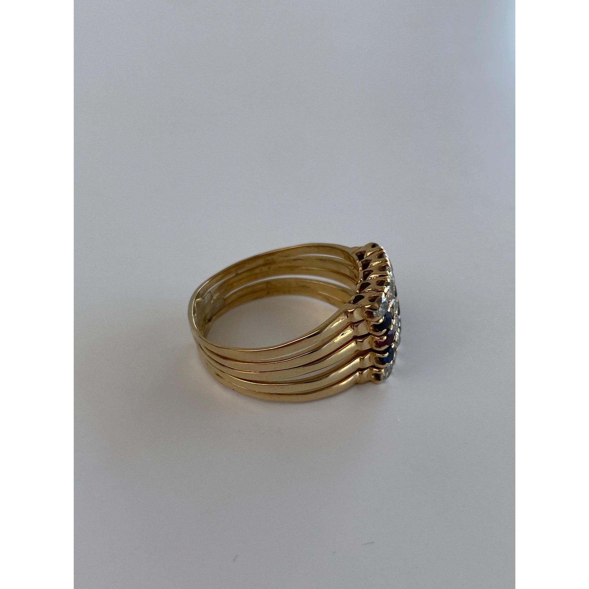 Solid 14k Yellow Gold Diamond Sapphire Ruby Multiple Bands Ring - Size 8.75