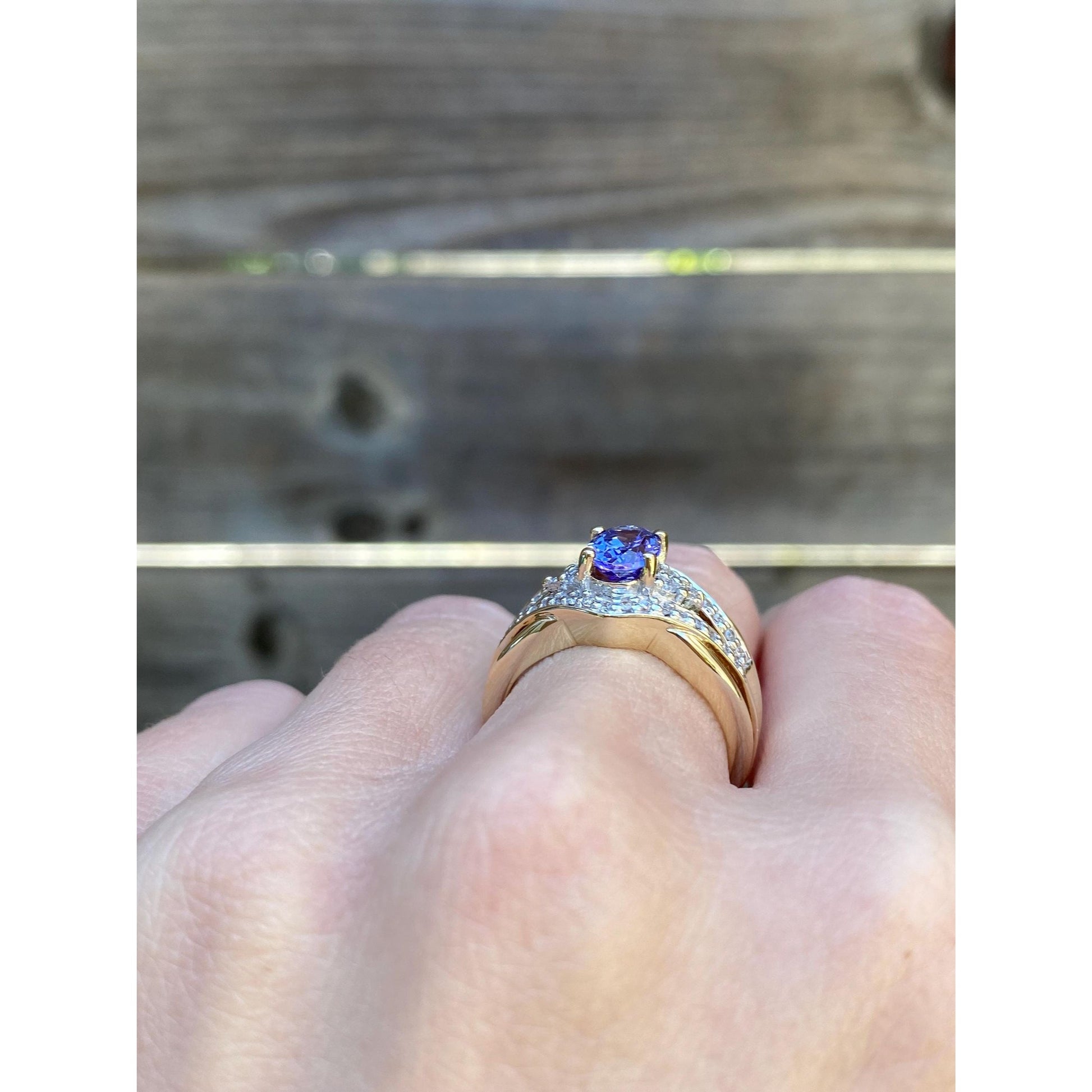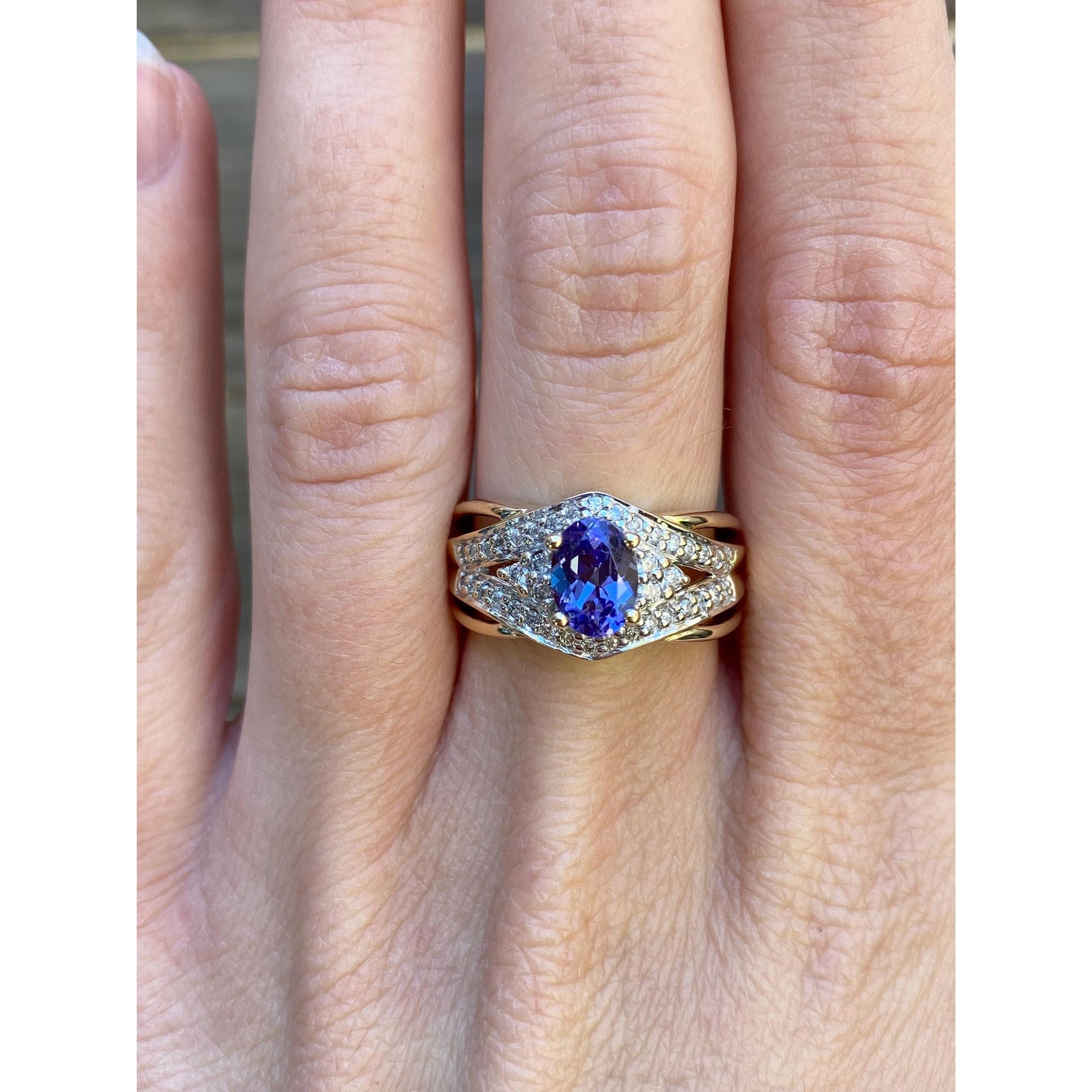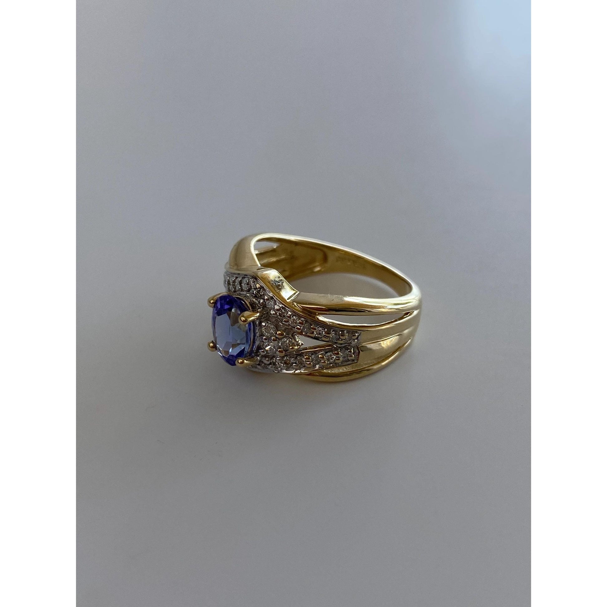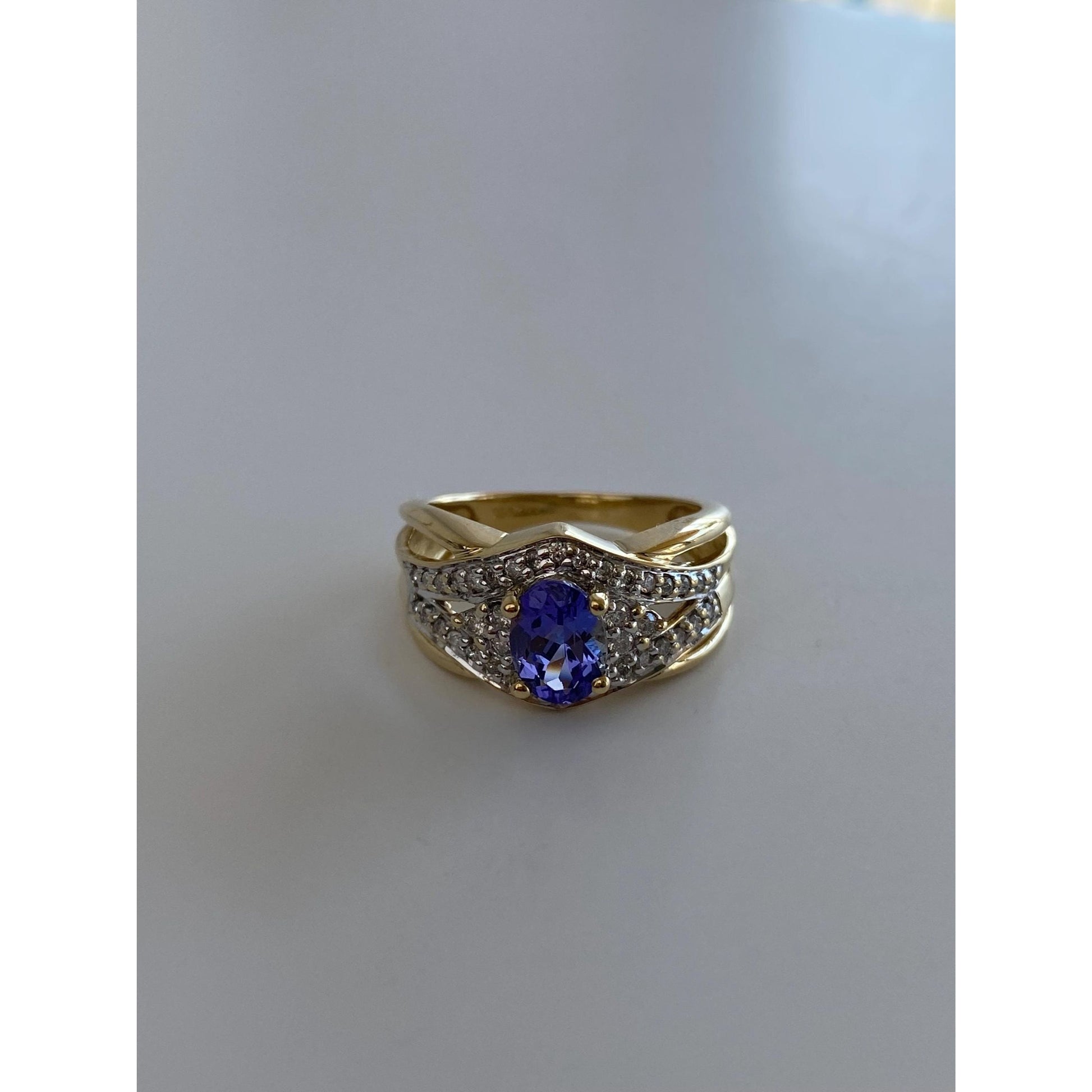 Solid 14k Yellow Gold Diamond Tanzanite Ring - Size 6.75