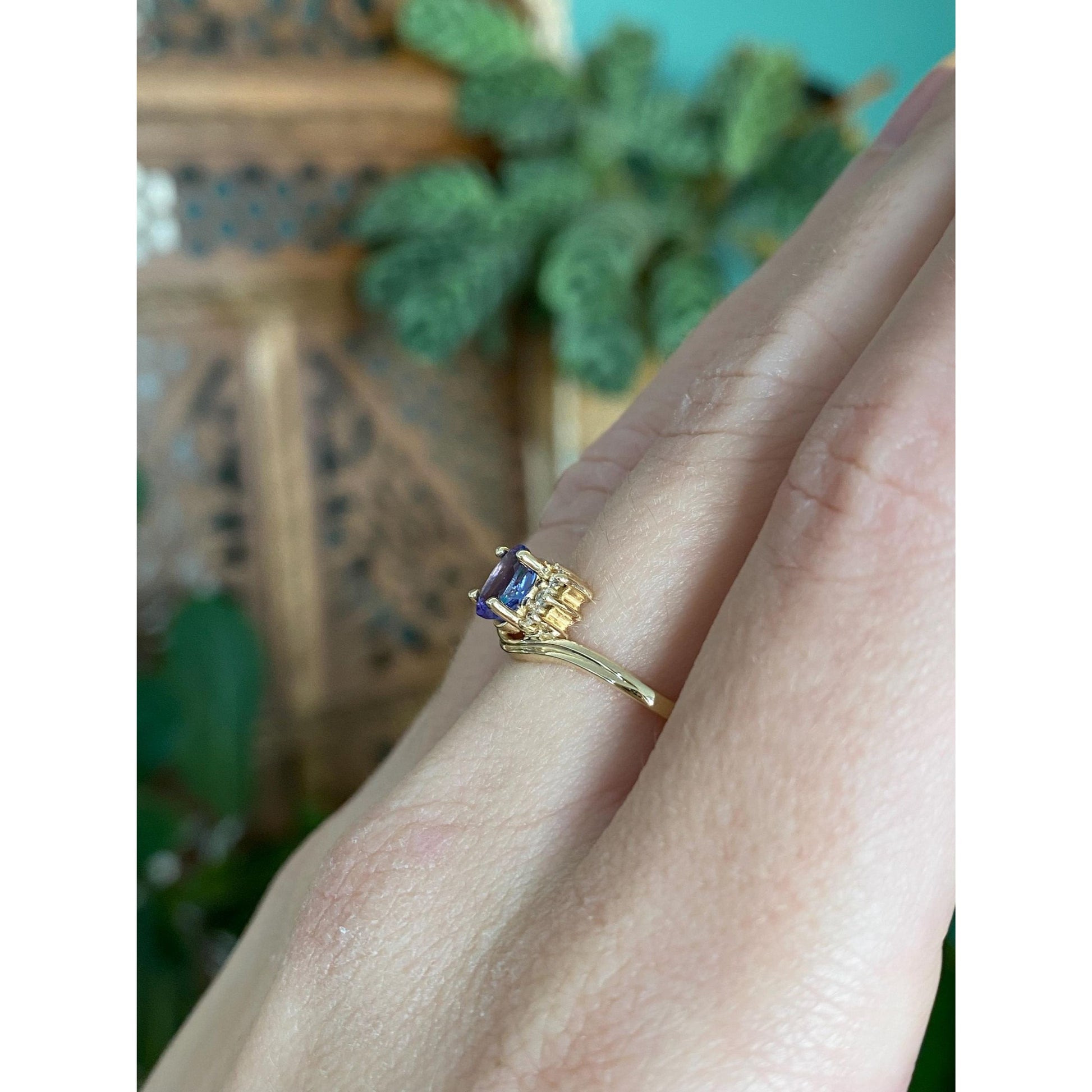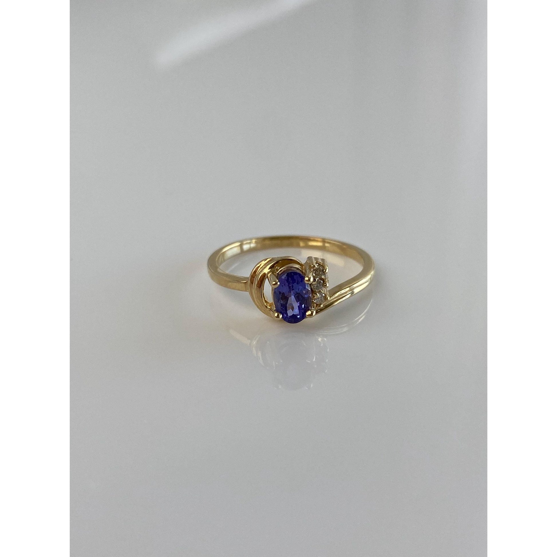 Solid 14k Yellow Gold Diamond Tanzanite Ring - Size 7.75