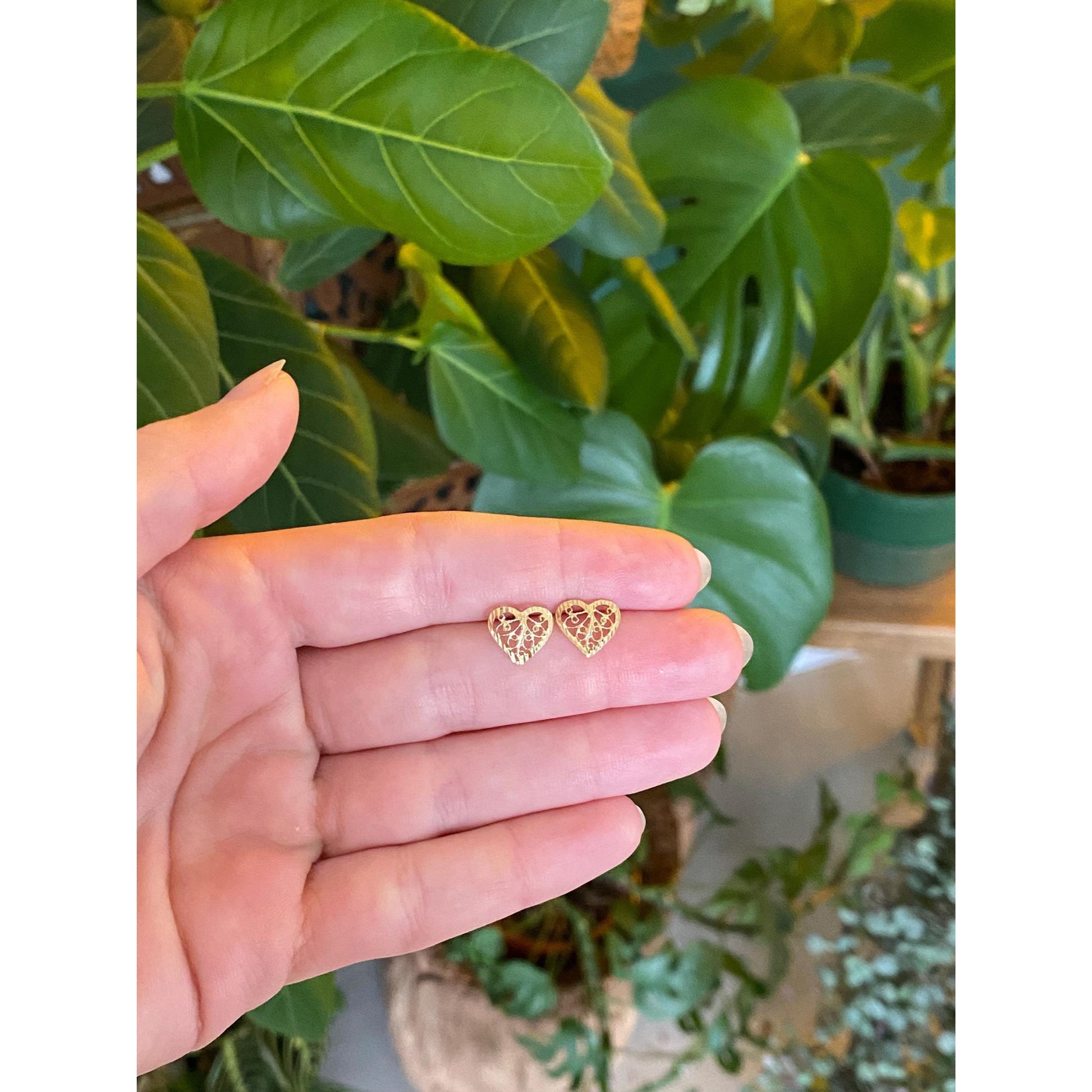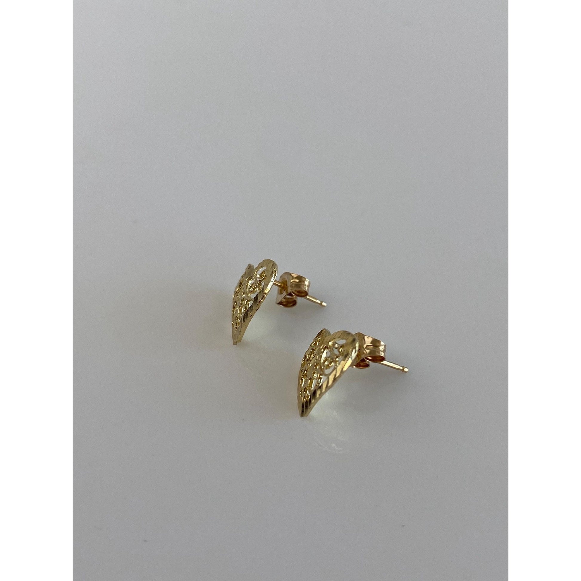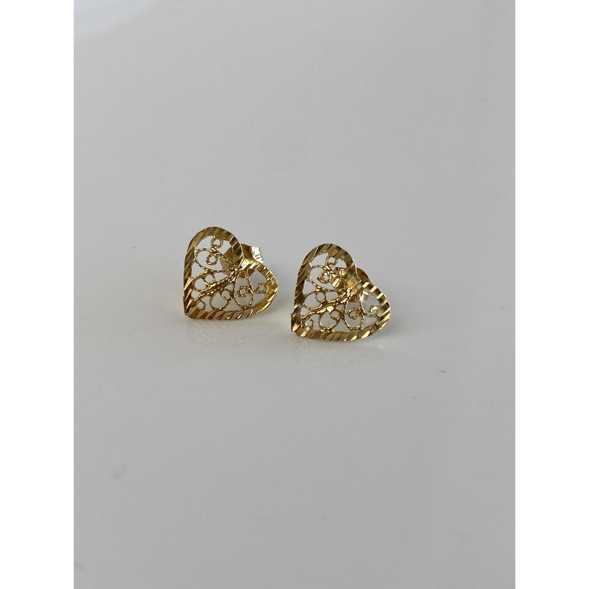 Solid 14k Yellow Gold Filigree Heart Stud Earrings