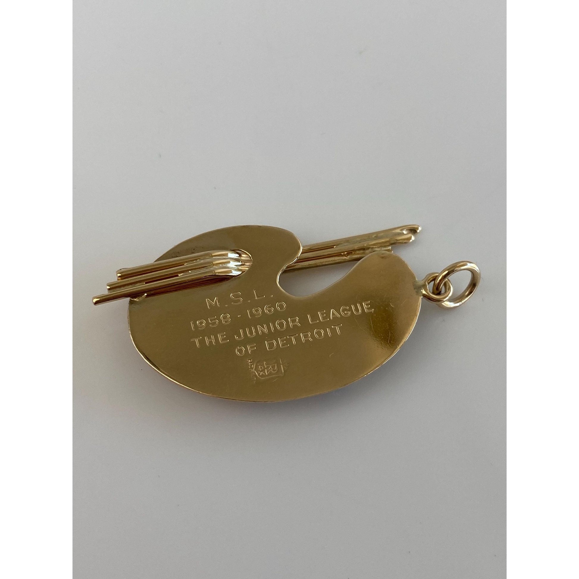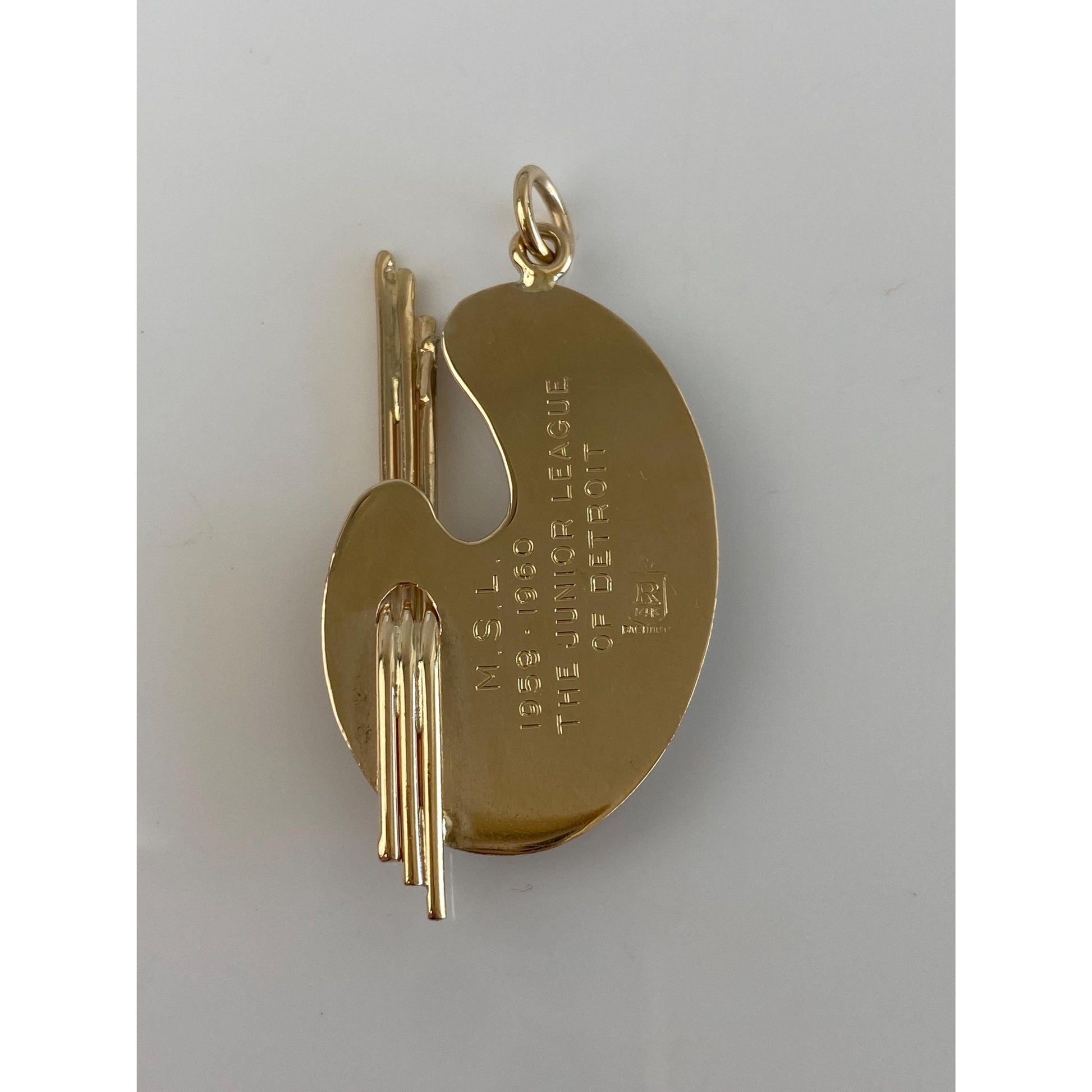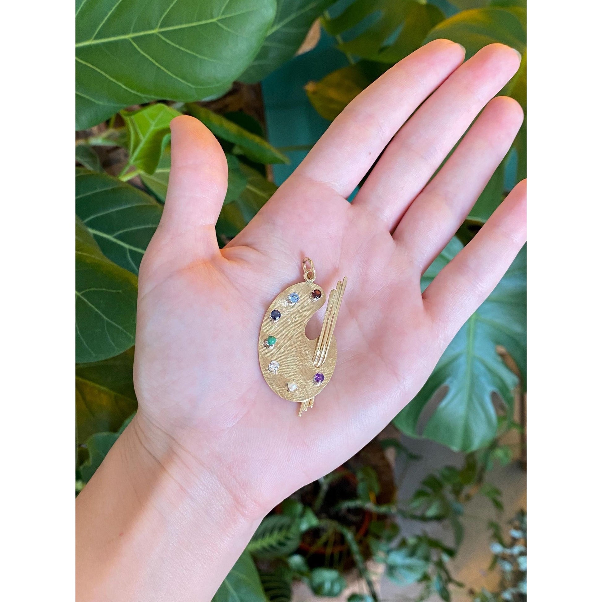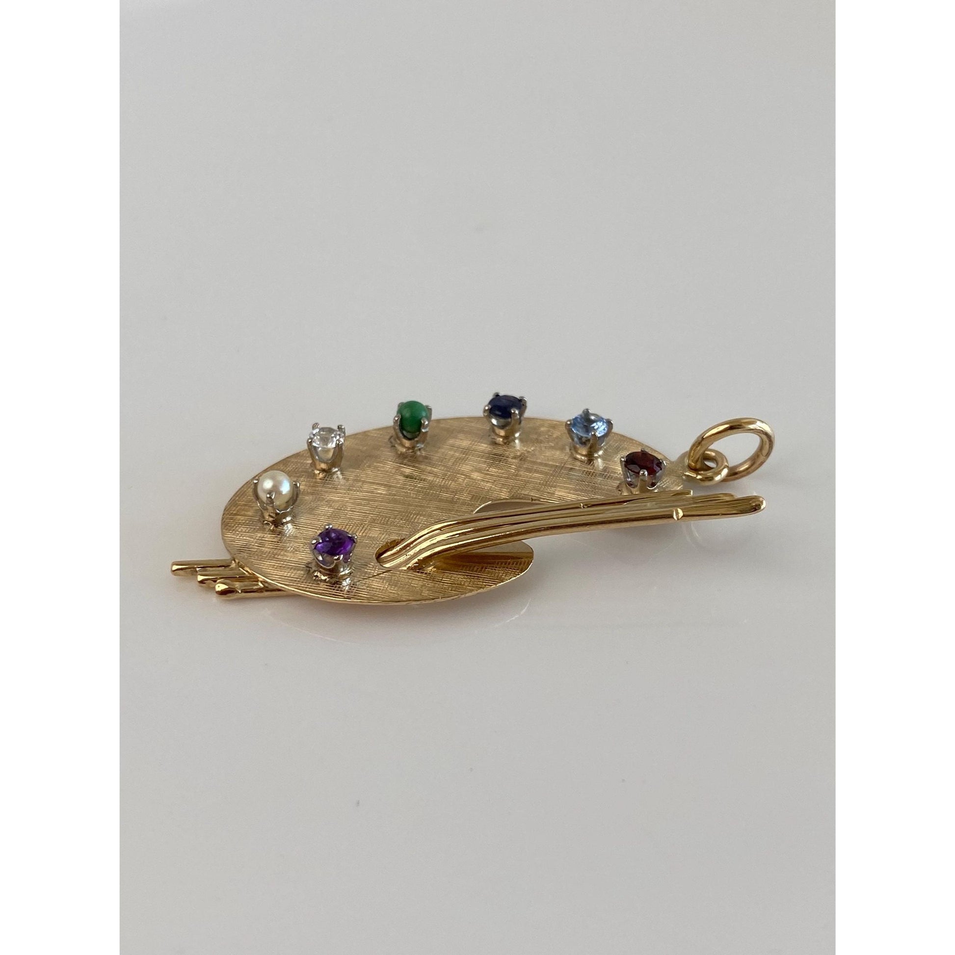 Solid 14k Yellow Gold Garnet Aquamarine Blue Spinel Turquoise Clear Quartz Pearl Artist Pallet Charm