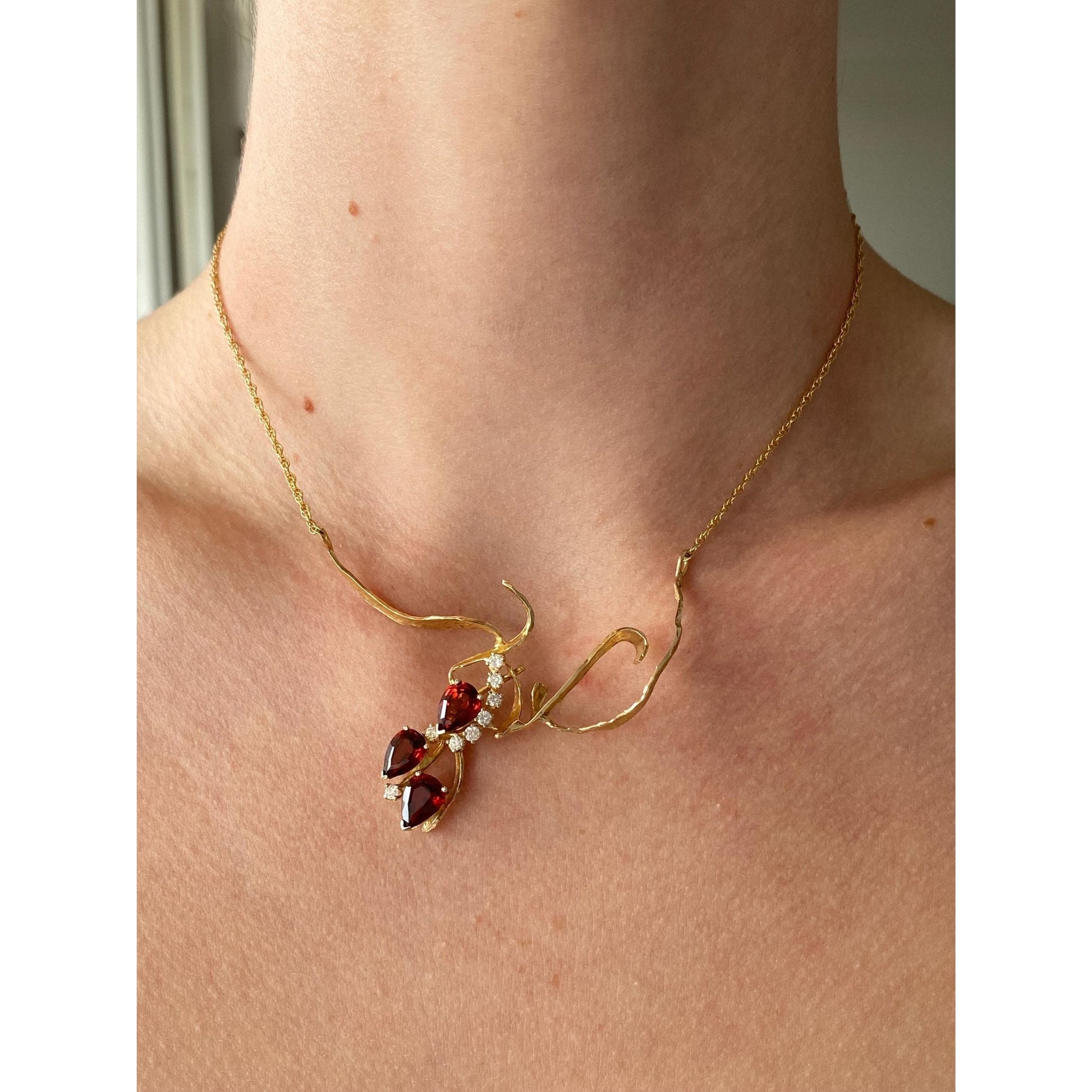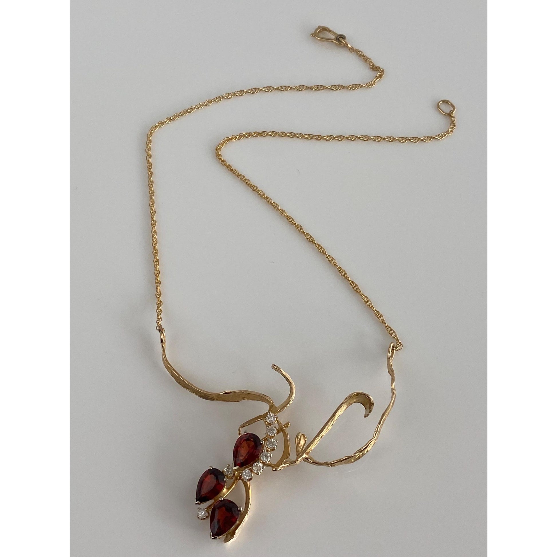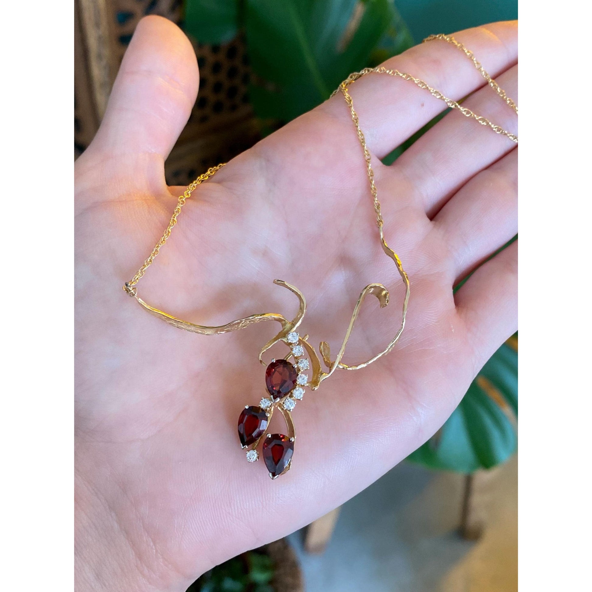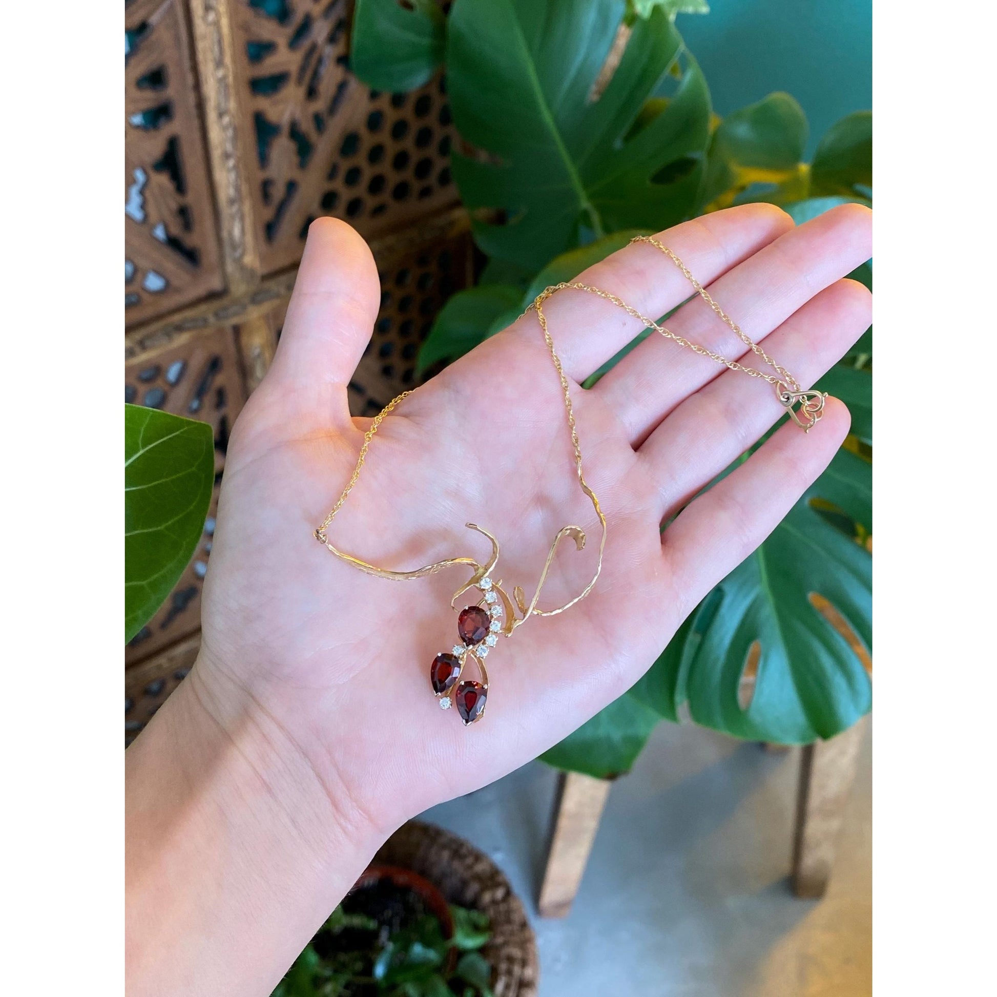Solid 14k Yellow Gold Garnet Clear Sapphire Rope Chain Necklace - 14.5 inches
