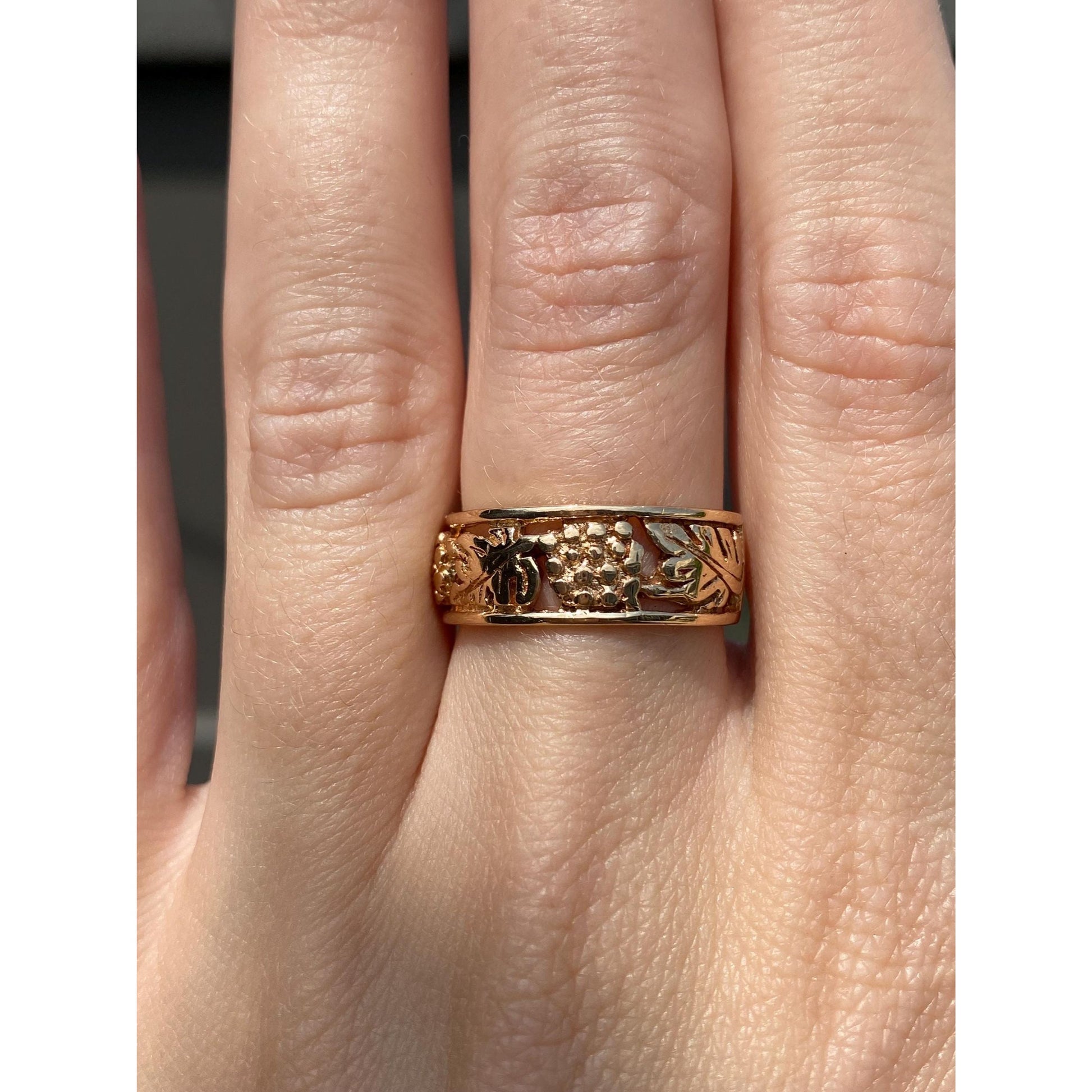 Solid 14k Yellow Gold Grapevine Ring Band - Size 6.75