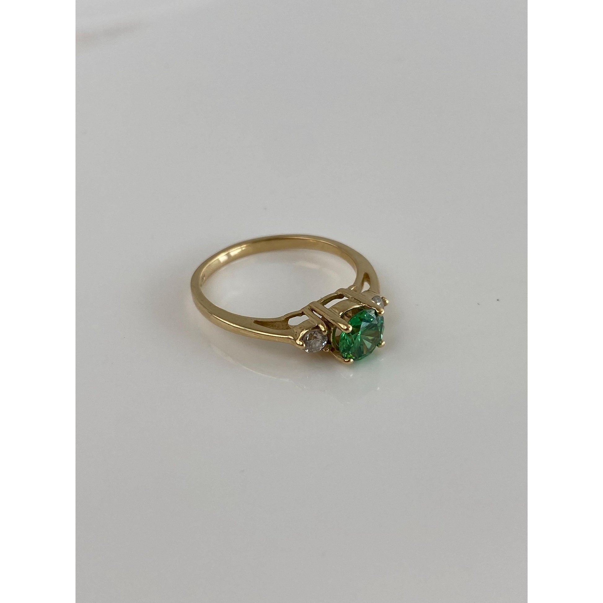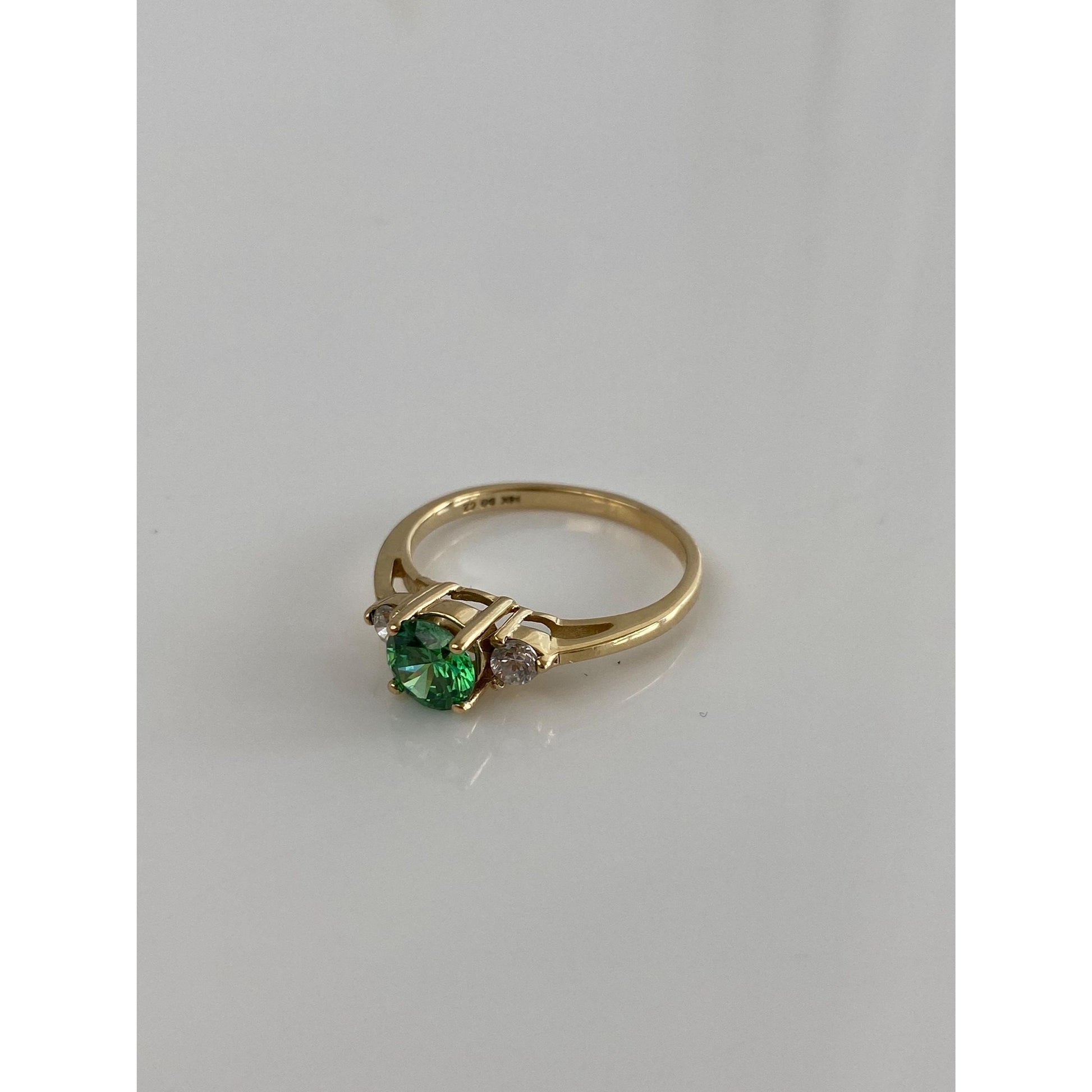 Solid 14k Yellow Gold Green & Clear Cubic Zirconia Ring - Size 8.5