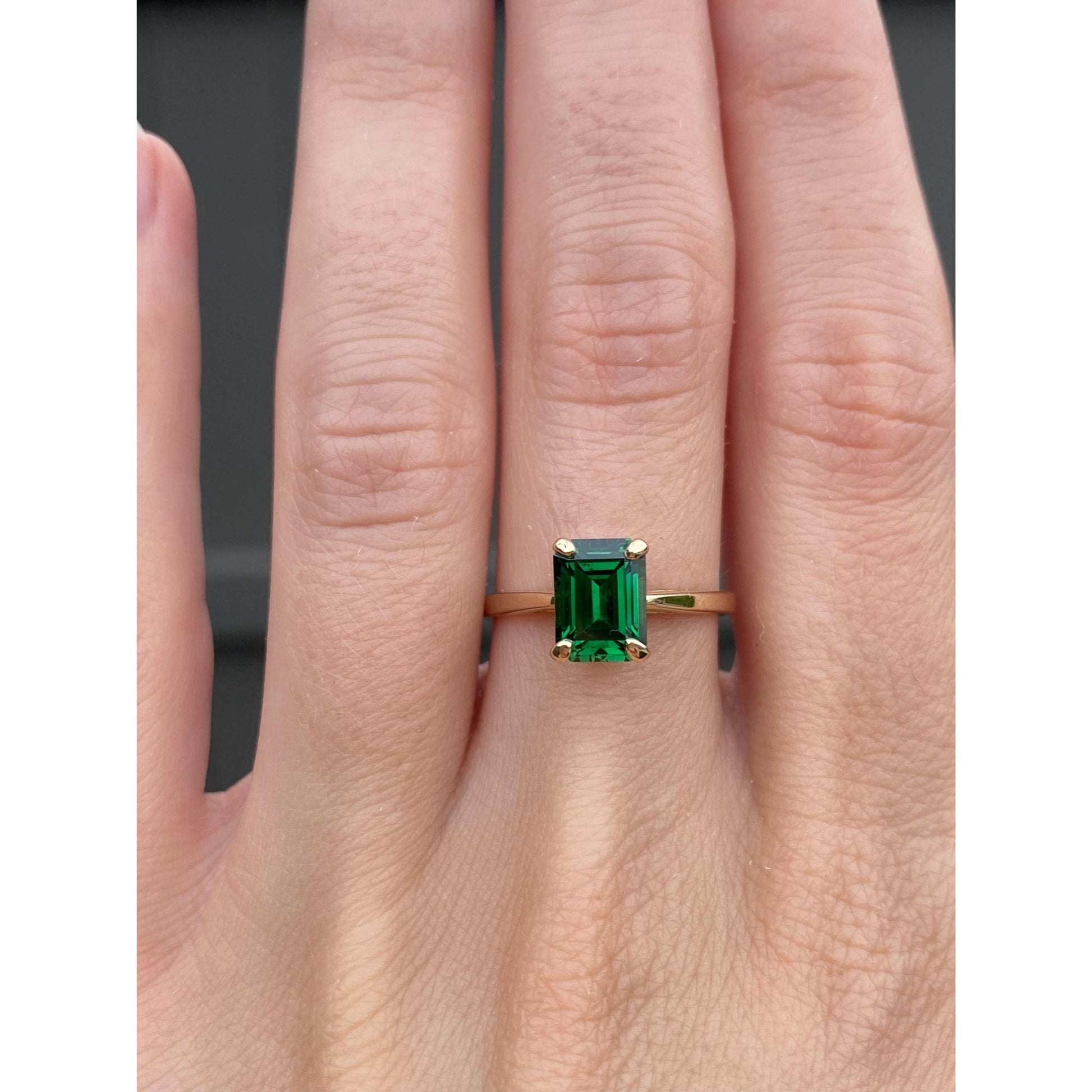 Solid 14k Yellow Gold Green Cubic Zirconia Ring - Size 7