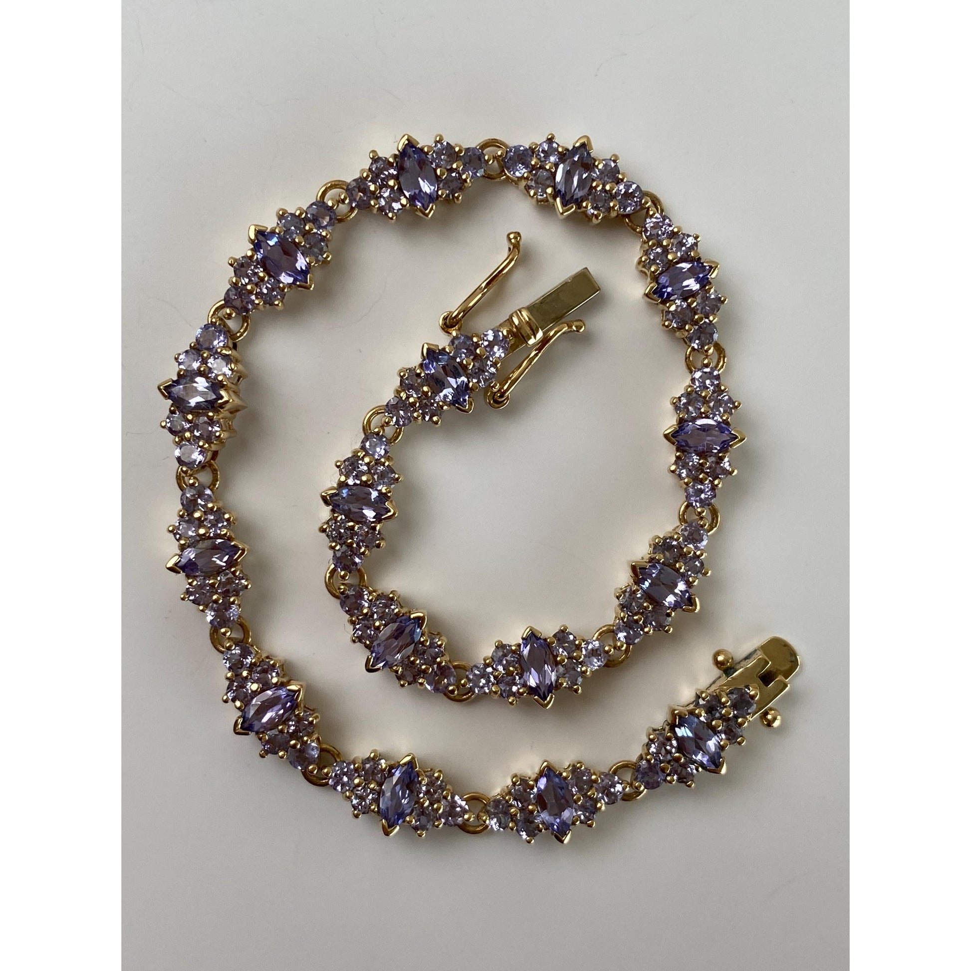 Solid 14k Yellow Gold Light Purple Cubic Zirconia Tennis Bracelet - 7.5 inches