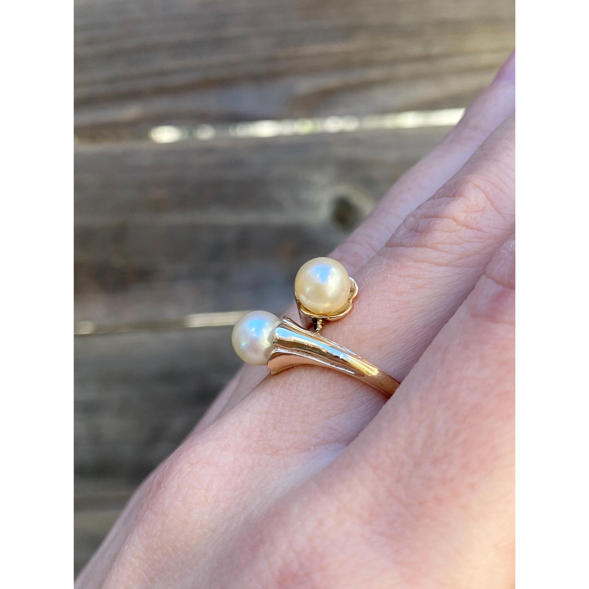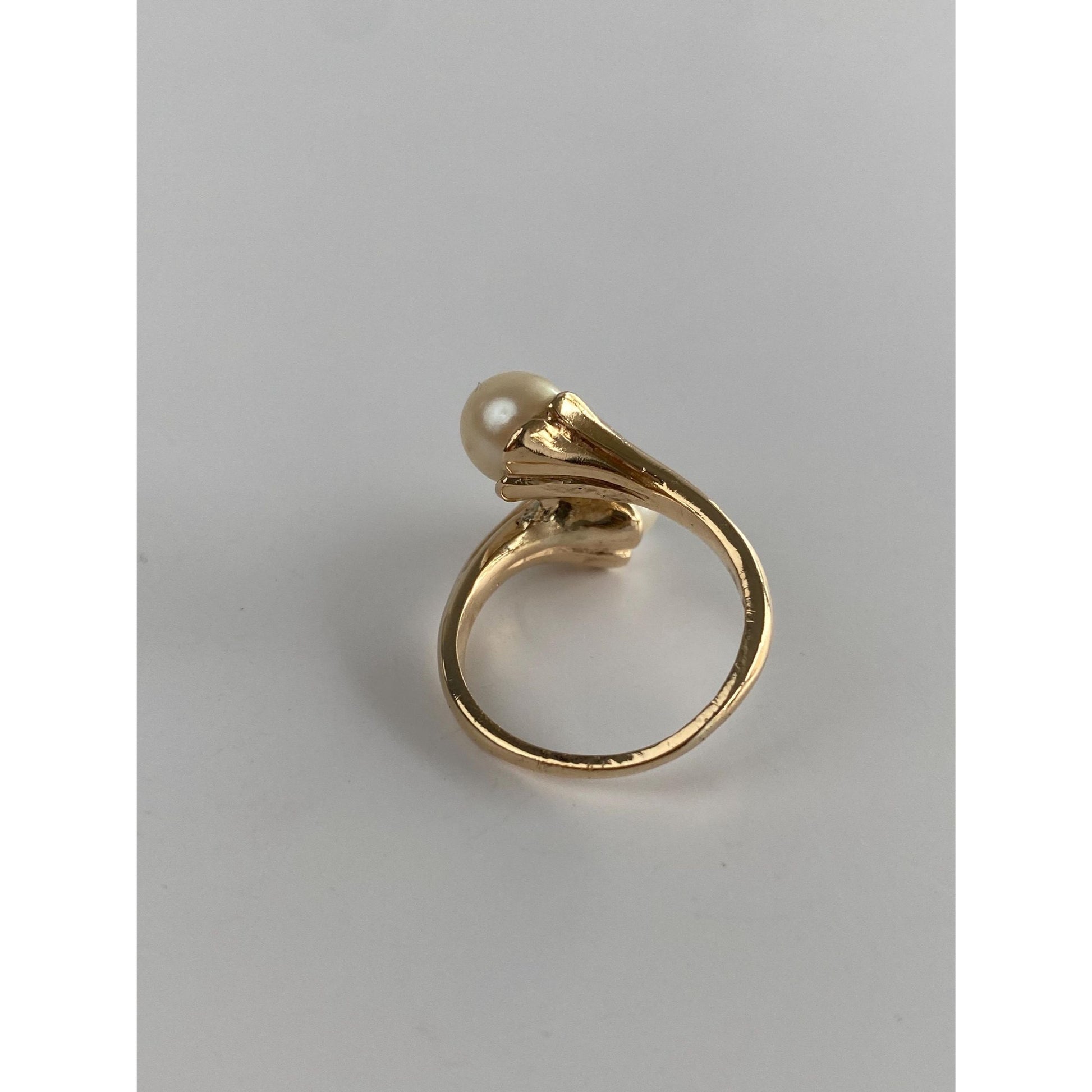 Solid 14k Yellow Gold Pearl Bypass Ring - Size 5.75