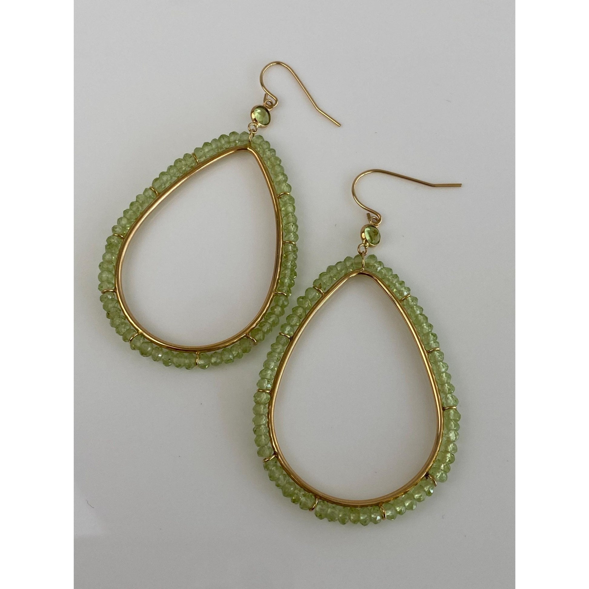 Solid 14k Yellow Gold Peridot Drop Dangle Earrings