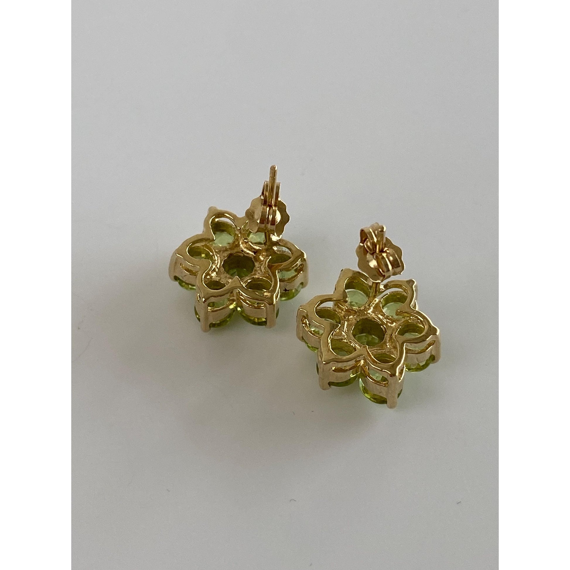 Solid 14k Yellow Gold Peridot Flower Stud Earrings