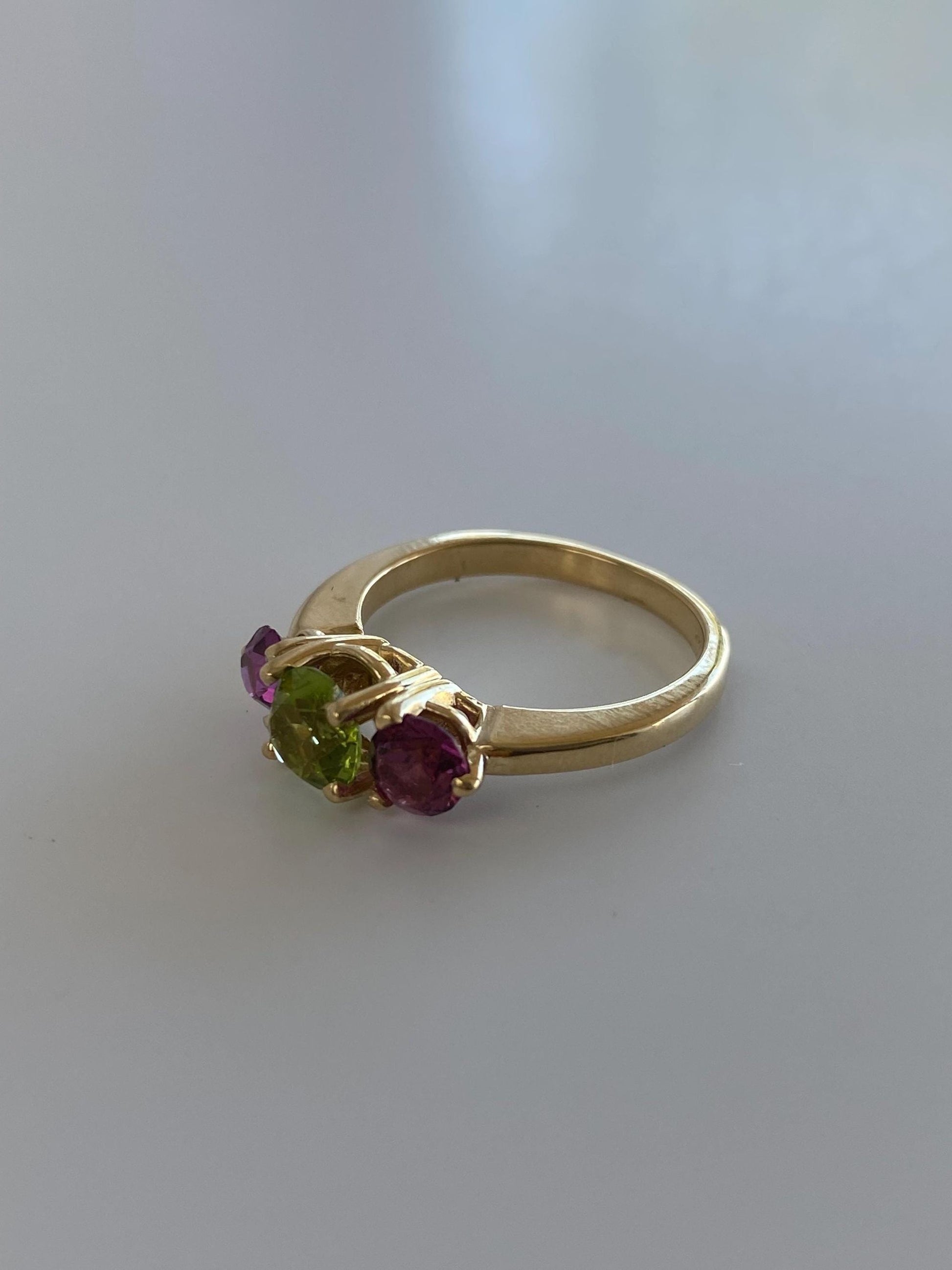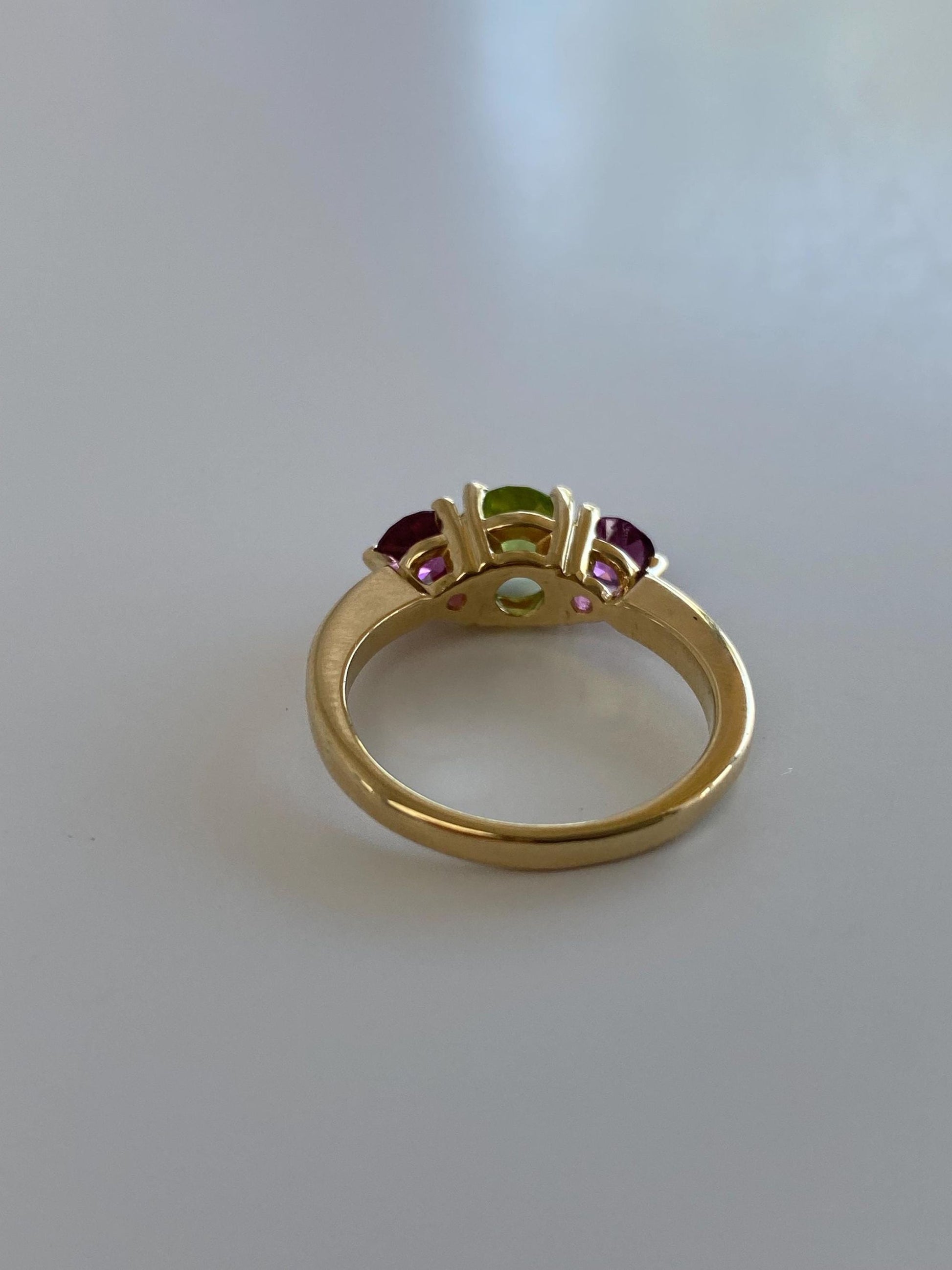 Solid 14k Yellow Gold Peridot Pink Tourmaline Ring - Size 6.25