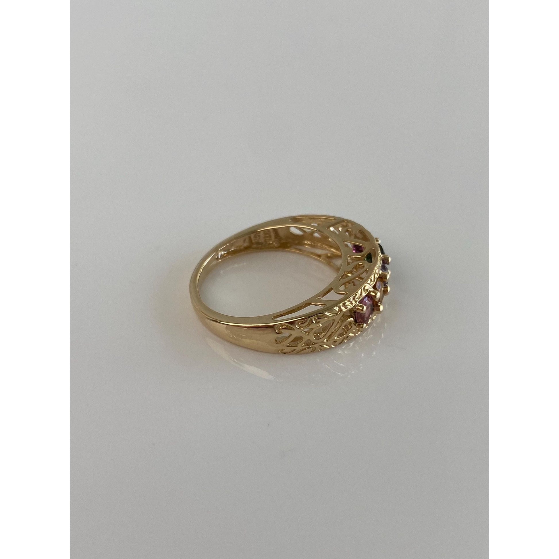 Solid 14k Yellow Gold Pink & Green Tourmaline Citrine Amethyst Open Work Ring Band - Size 7.75