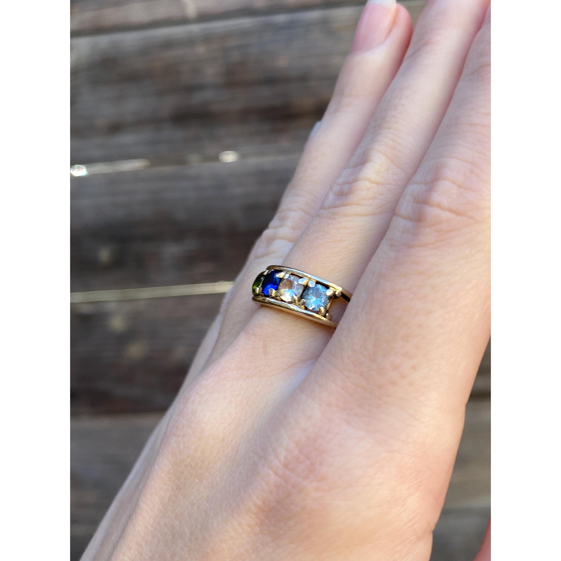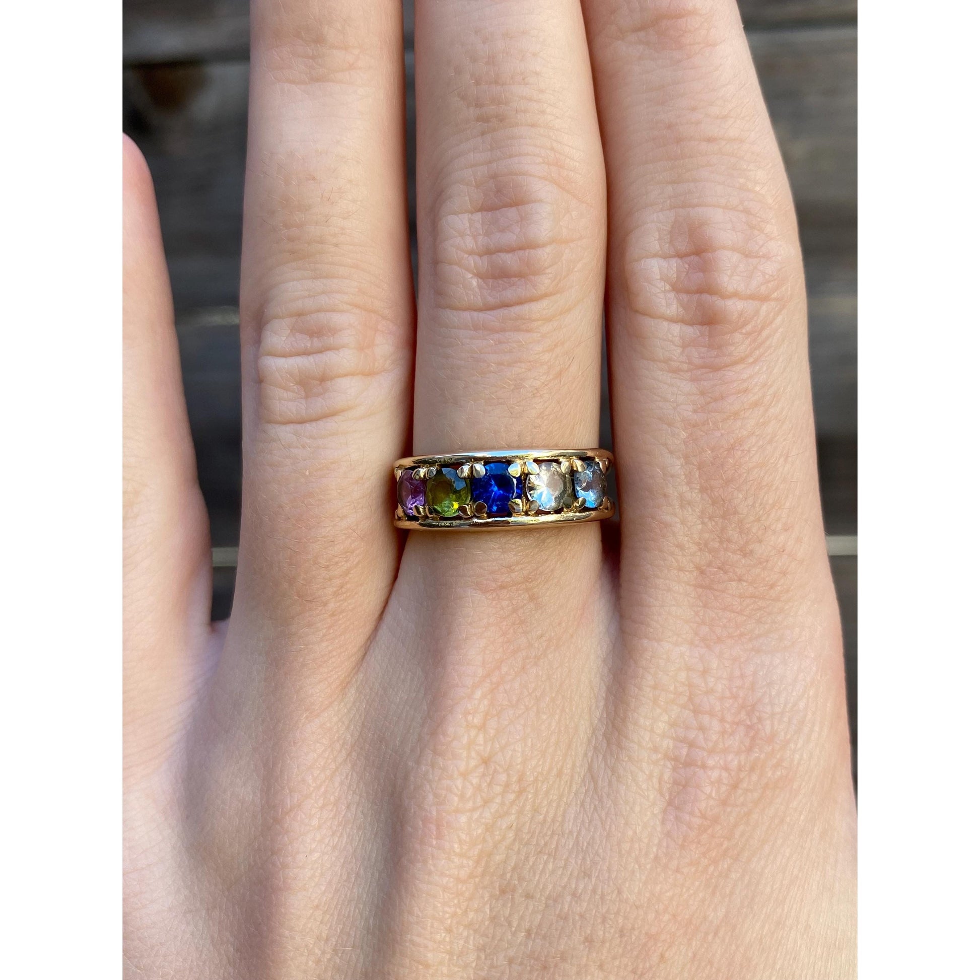 Solid 14k Yellow Gold Pink Sapphire Blue Spinel Peridot Quartz Aquamarine Ring - Size 6.5