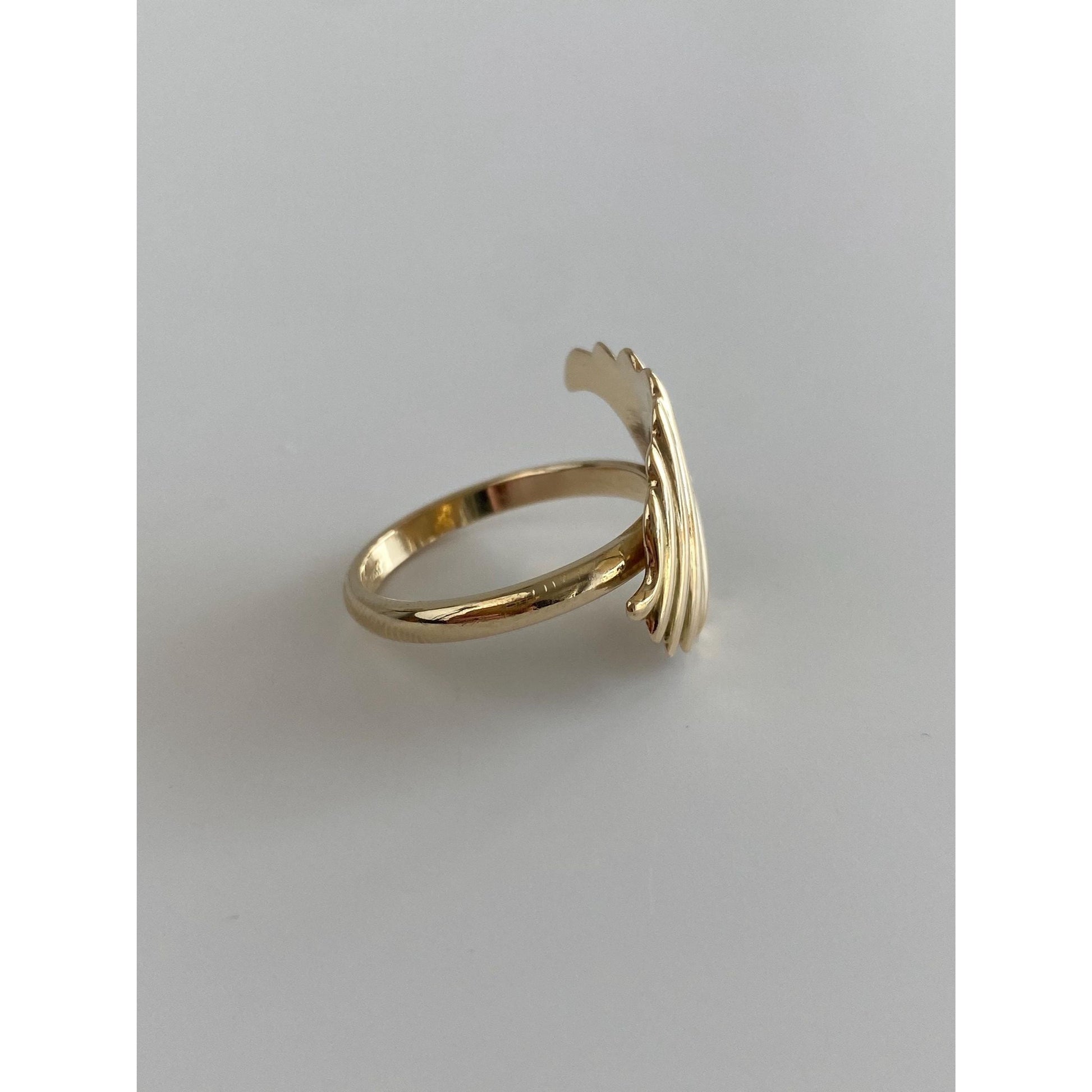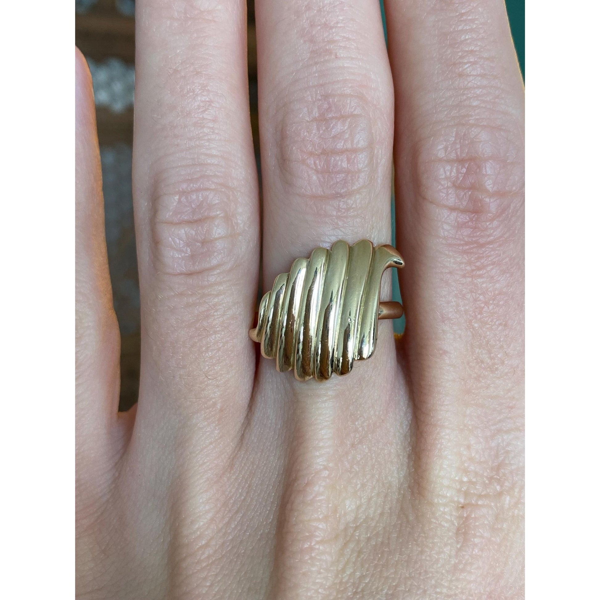 Solid 14k Yellow Gold Post Modern Scalloped Ring - Size 7.25