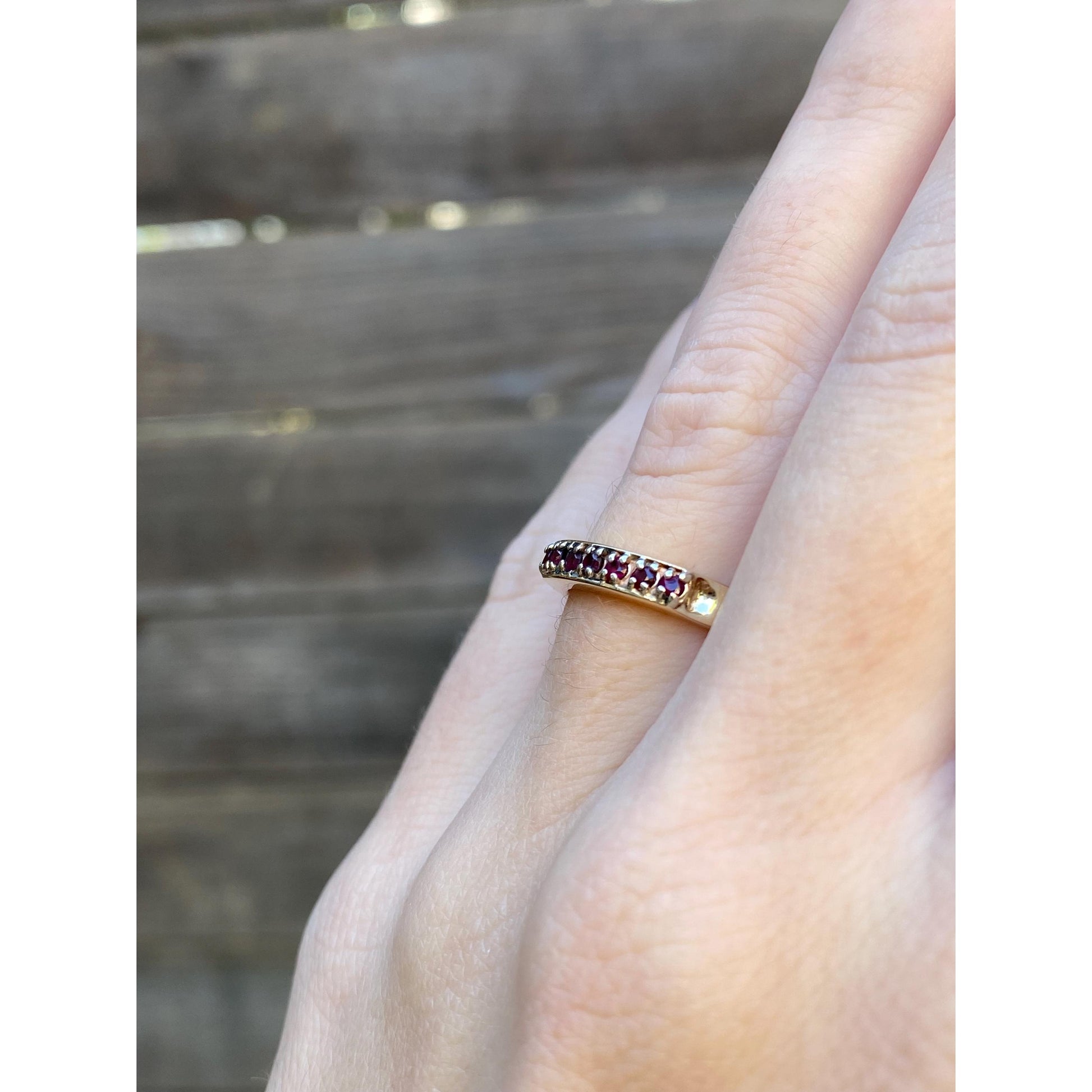 Solid 14k Yellow Gold Red Spinel Ring Band - Size 5.5
