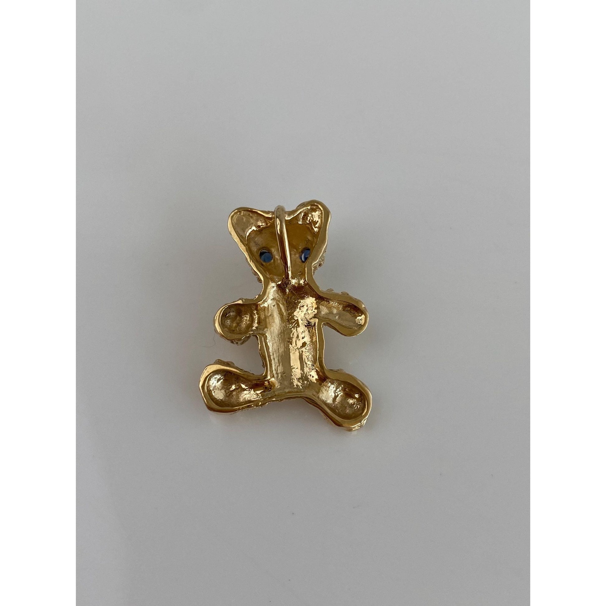 Solid 14k Yellow Gold Sapphire Teddy Bear Charm
