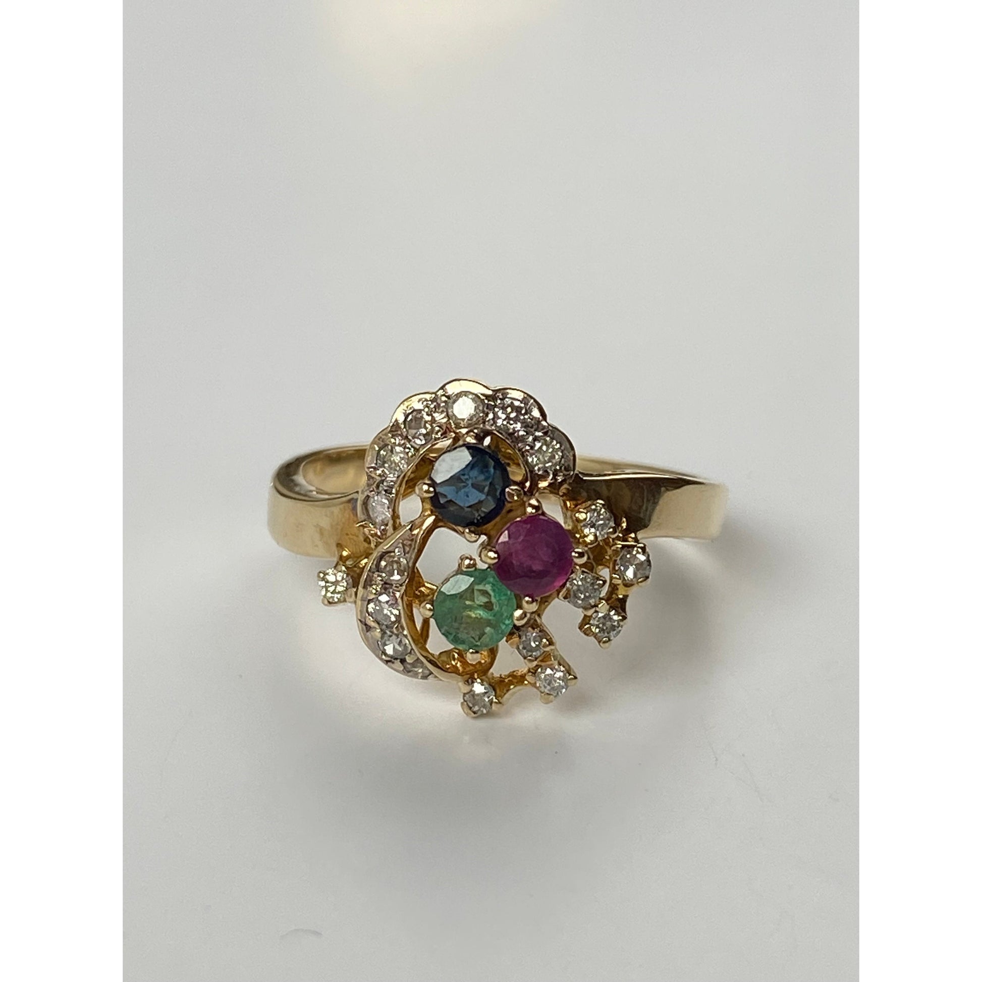 Solid 14k Yellow Gold Spinel Diamond Emerald Ring - Size 6.5