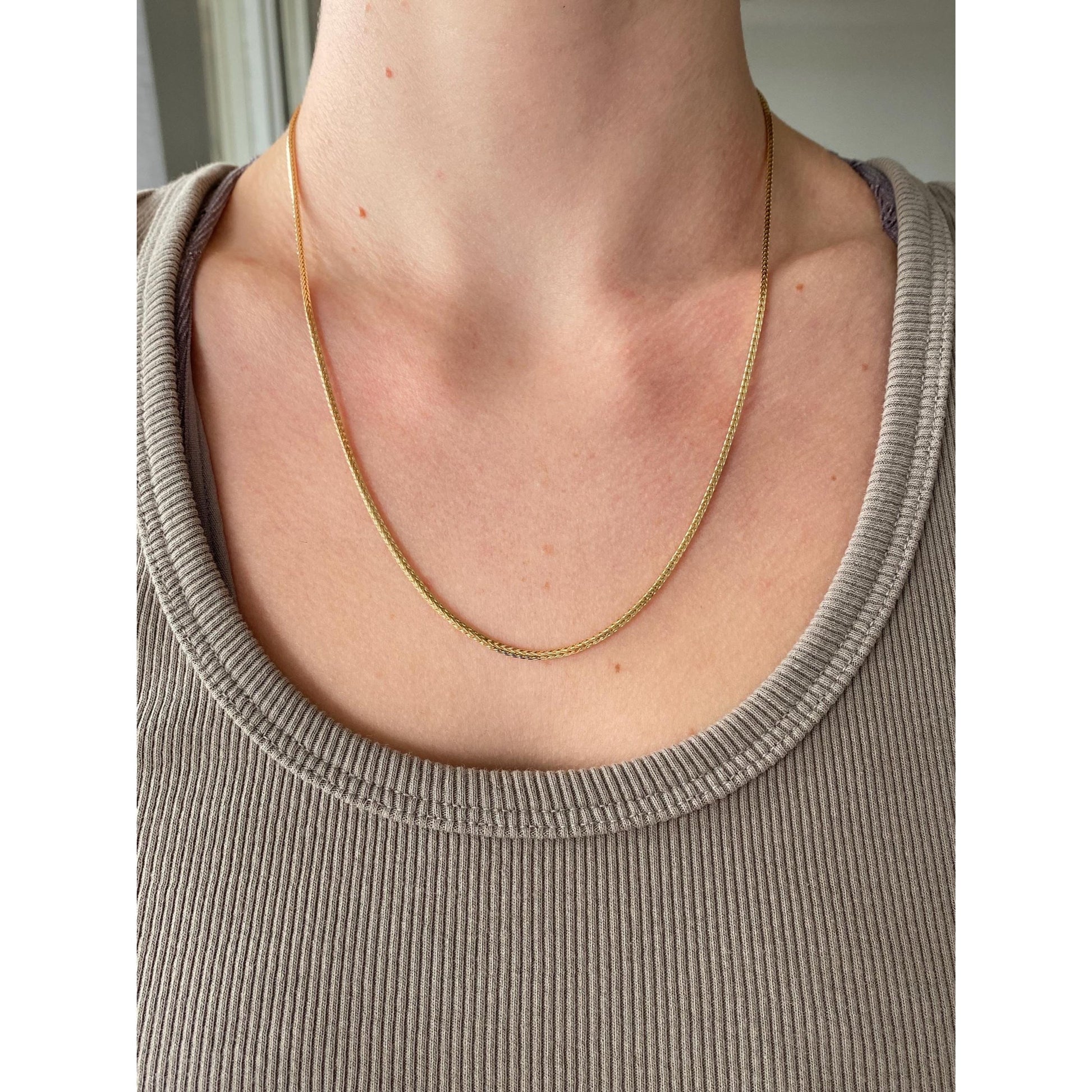 Solid 14k Yellow Gold Square Wheat Chain Necklace - 20 inches