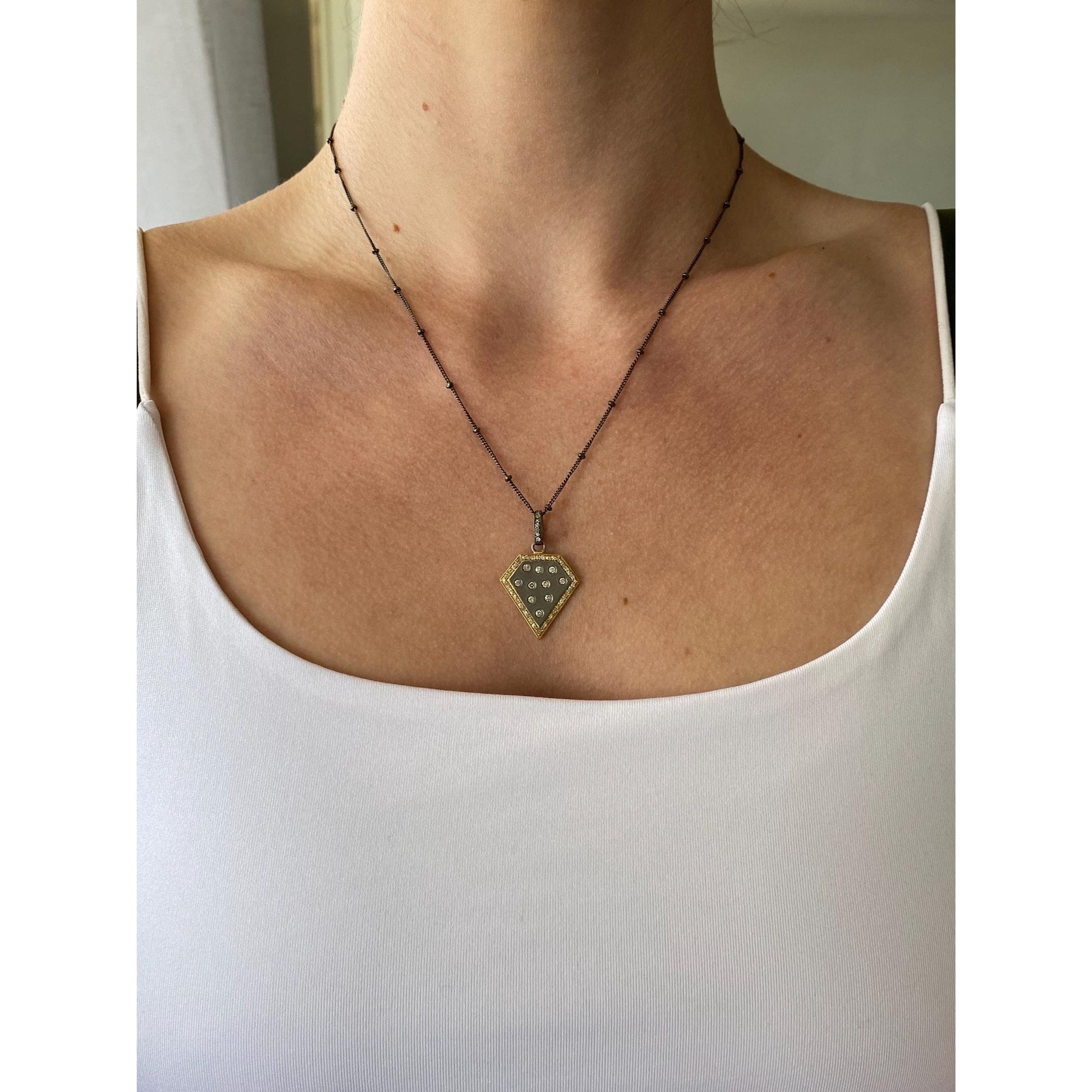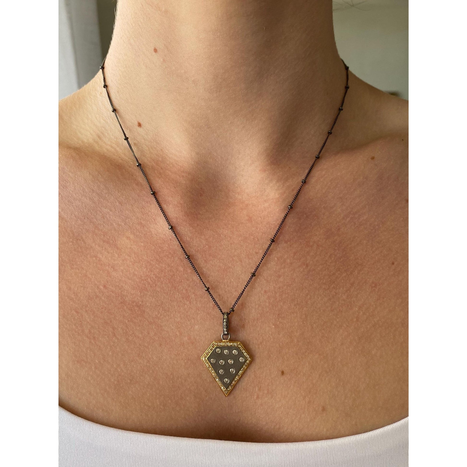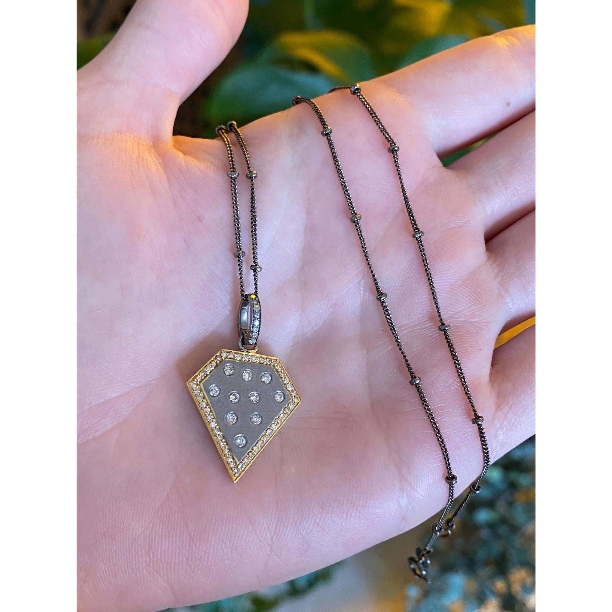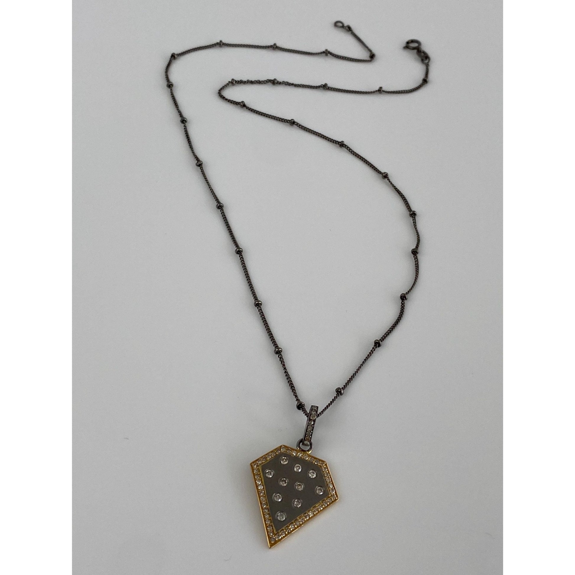Solid 14k Yellow Gold & Sterling Silver Diamond Necklace - 18 inches
