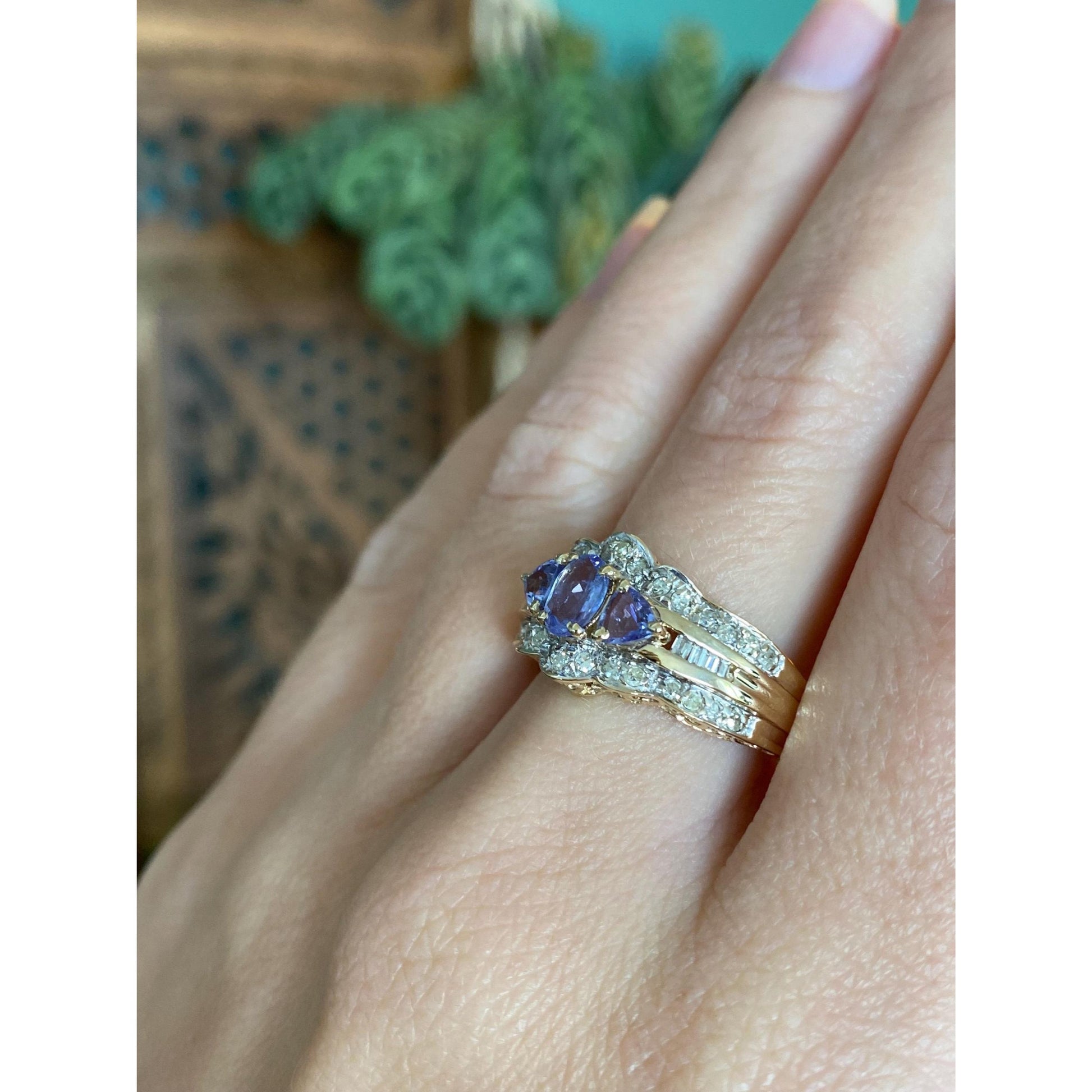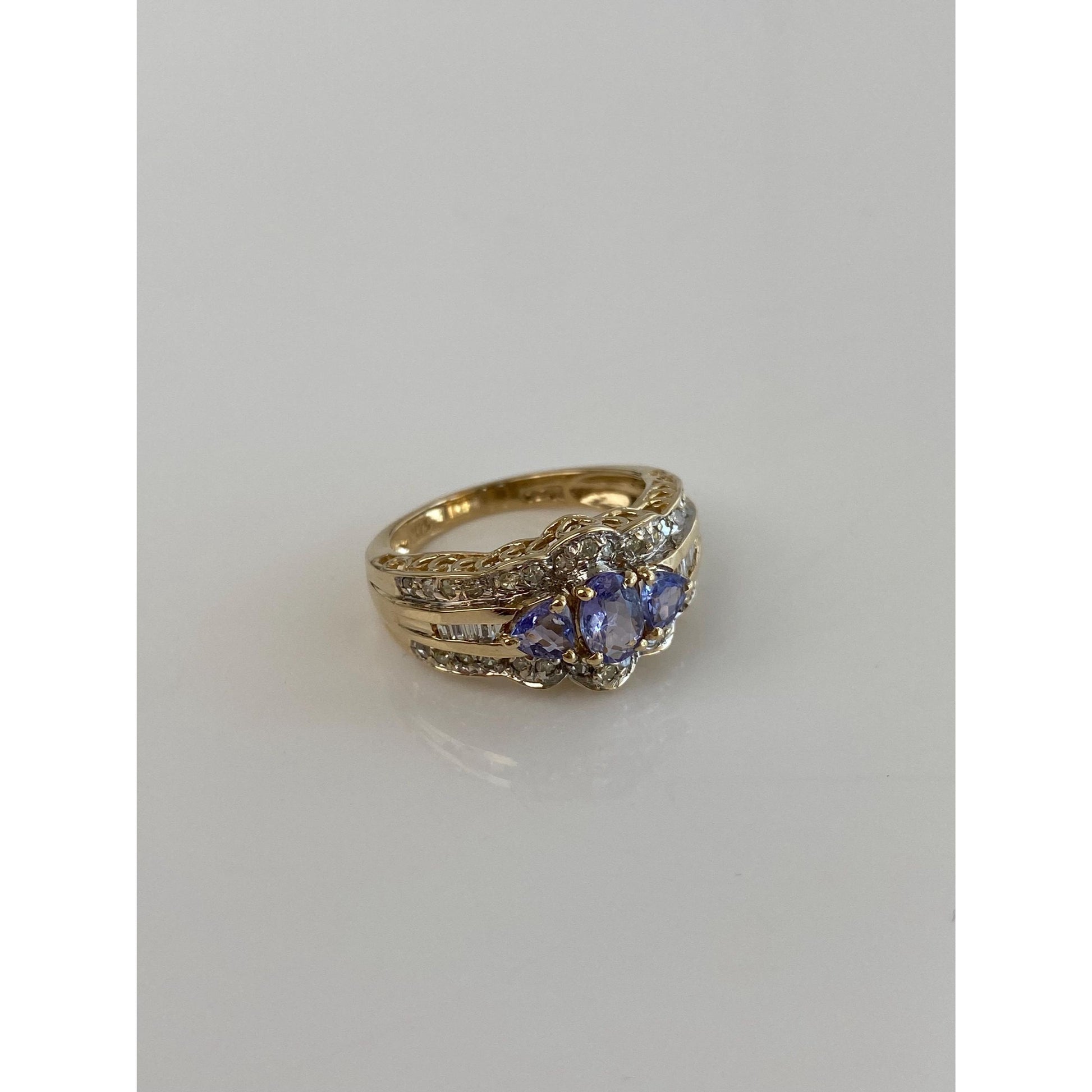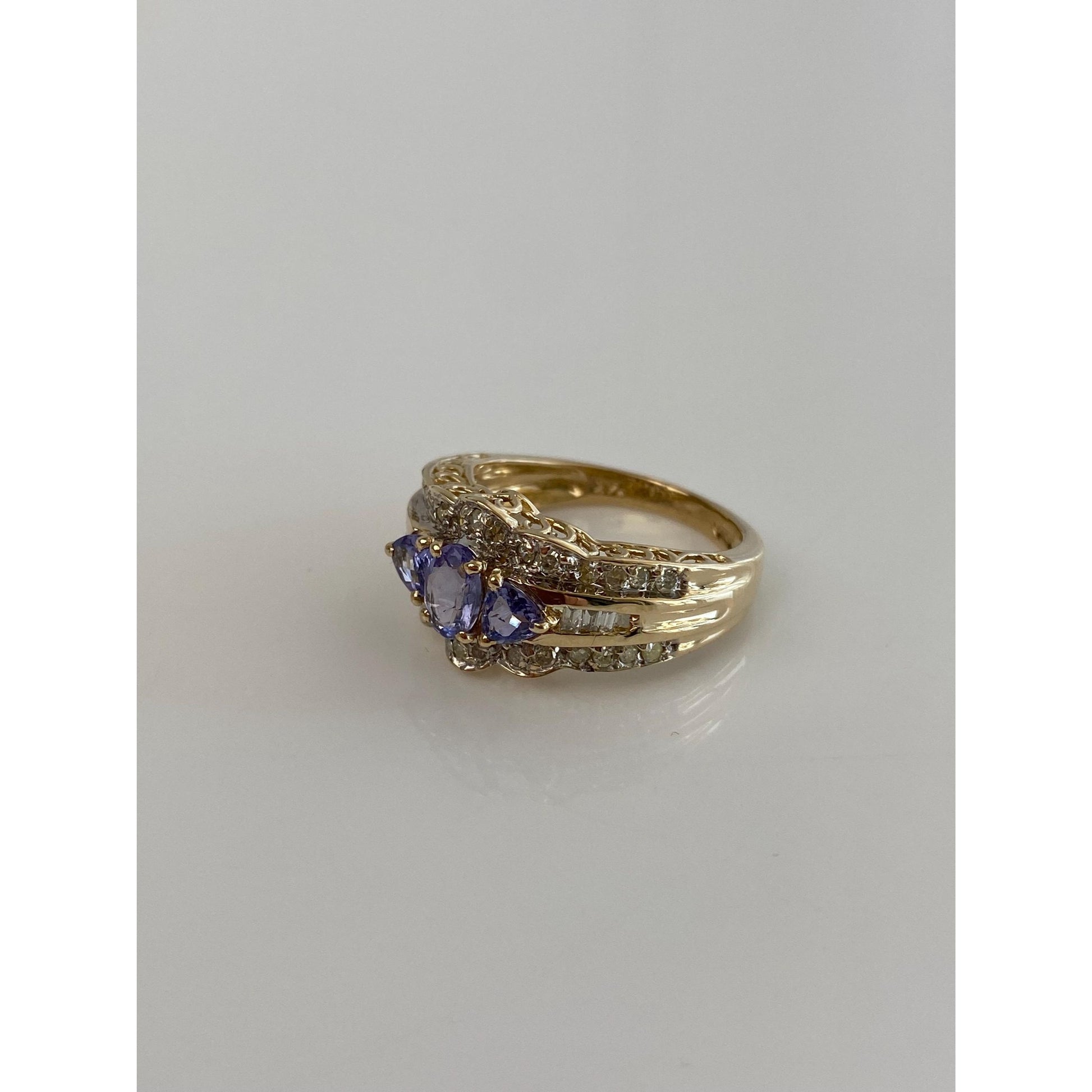 Solid 14k Yellow Gold Tanzanite Diamond Ring Band - Size 7