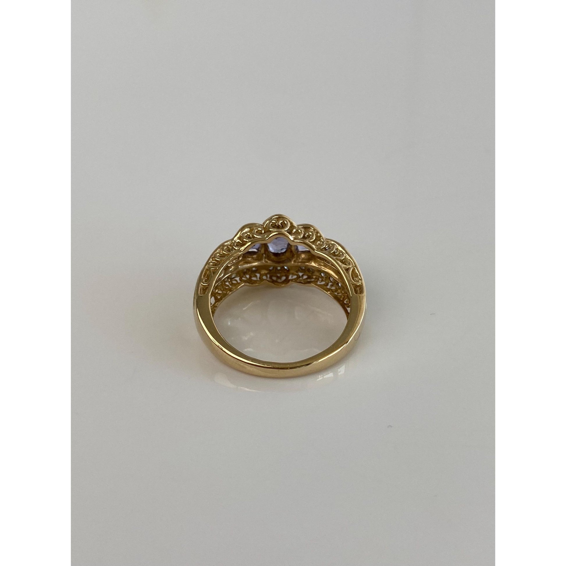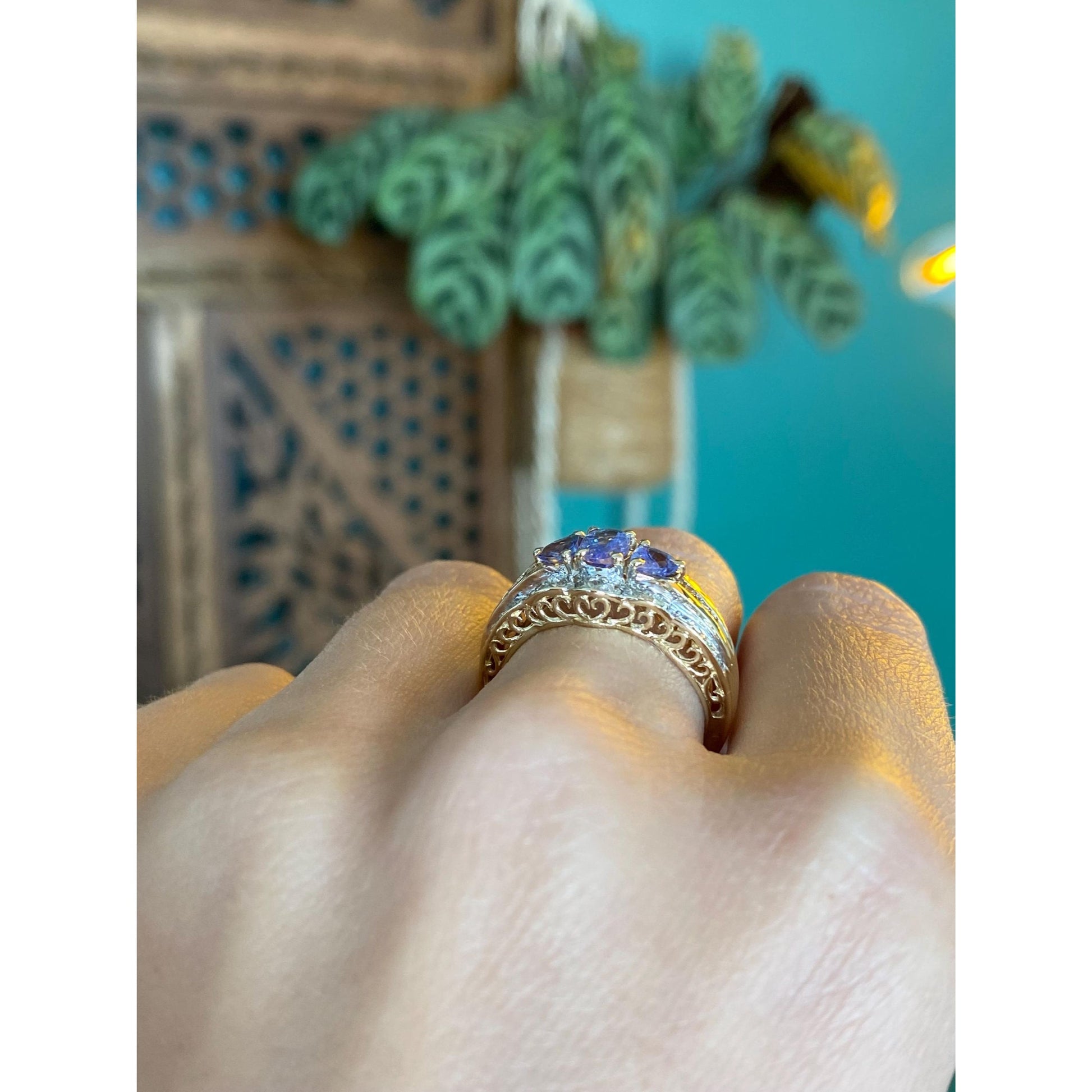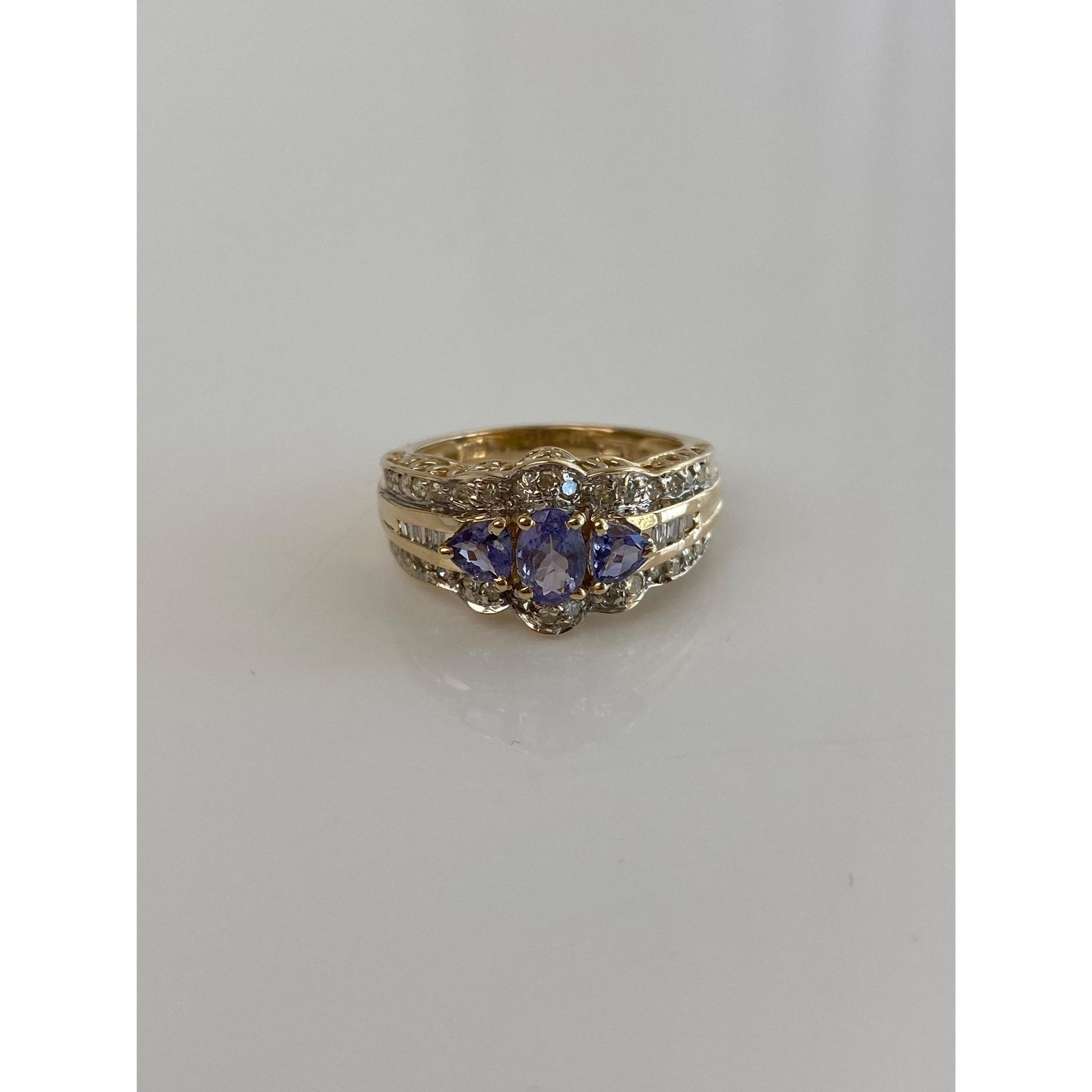 Solid 14k Yellow Gold Tanzanite Diamond Ring Band - Size 7