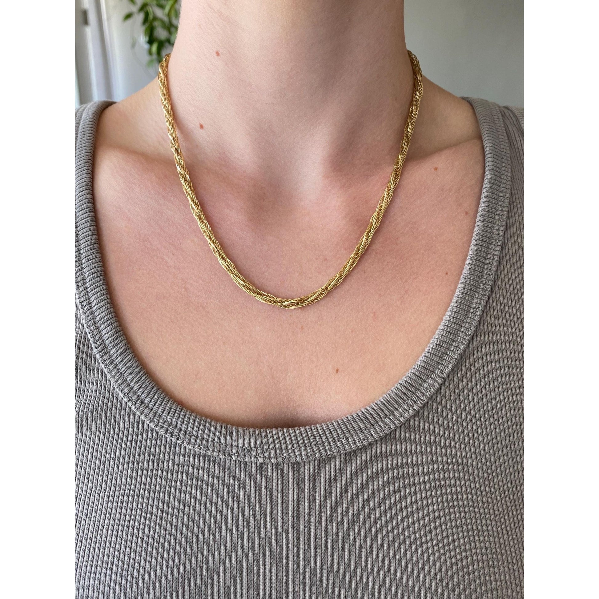 Solid 14k Yellow Gold Woven Twist Chain Necklace - 18 inches