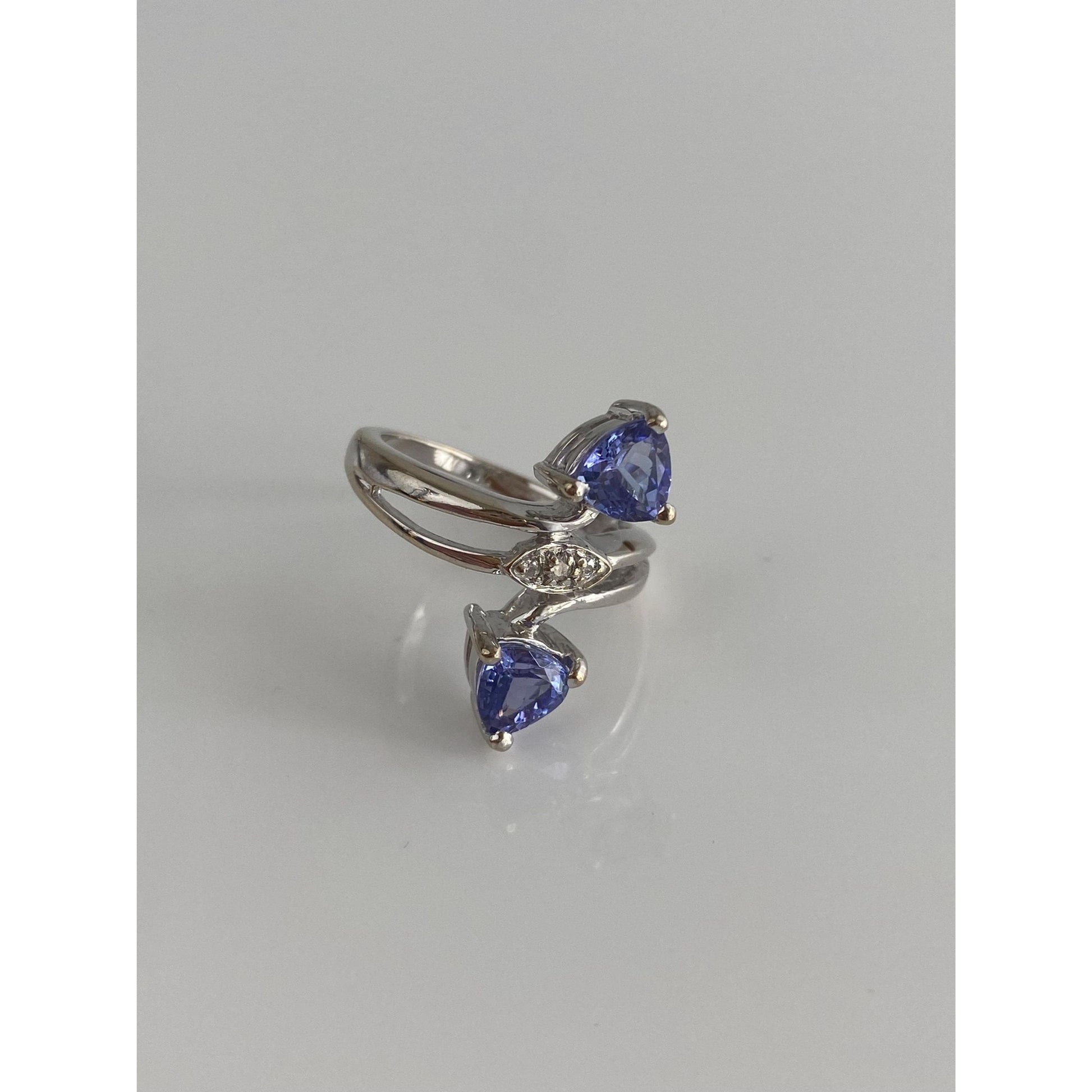 Solid 18k White Gold Diamond Tanzanite Ring - Size 6.75