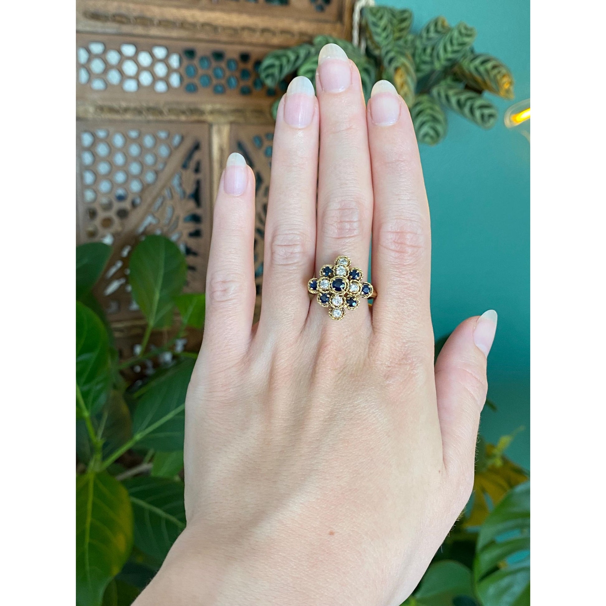 Solid 18k Yellow Gold Diamond Sapphire Ring Band - Size 6.5-8.5