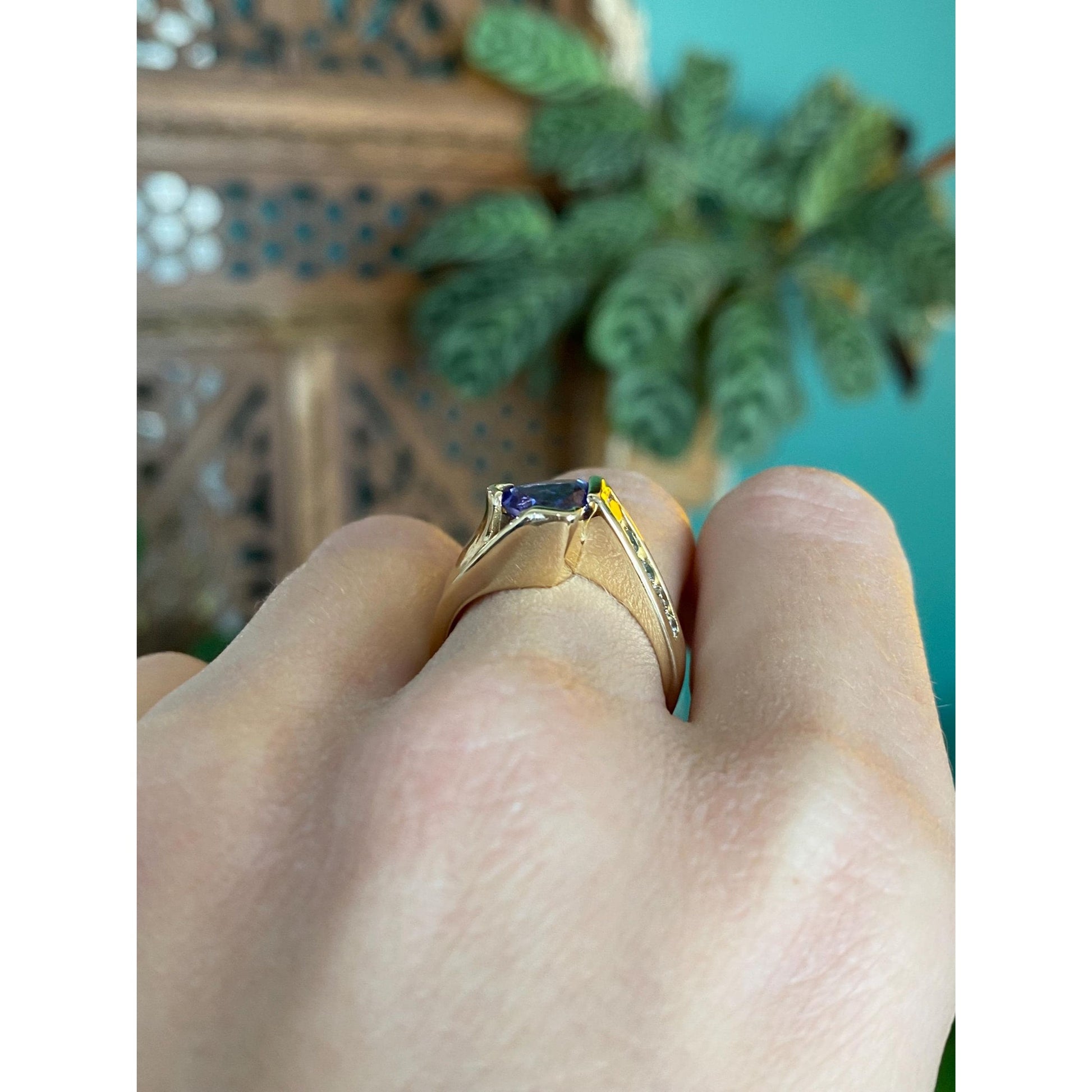 Solid 18k Yellow Gold Diamond Tanzanite Ring - Size 7