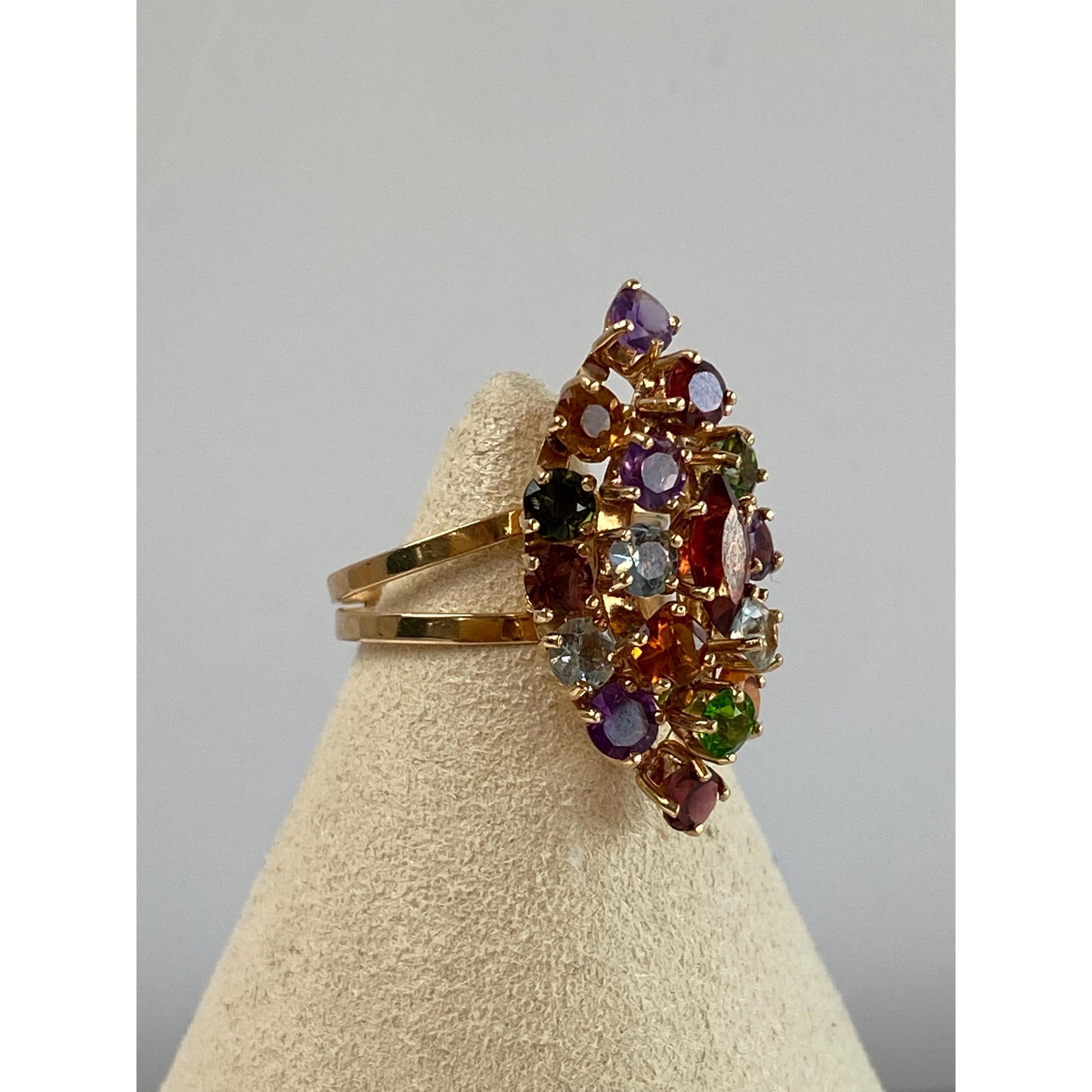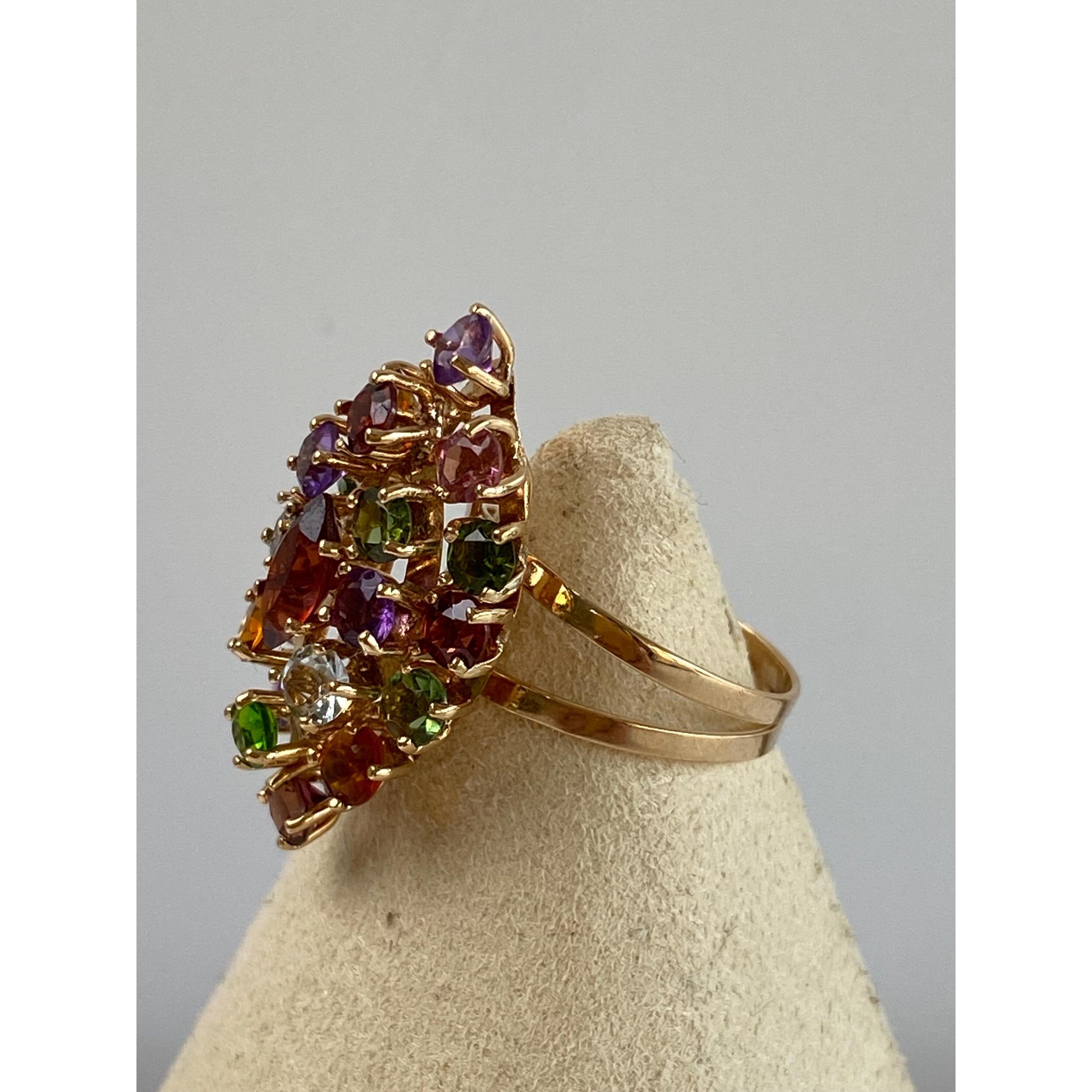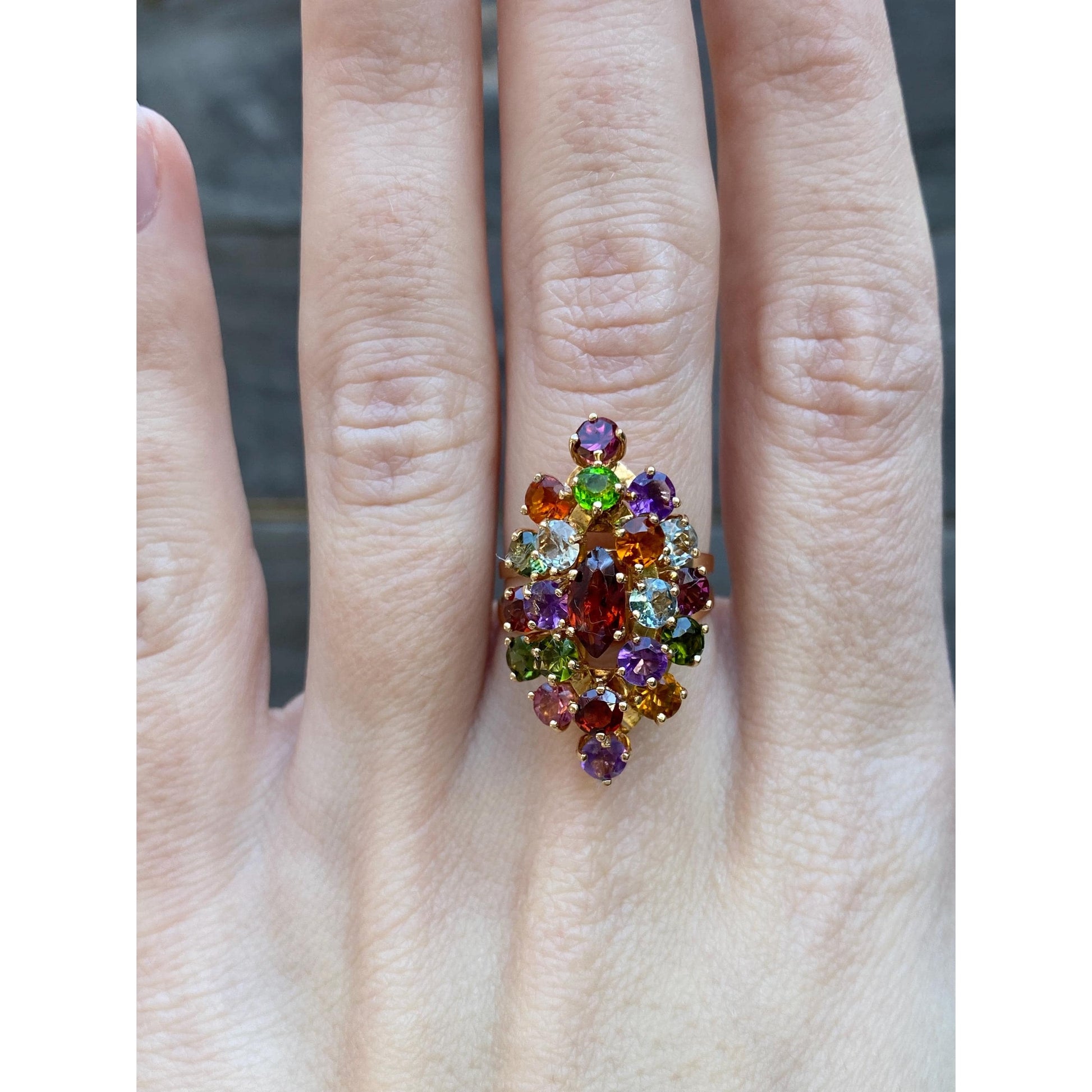 Solid 18k Yellow Gold Garnet Clear Quartz Pink Tourmaline Green Cubic Zirconia Ring - Size 6.25