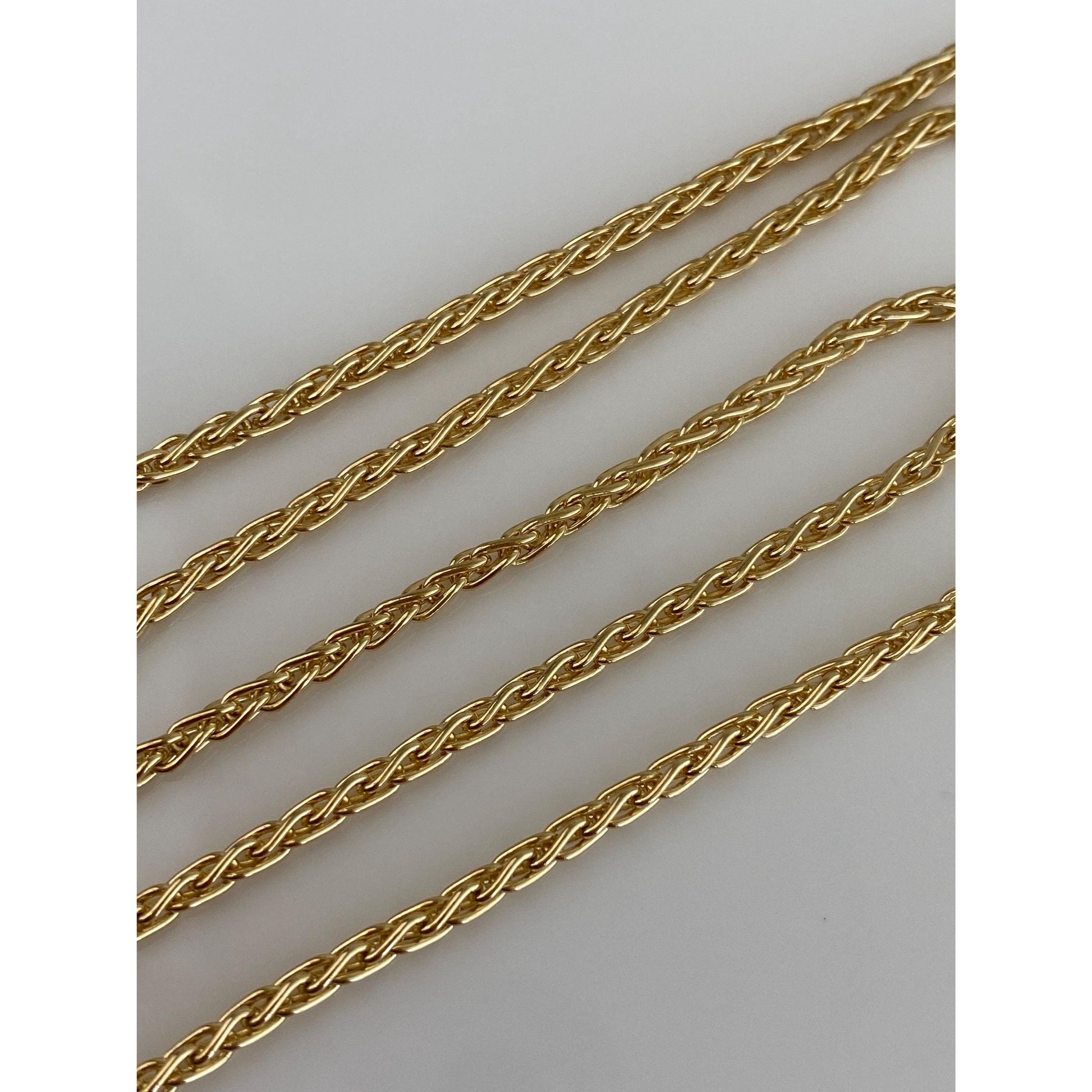 Solid 18k Yellow Gold Long Wheat Chain Necklace - 24 inches