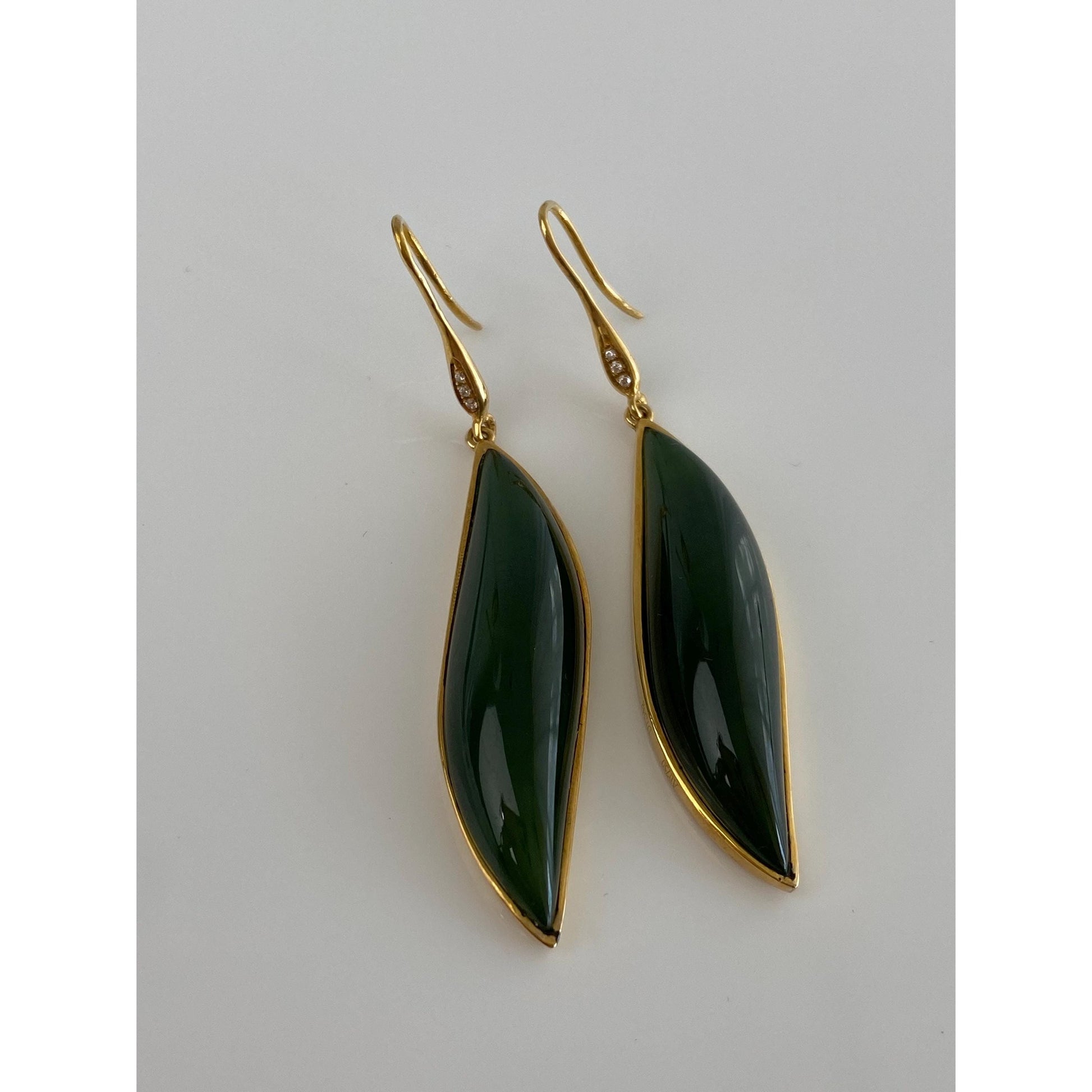 Solid 18k Yellow Gold Nephrite Jade & Diamond Drop Earrings