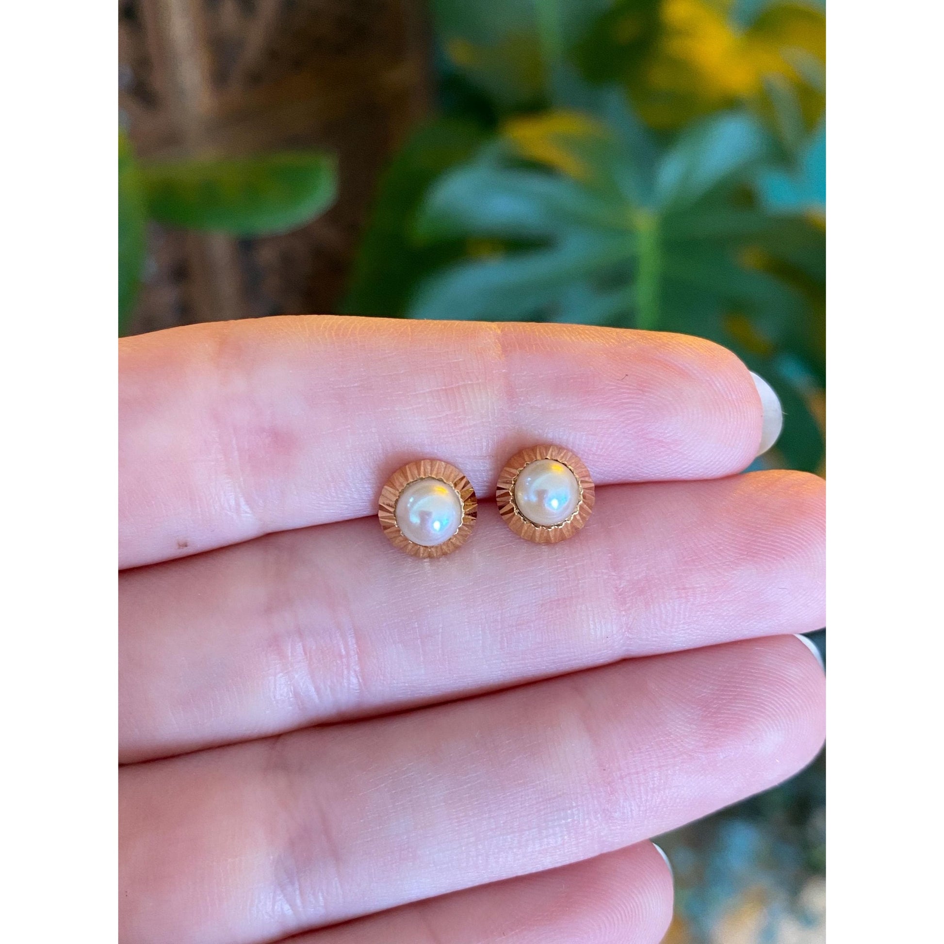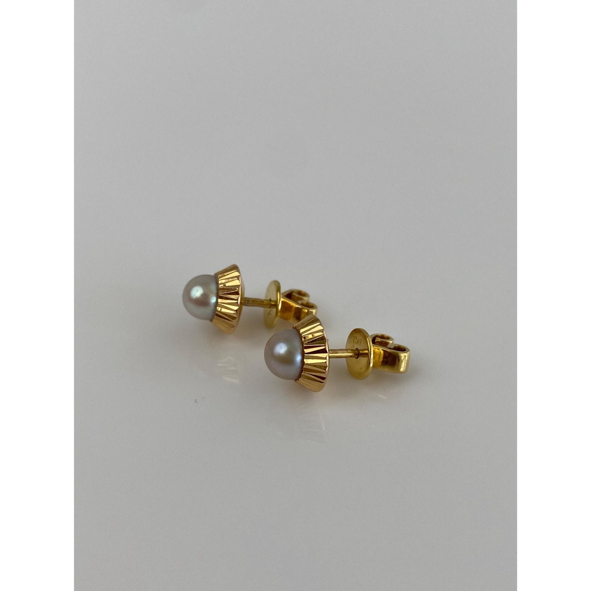 Solid 18k Yellow Gold Pearl Stud Earrings