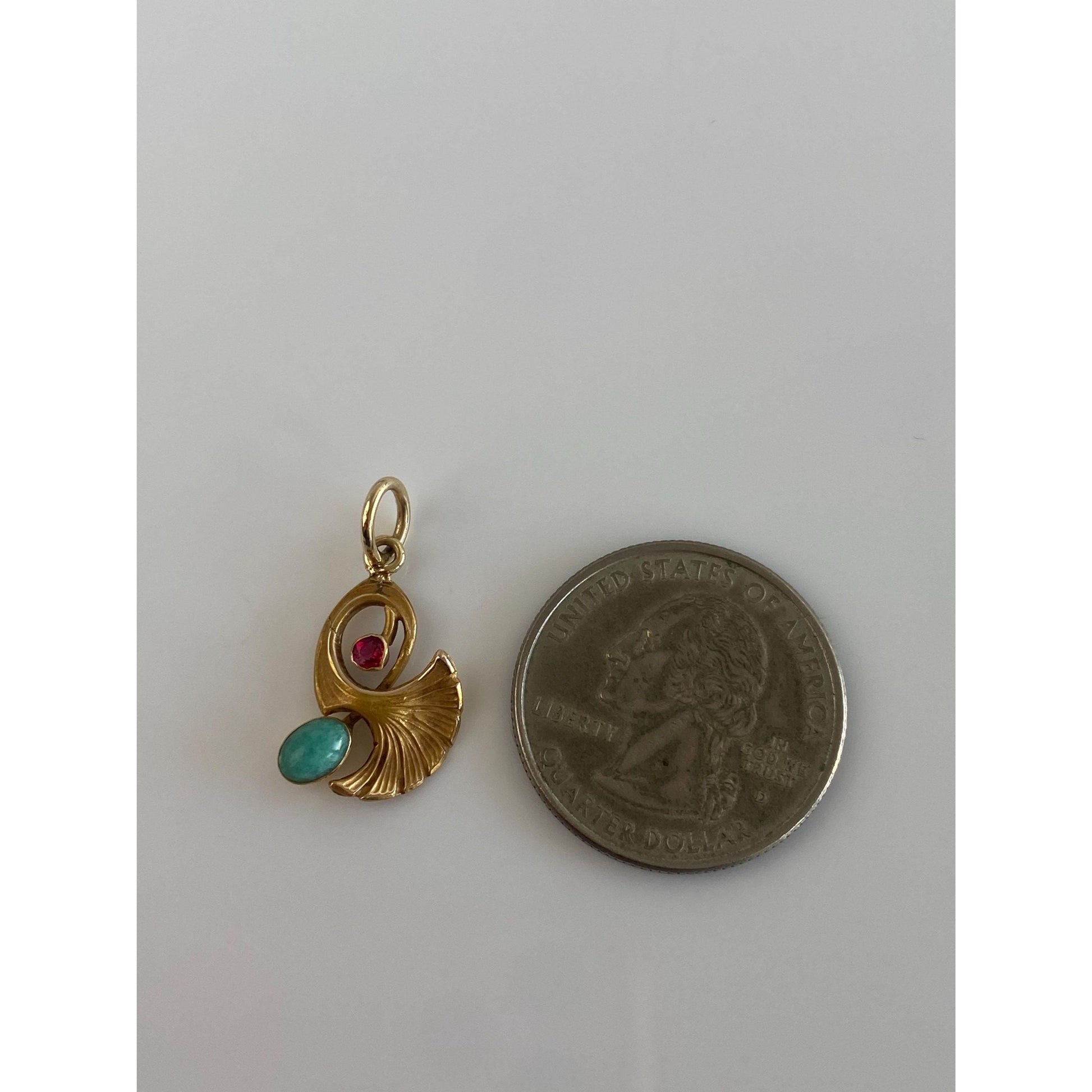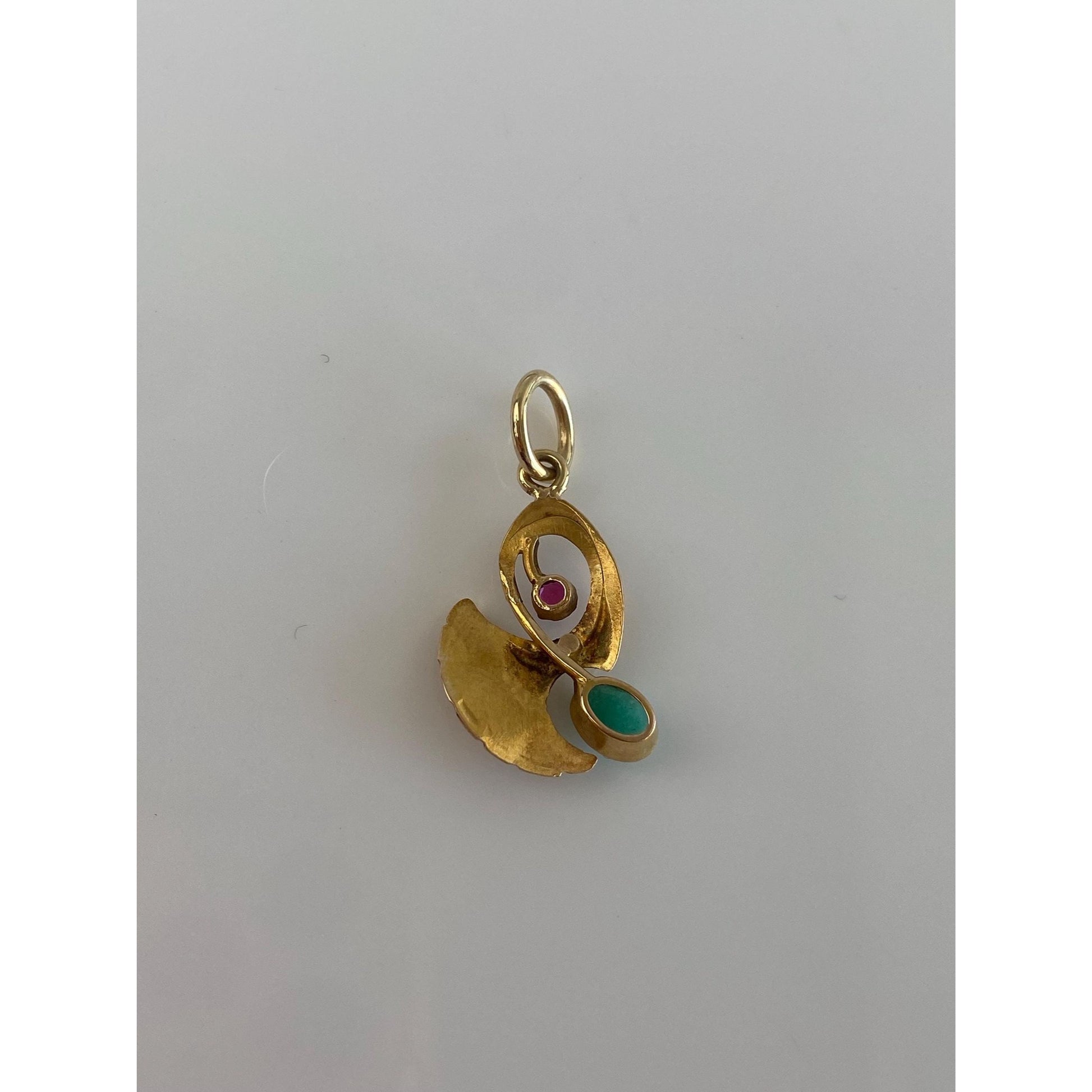 Solid 18k Yellow Gold Pink Cubic Zirconia Amazonite Leaf Charm