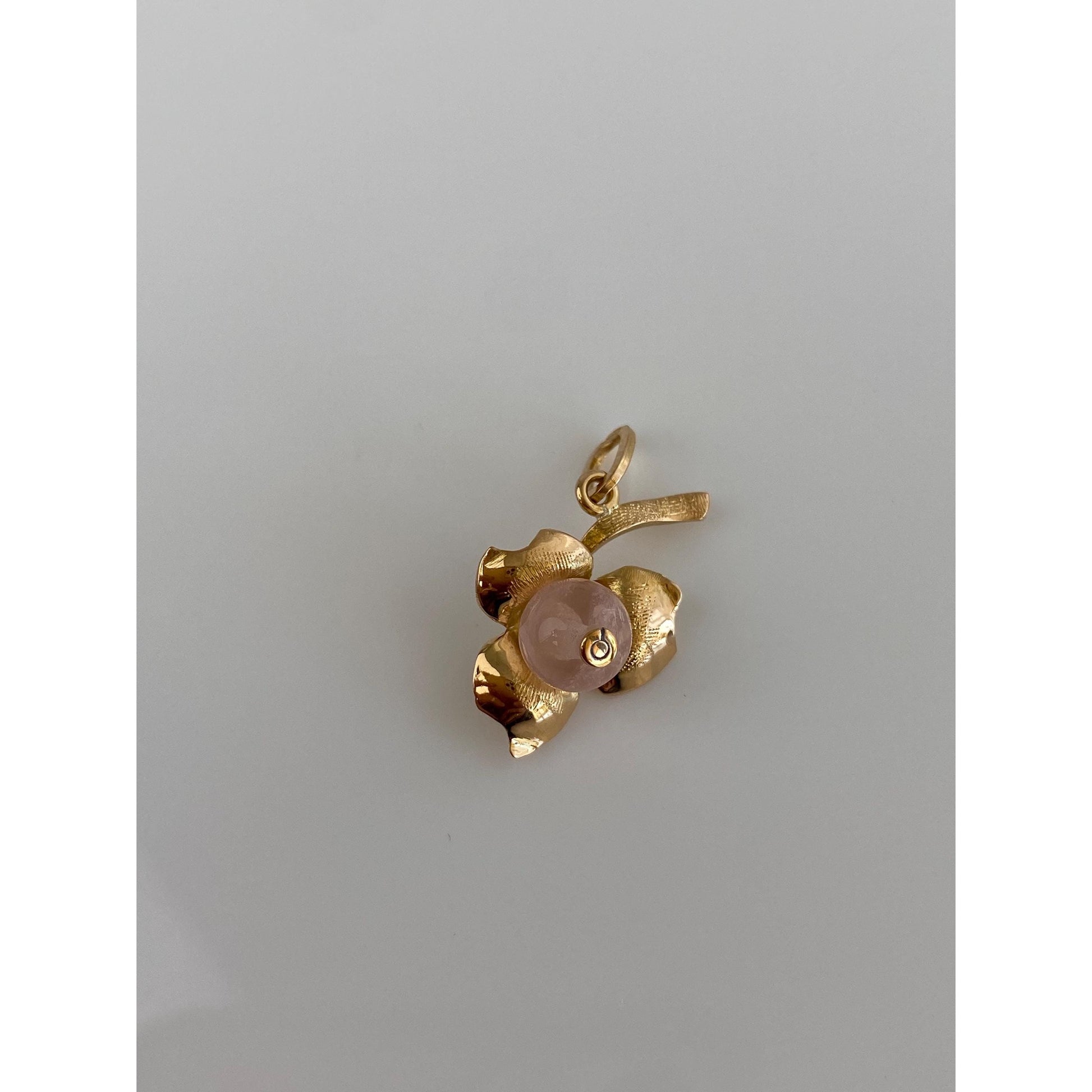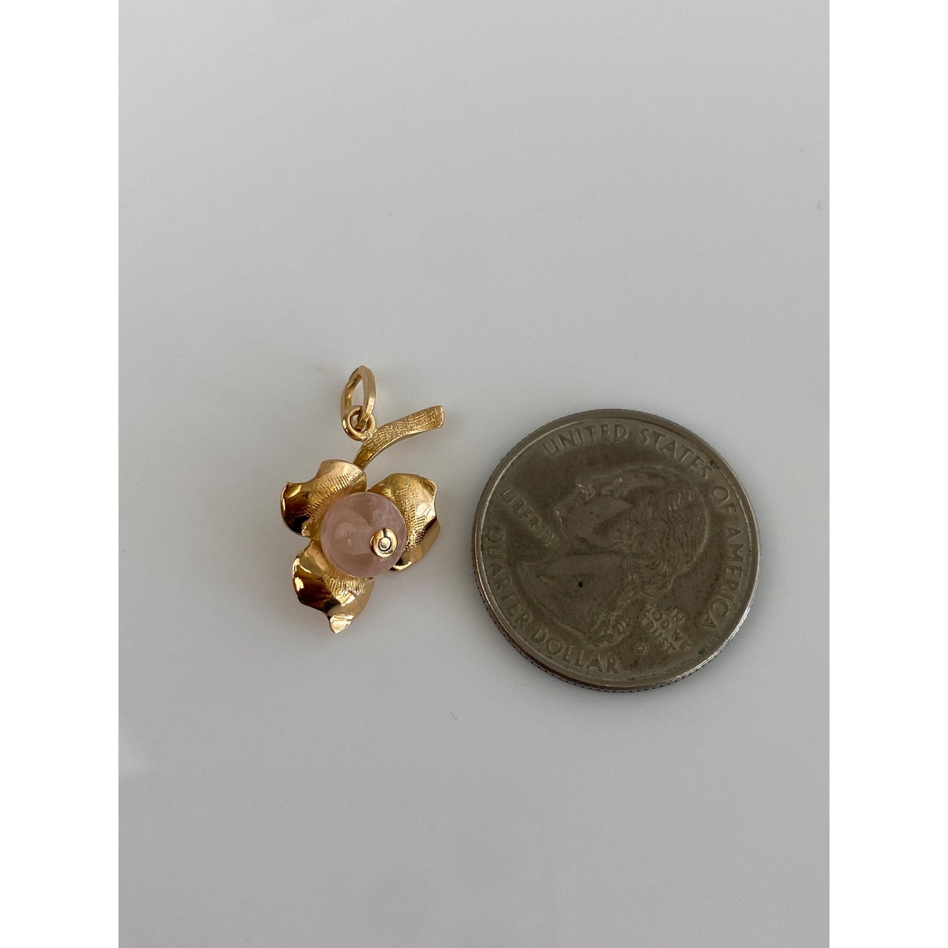 Solid 18k Yellow Gold Rose Quartz Flower Charm