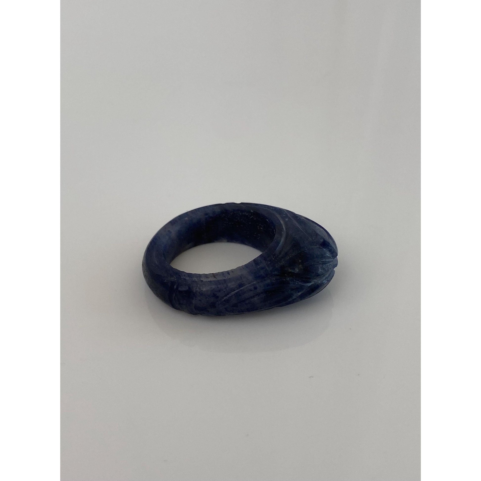 Solid Carved Blue Stone Ring - Size 4.75