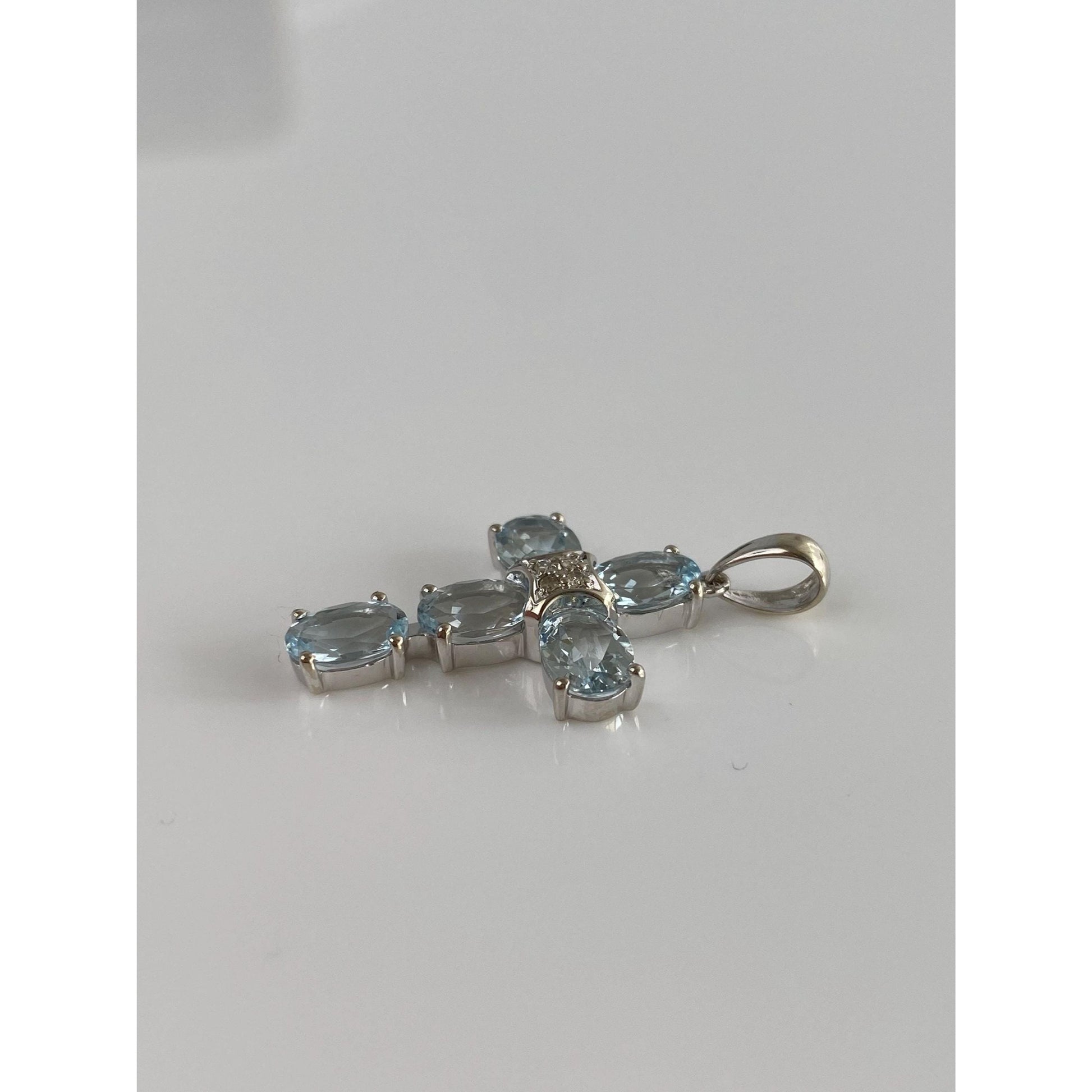 Vintage 10k White Gold Clear Sapphire Aquamarine Cross Charm