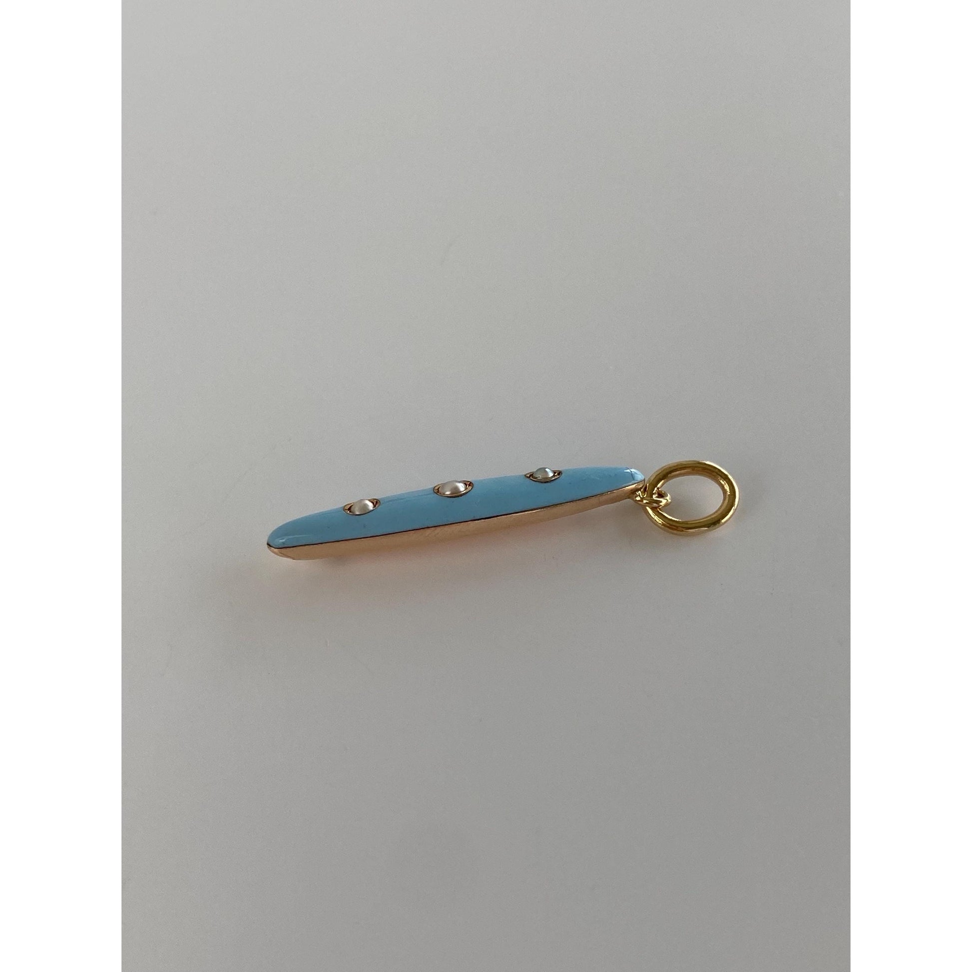 Vintage 10k Yellow Gold Blue Enamel Seed Pearl Domed Charm