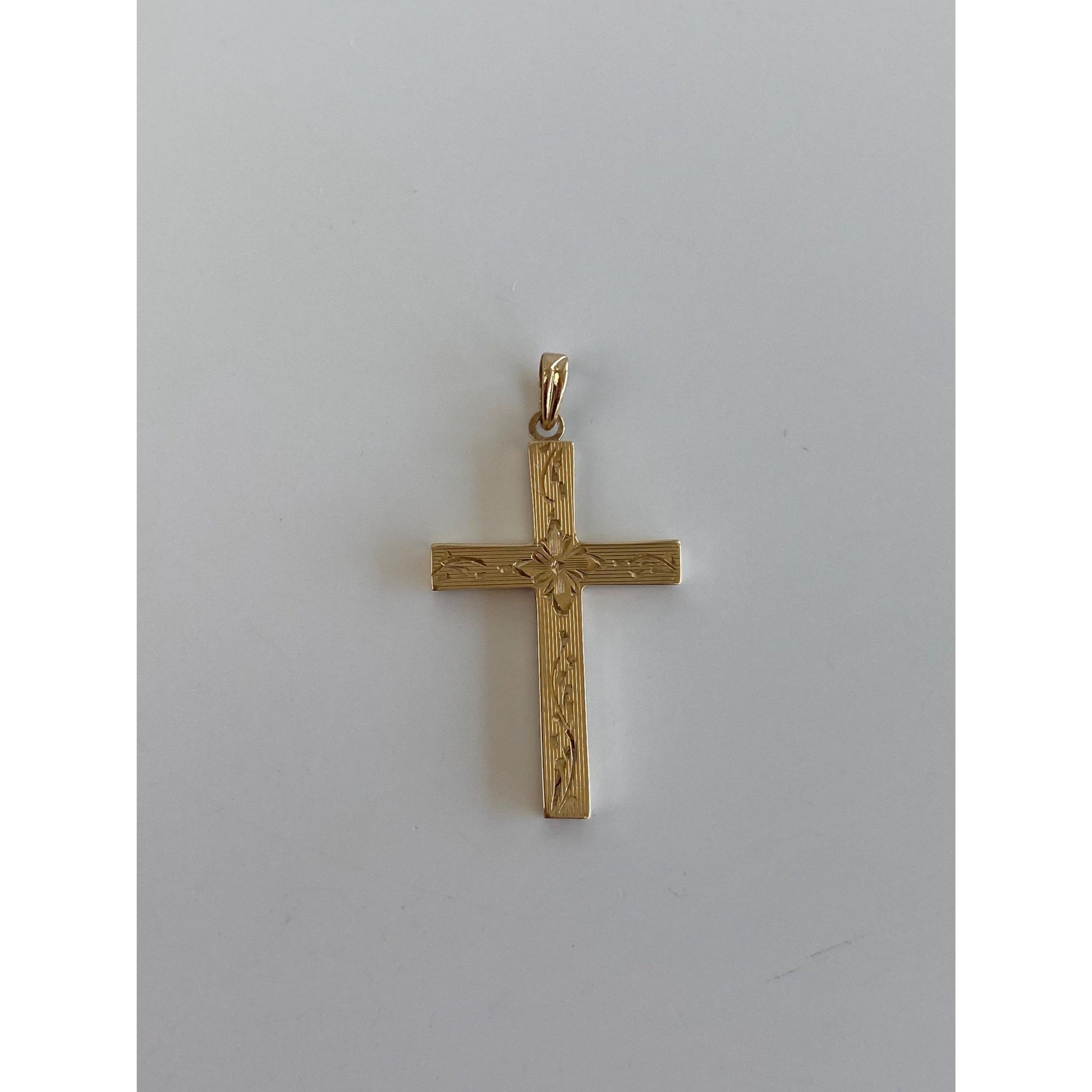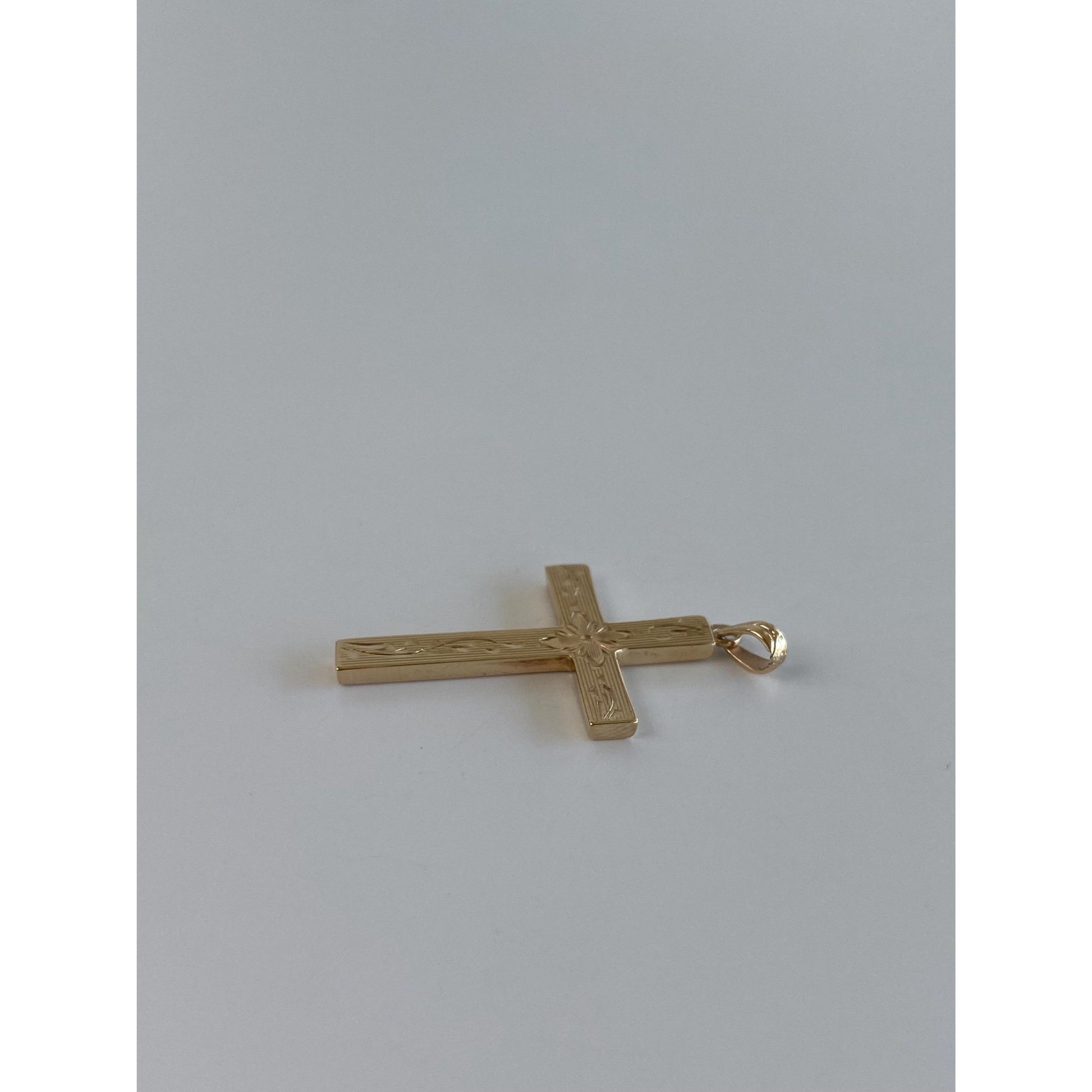Vintage 10k Yellow Gold Engraved Scrollwork Cross Charm