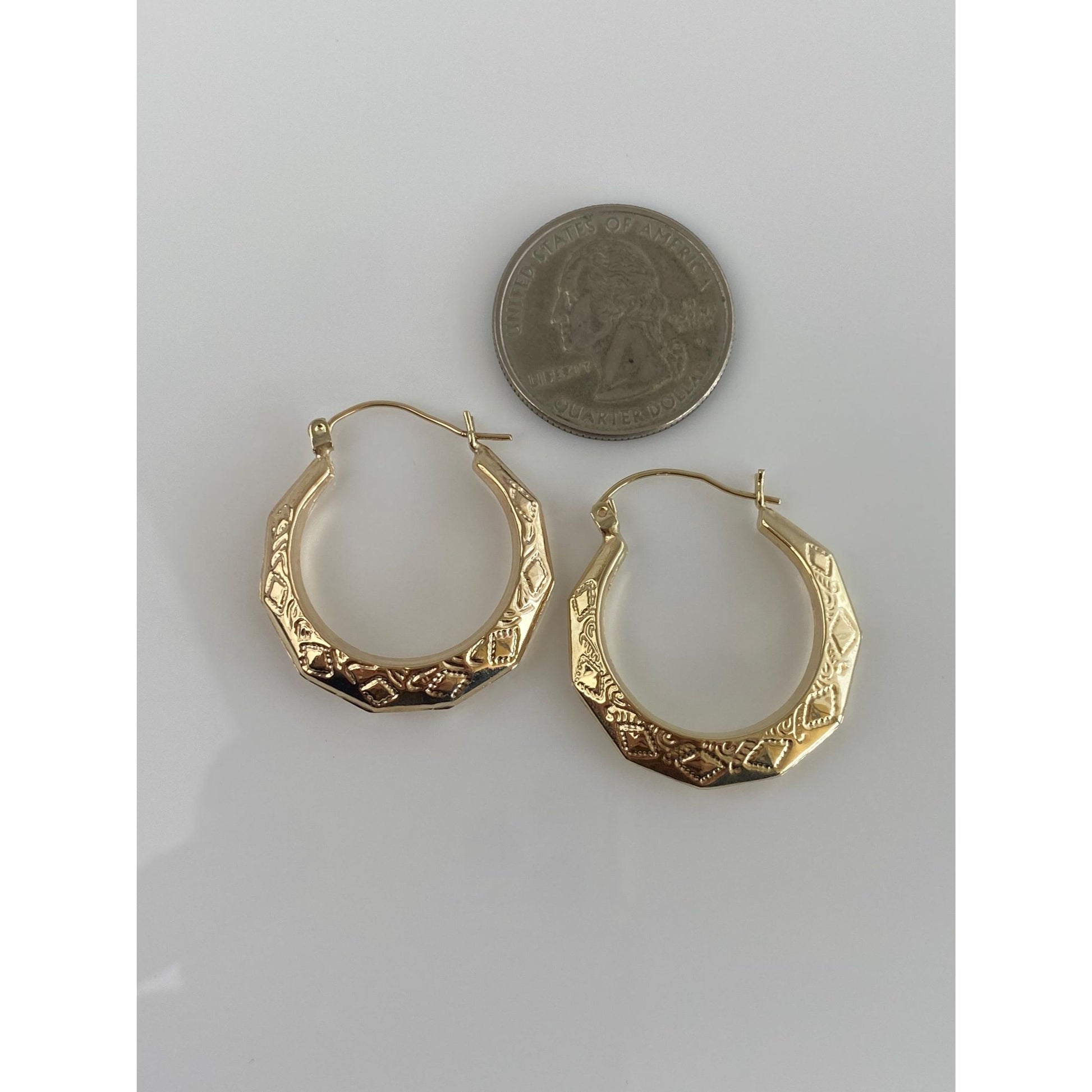Vintage 10k Yellow Gold Pattern Hoop Earrings