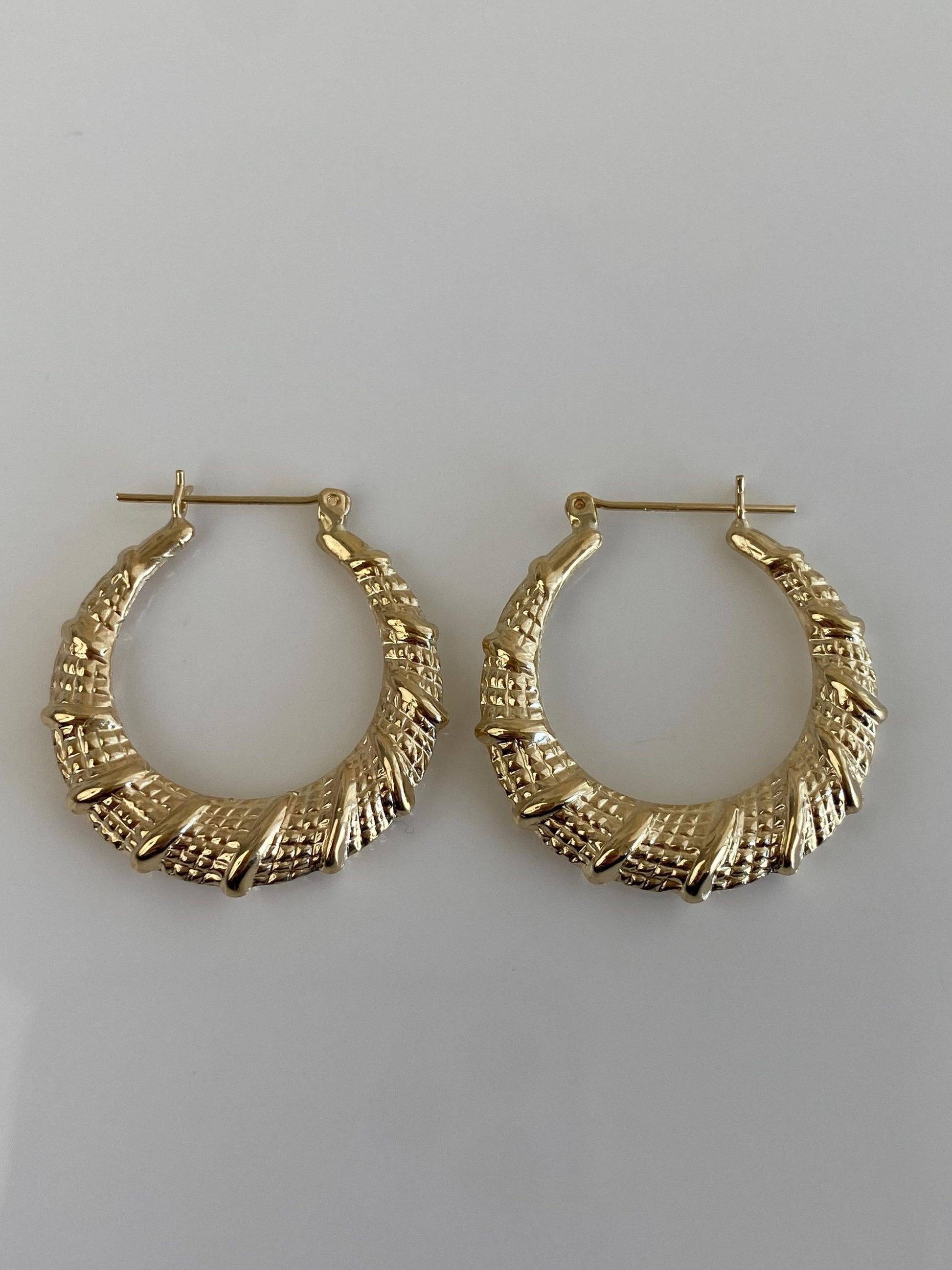 Vintage 10k Yellow Gold Scalloped Design Hoop Earrings