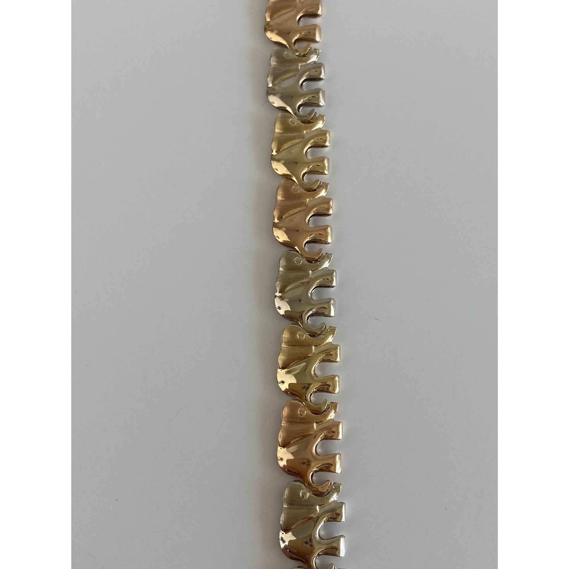 Vintage 14k Solid Tri Tone Gold Elephant Link Bracelet - 8 inches