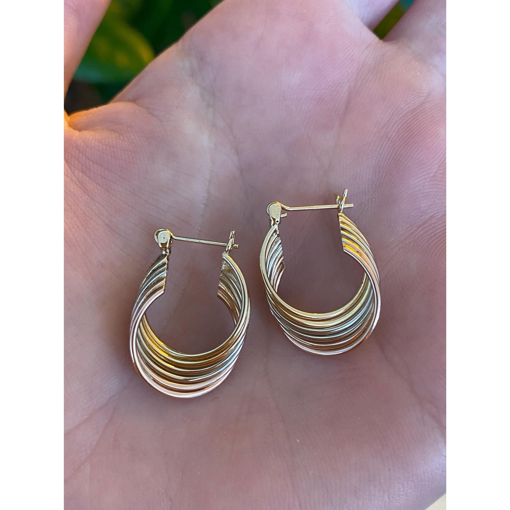 Vintage 14k Tri Tone Gold Layered Hoop Earrings