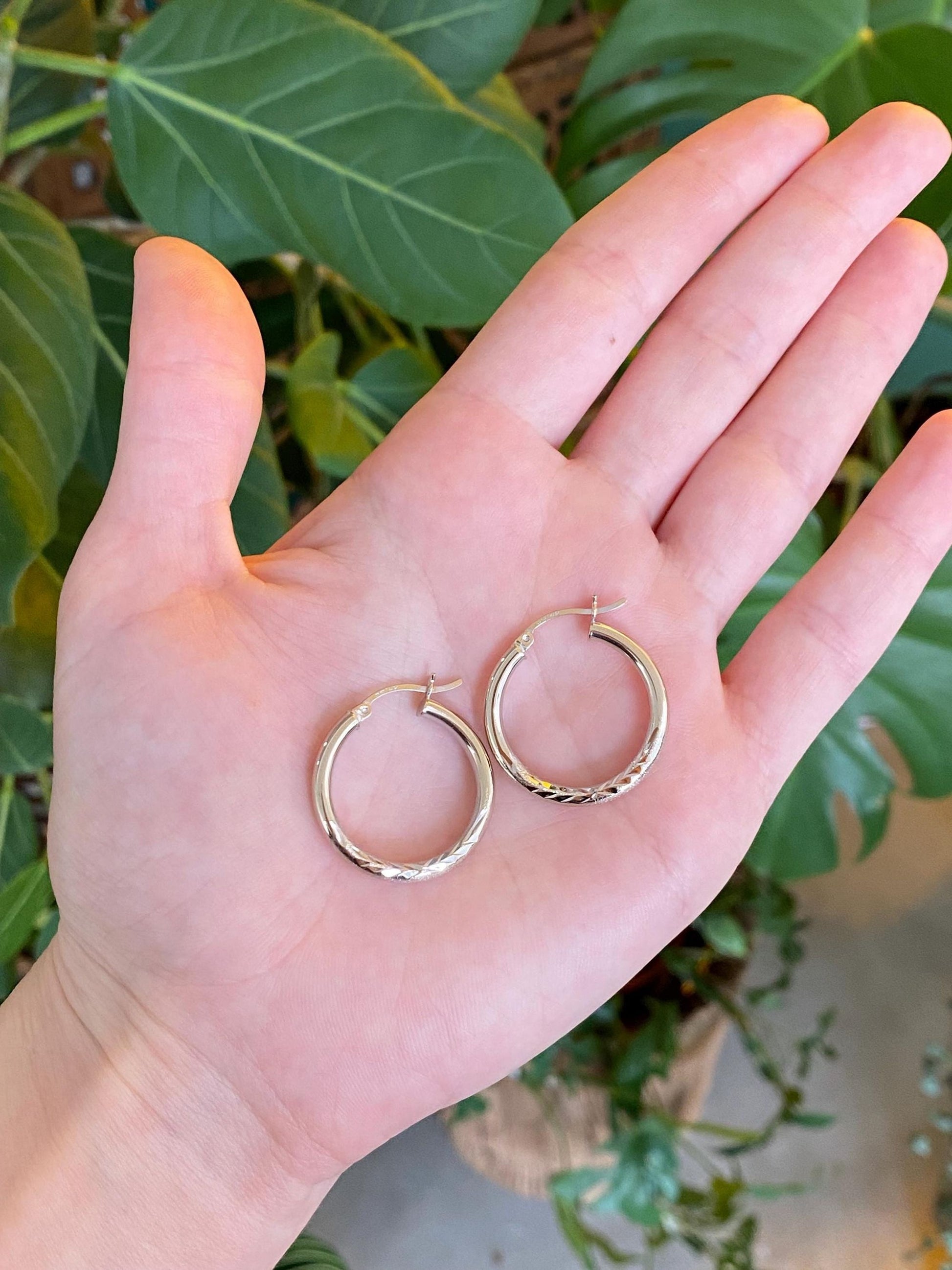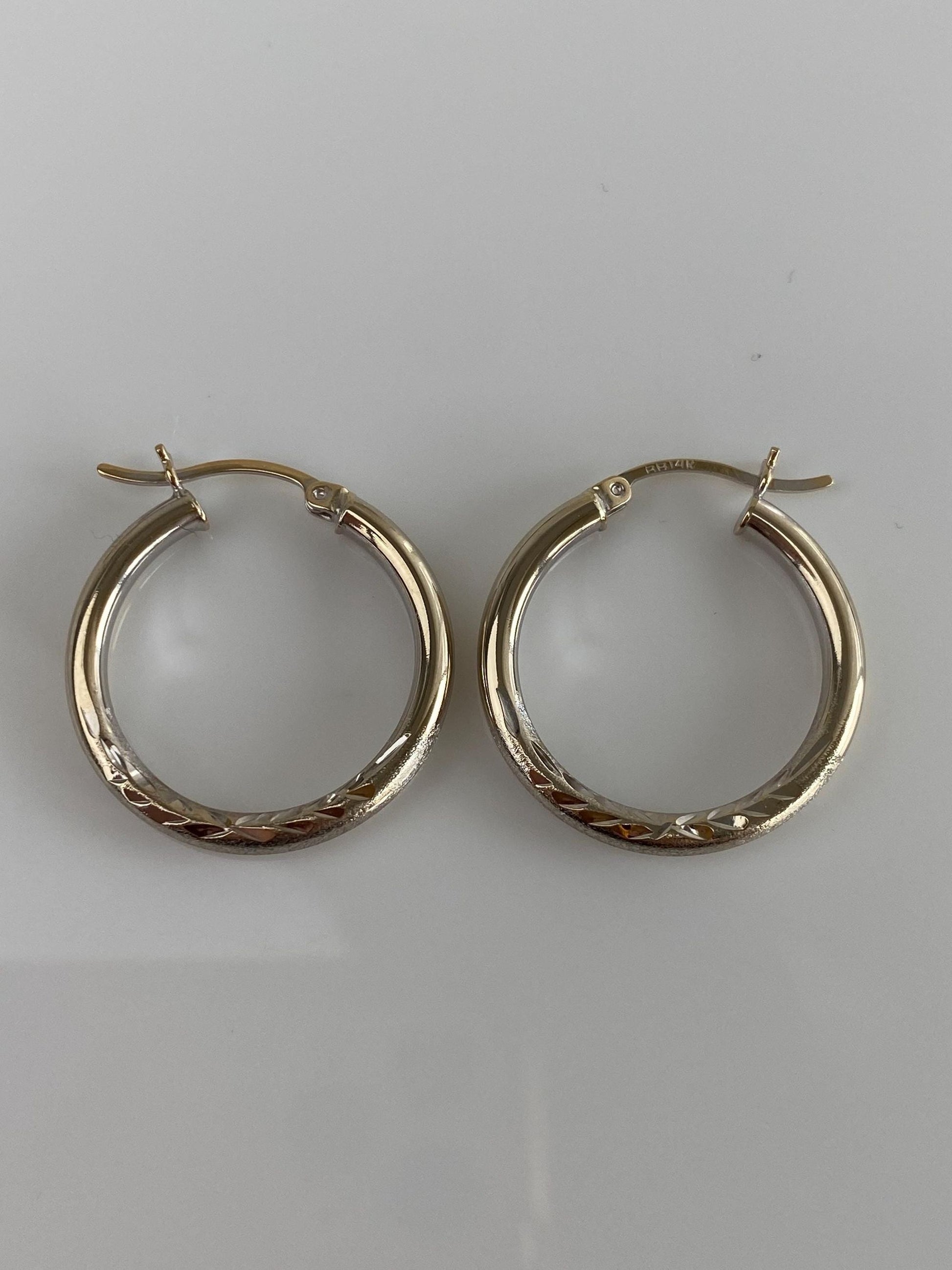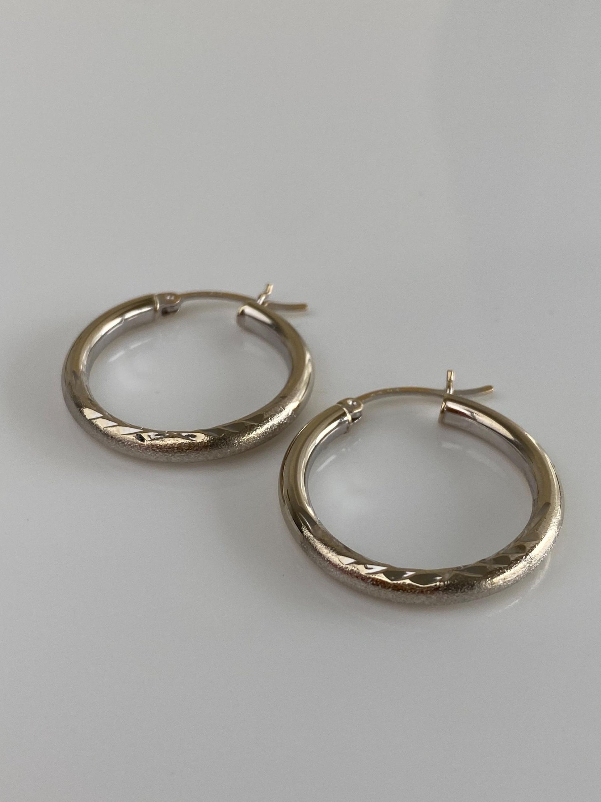 Vintage 14k White Gold Diamond Cut Hoop Earrings