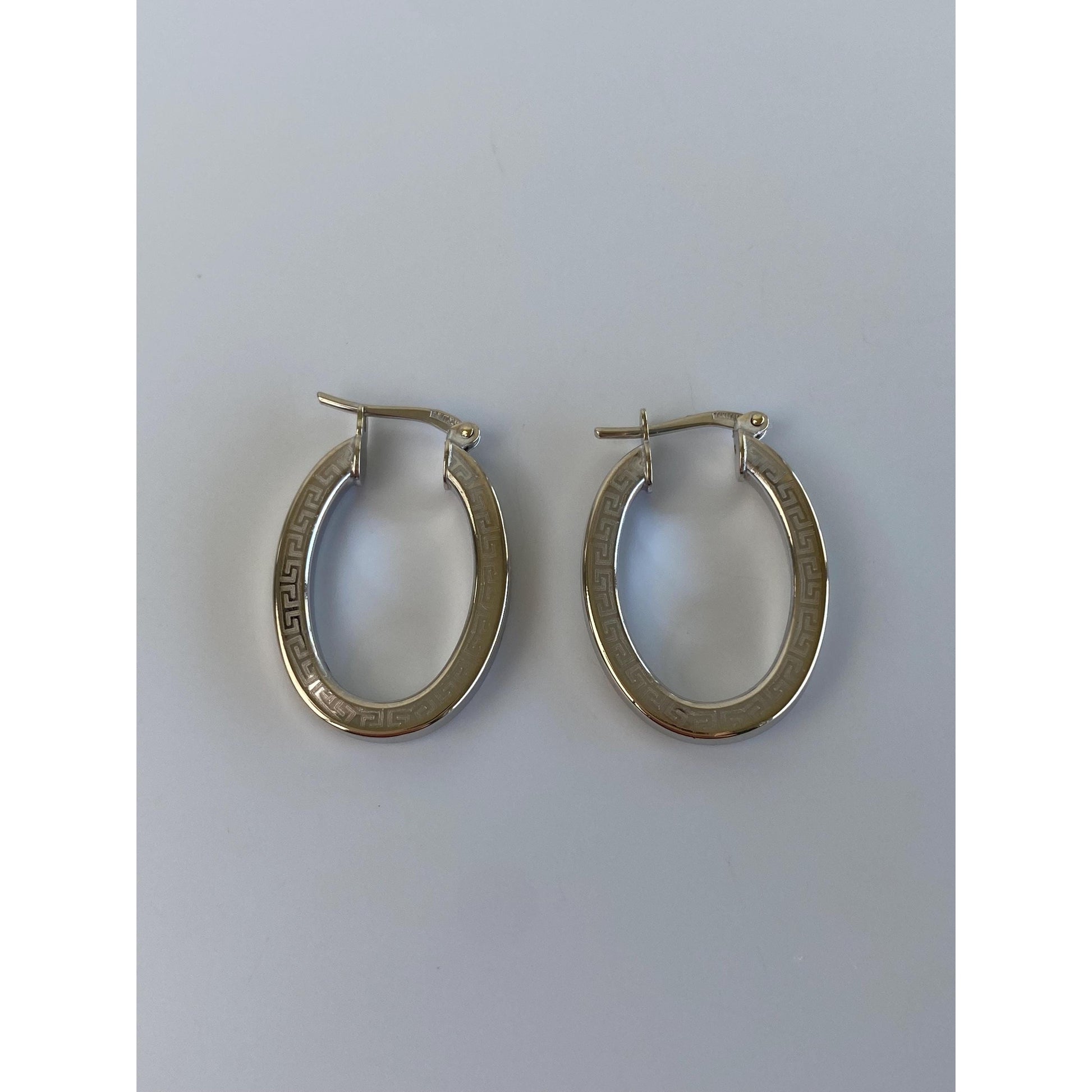 Vintage 14k White Gold Greek Key Oval Hoop Earrings