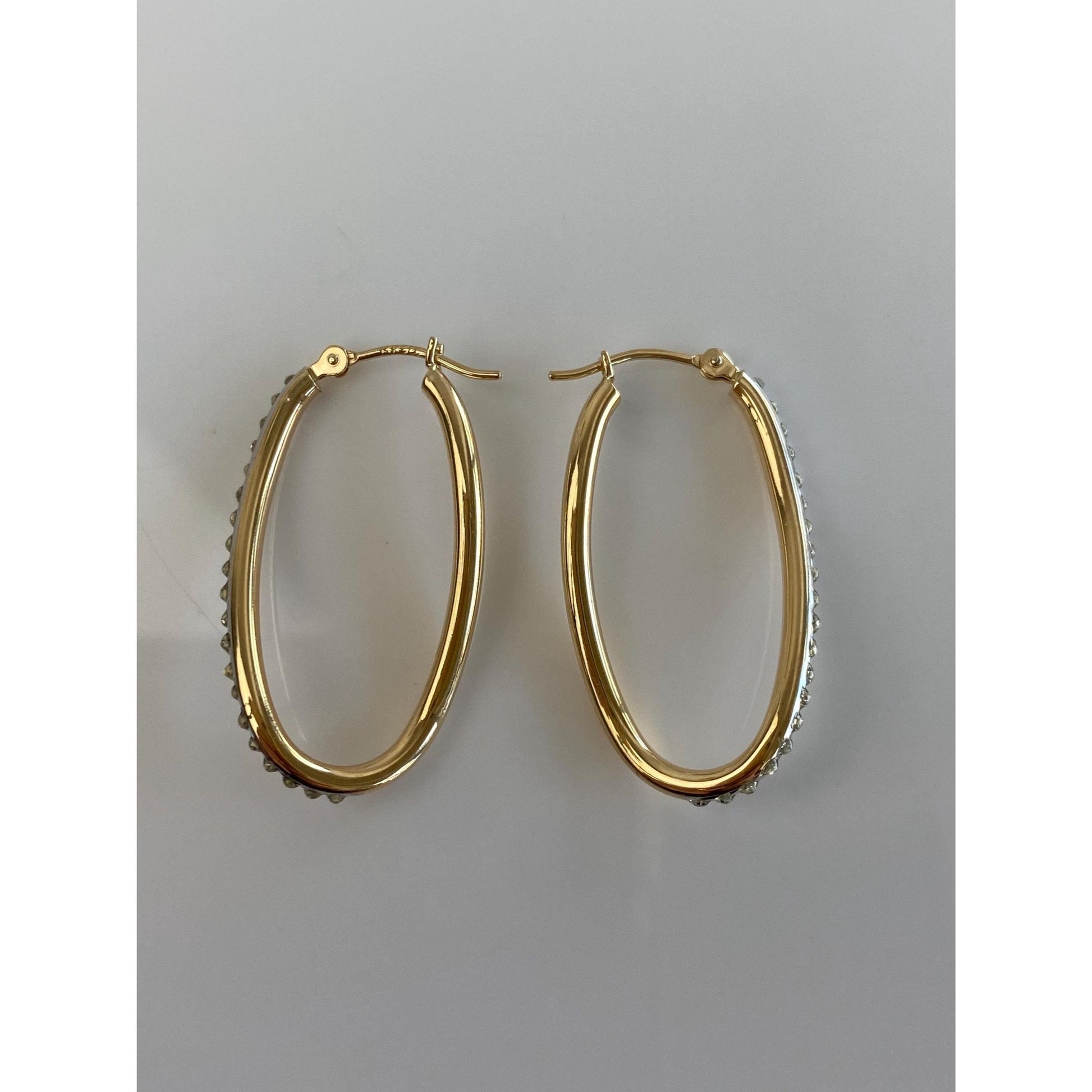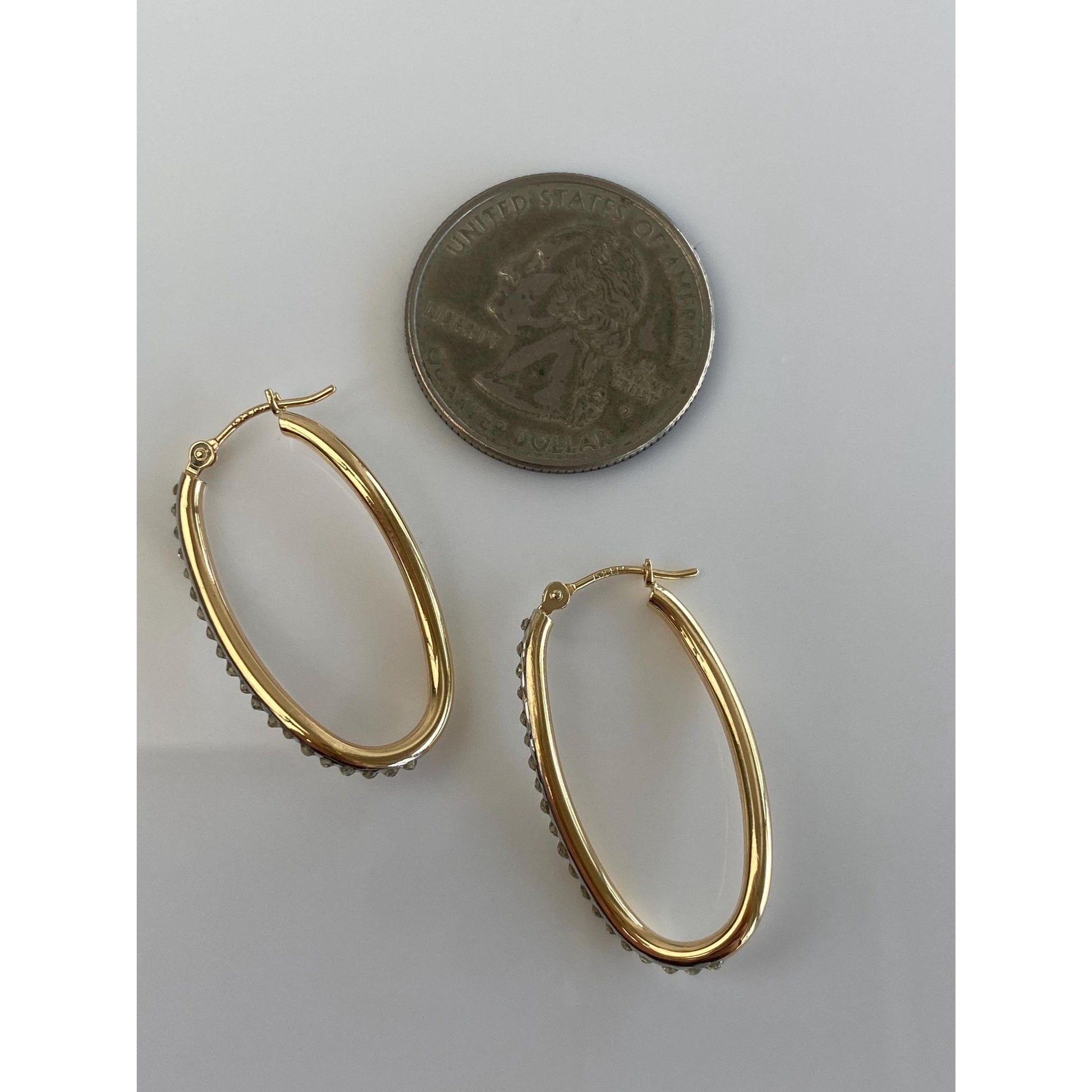 Vintage 14k White & Yellow Gold Clear Enamel Hoop Earrings