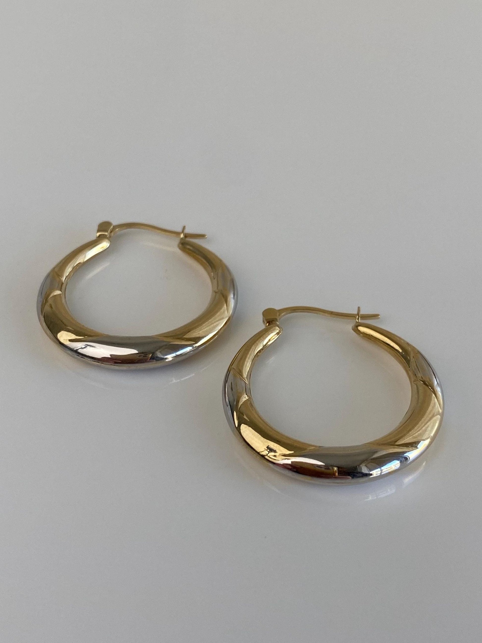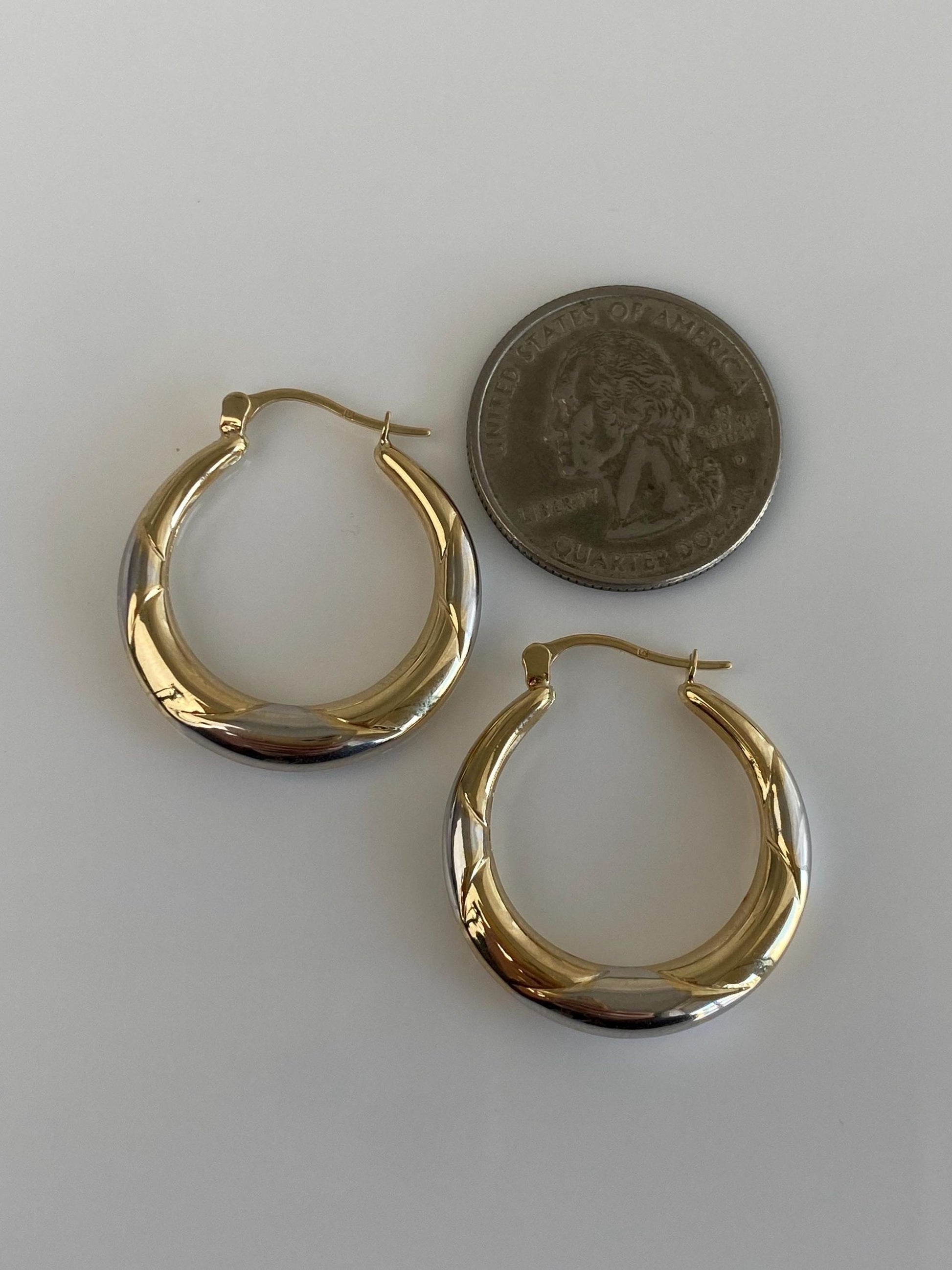 Vintage 14k White & Yellow Gold Design Hoop Earrings
